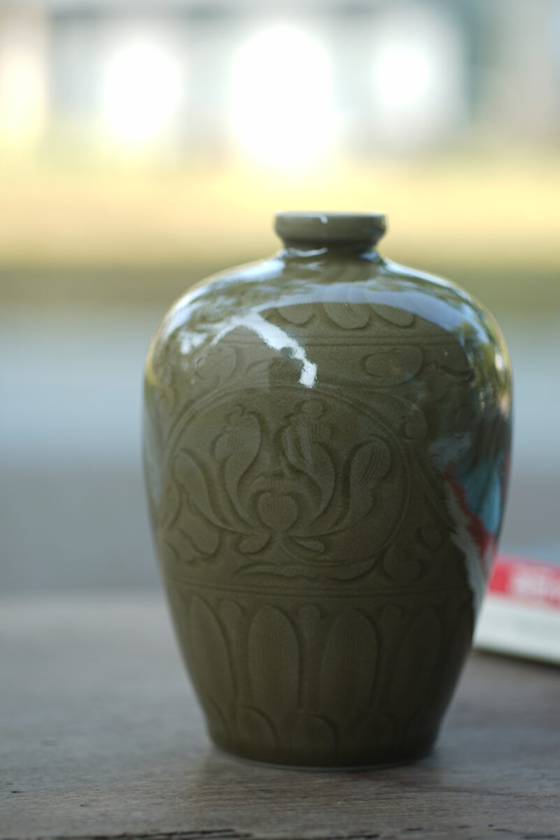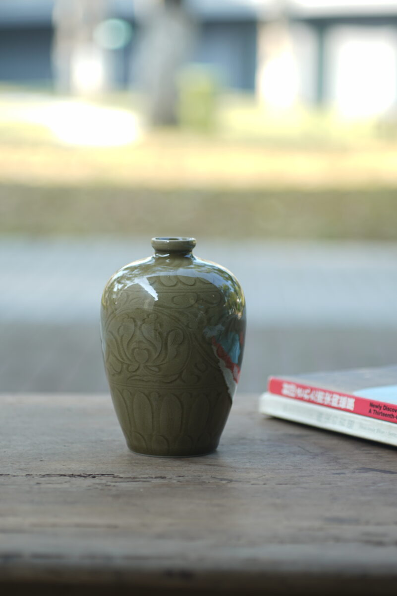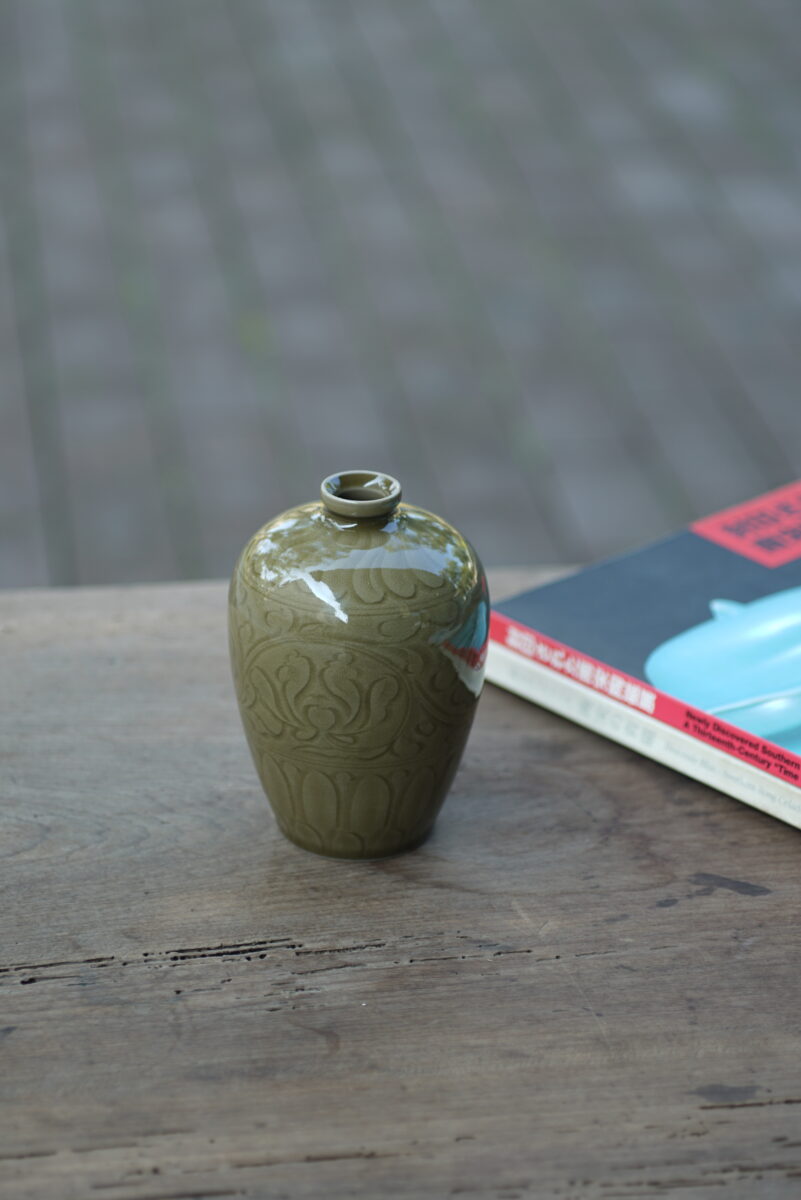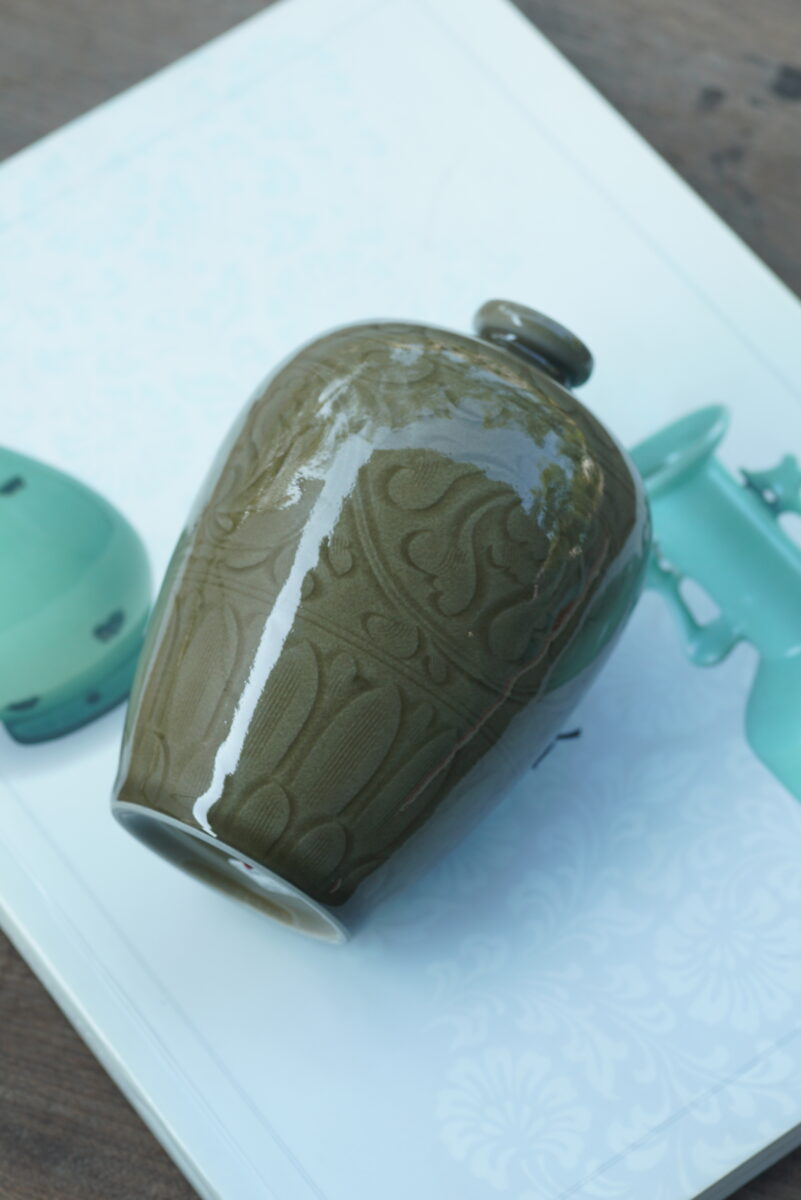 采用龙泉当地优质的朱砂泥和天然原矿釉料,高温烧制而成 ,龙窑柴烧。纯手工制作, 工艺精良。其灵感来源于北宋龙泉窑高级立件。