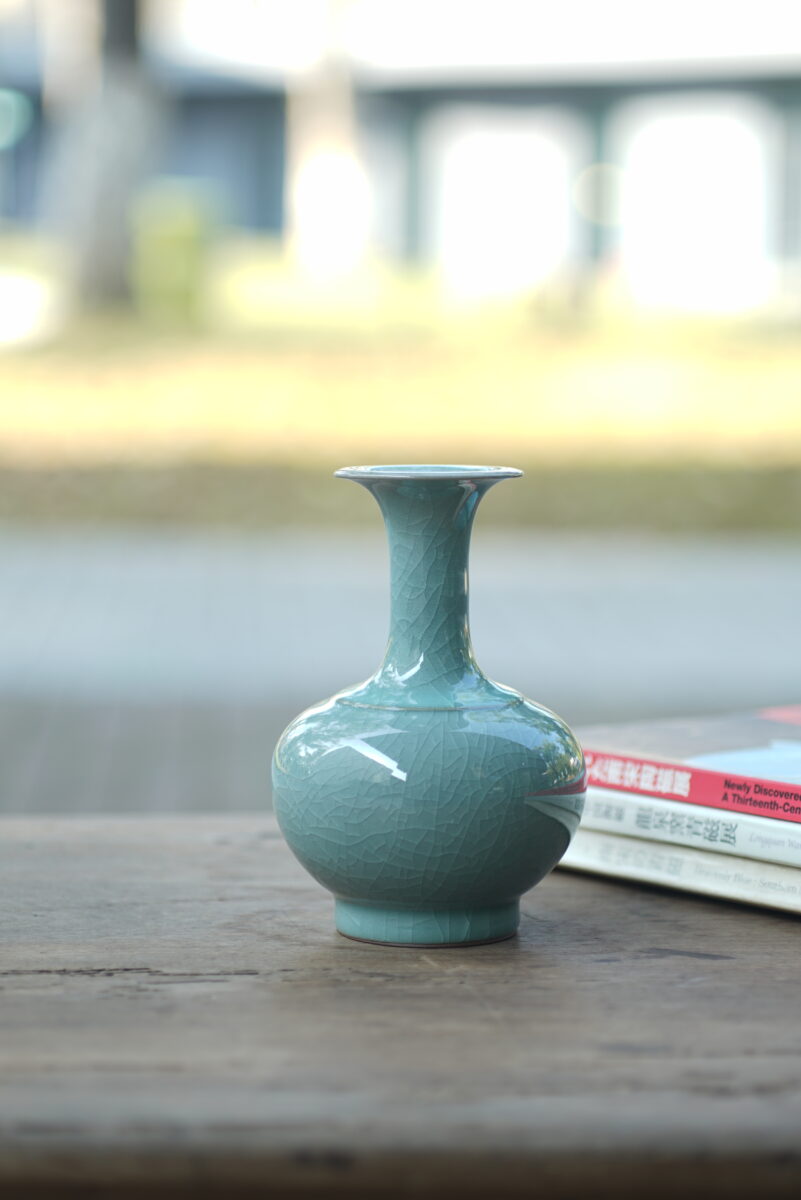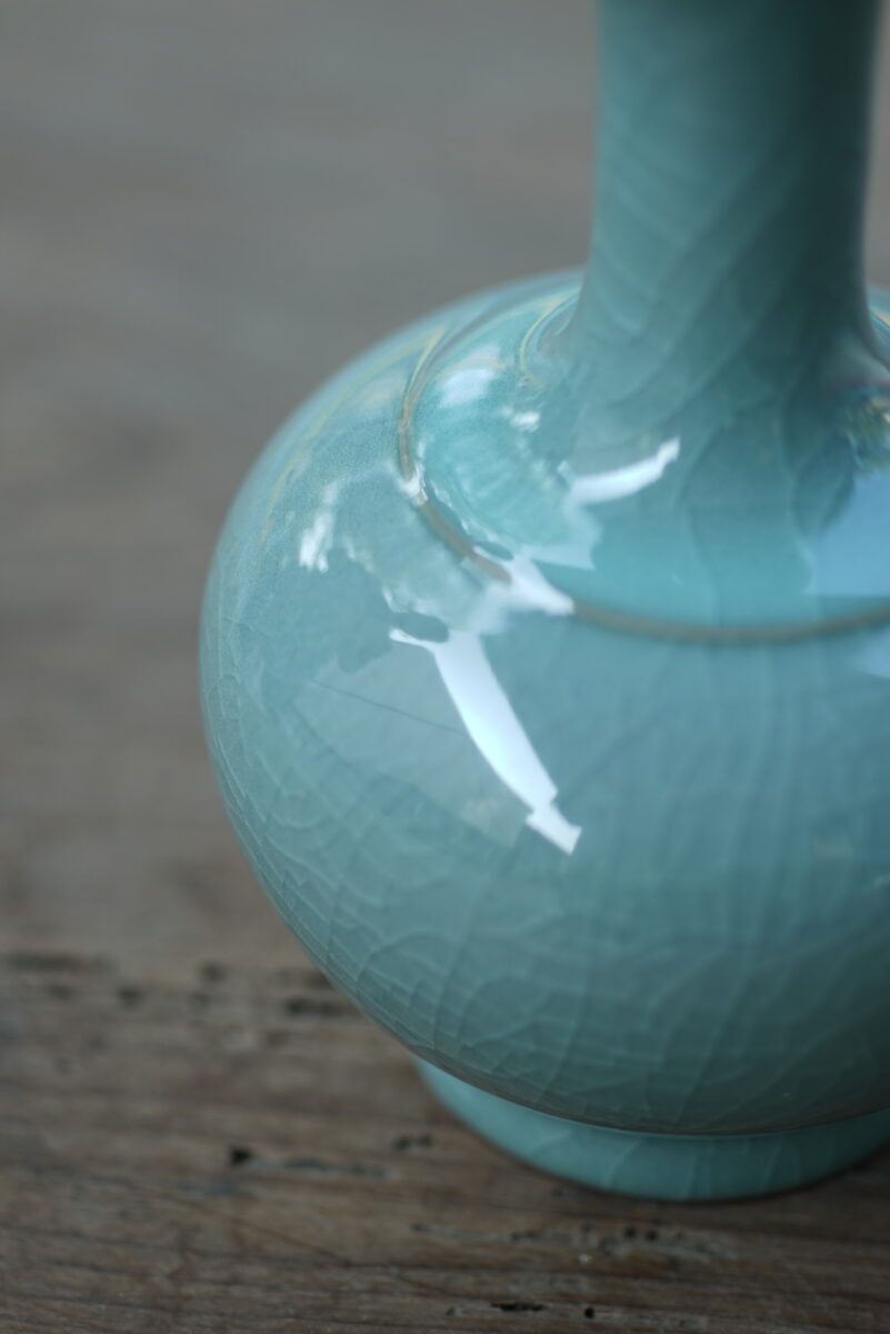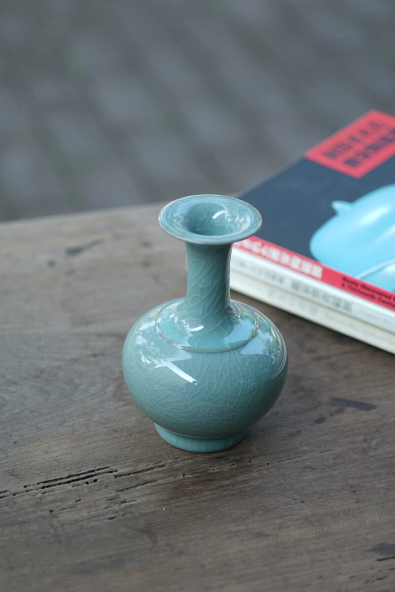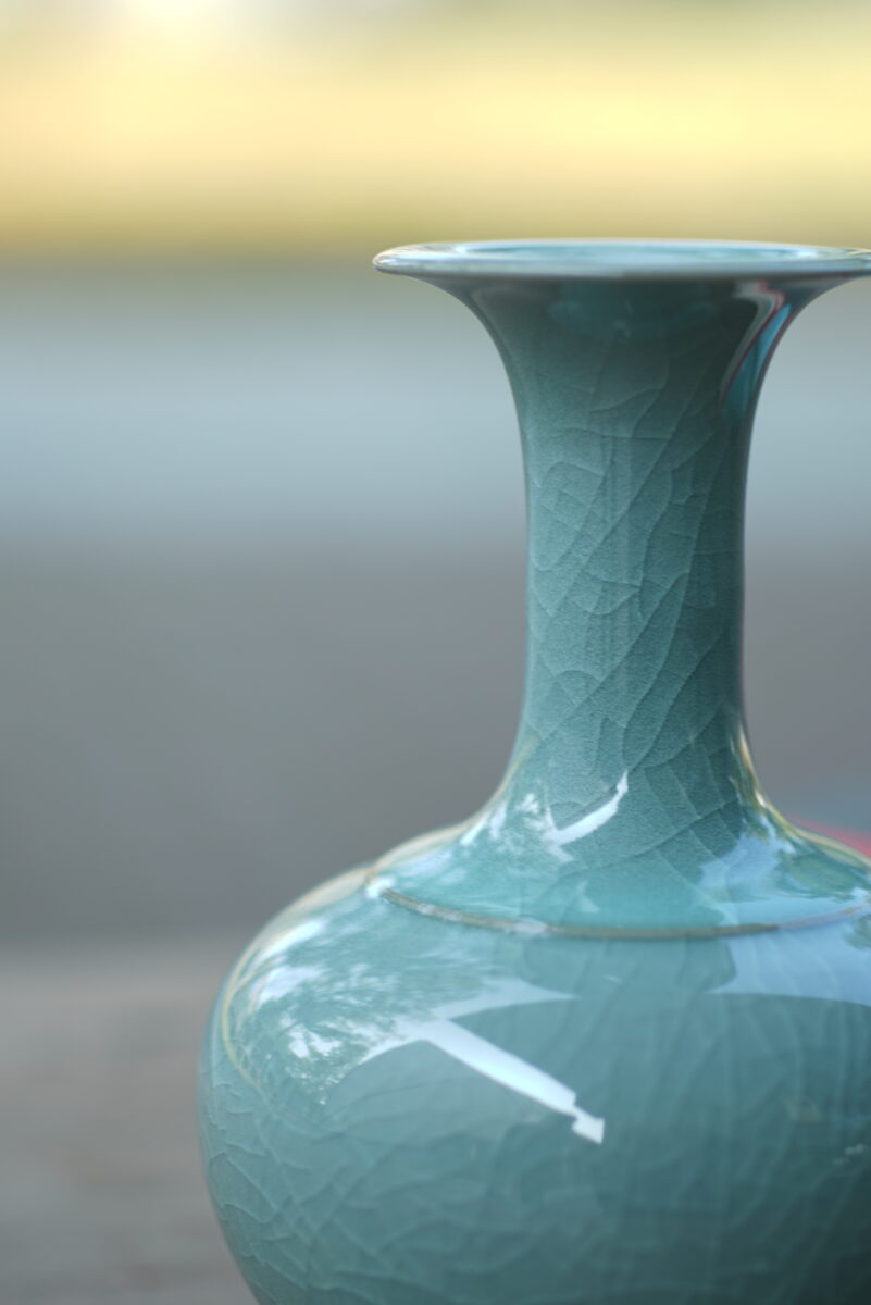 采用龙泉当地优质的朱砂泥和天然原矿釉料,高温烧制而成 。纯手工制作, 工艺精良。其灵感来源于隋唐高级花器。