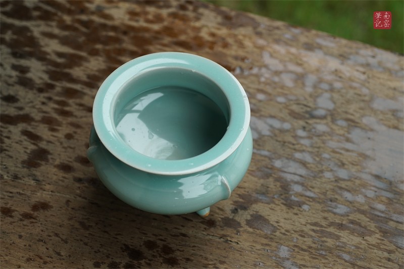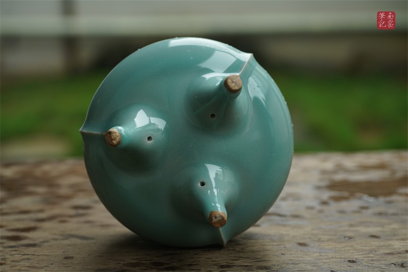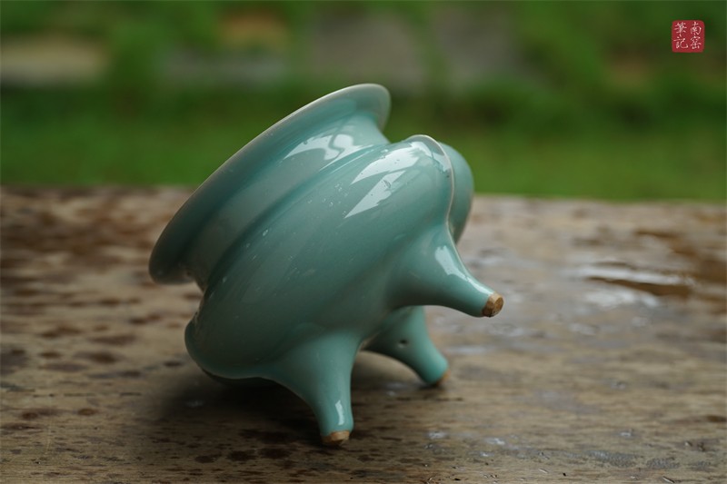 采用龙泉当地优质的朱砂泥和天然原矿釉料,高温烧制而成。纯手工制作,工艺精良。器型灵感来源于南宋龙泉高级香炉,古朴自然。