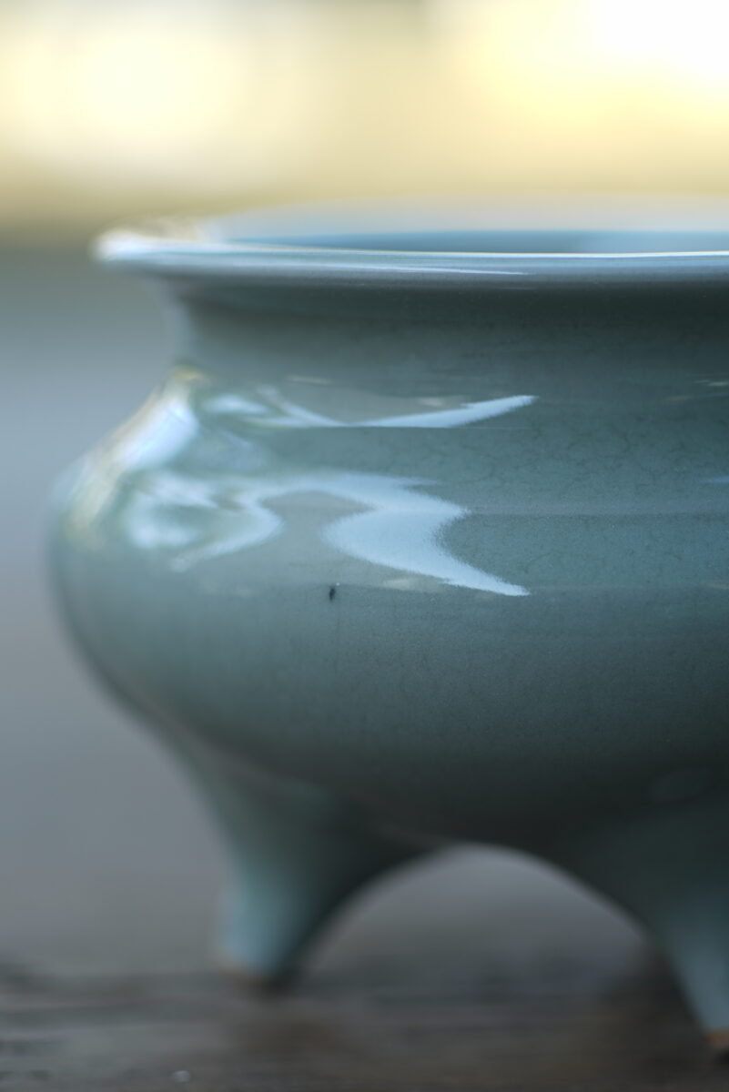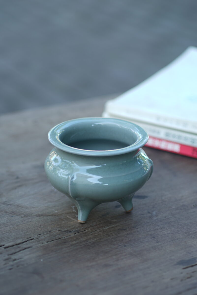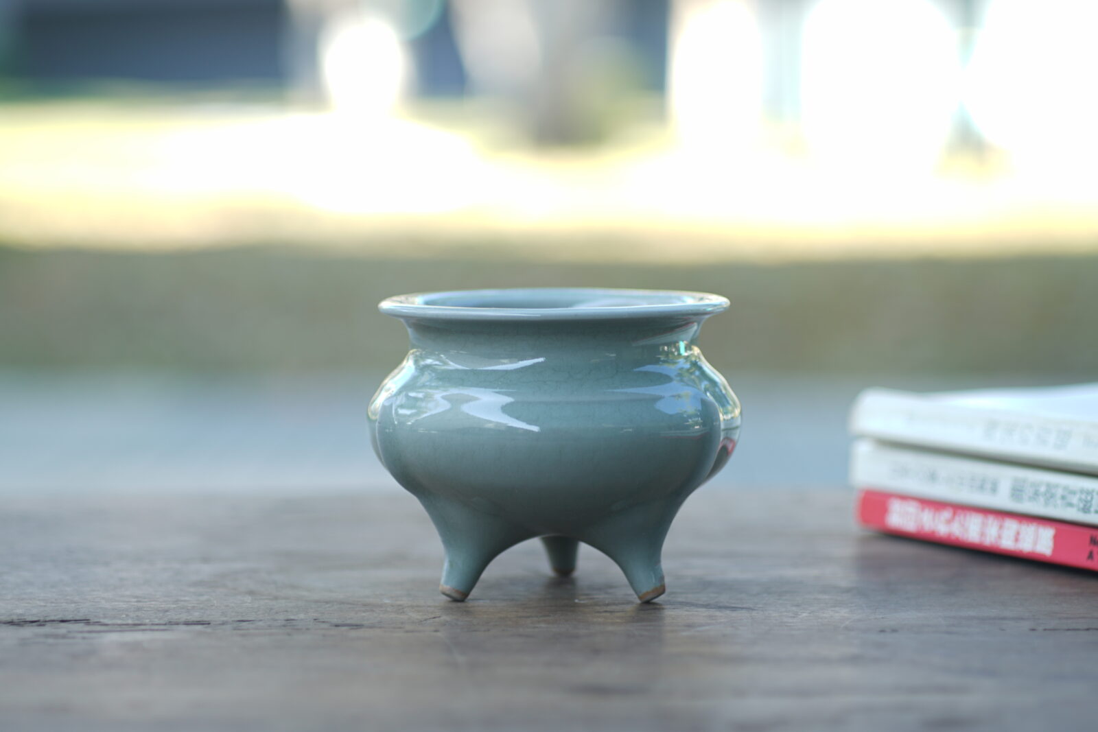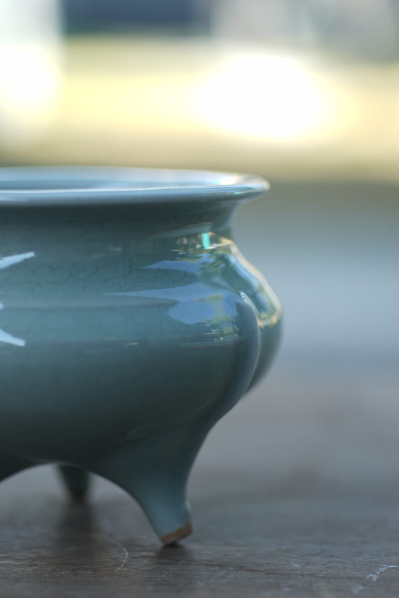 采用龙泉当地优质的朱砂泥和原矿釉料。纯手工制作,工艺精良。器型灵感来源于南宋龙泉窑,古朴自然,经典香炉。