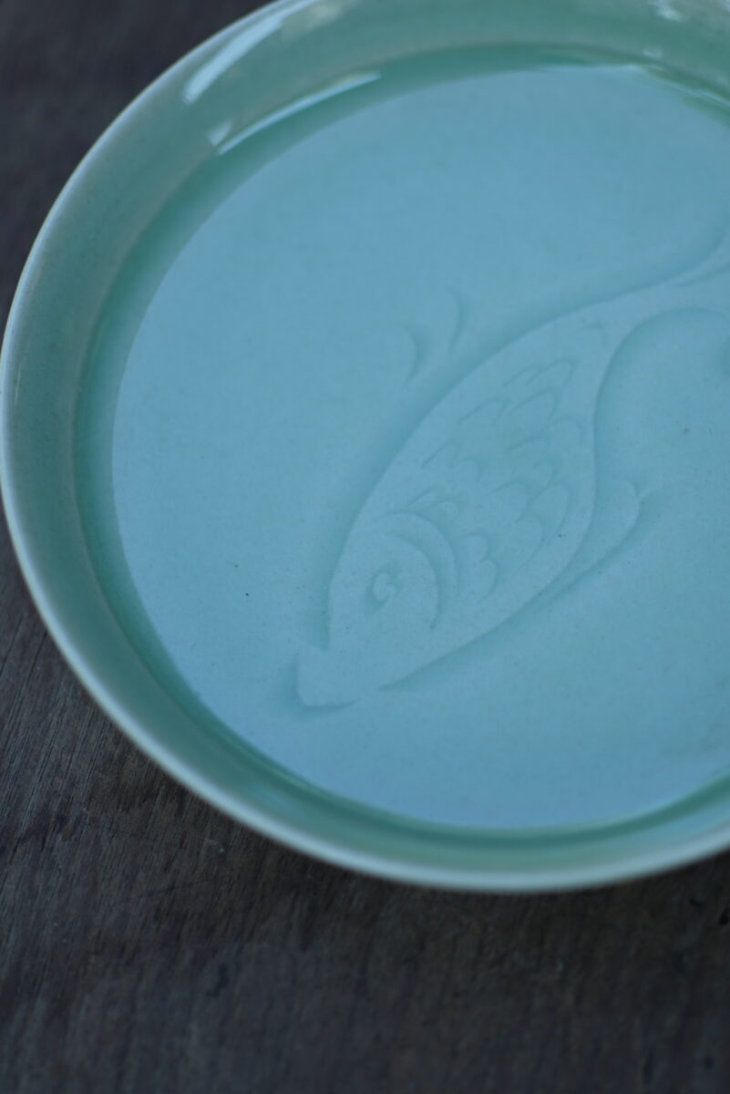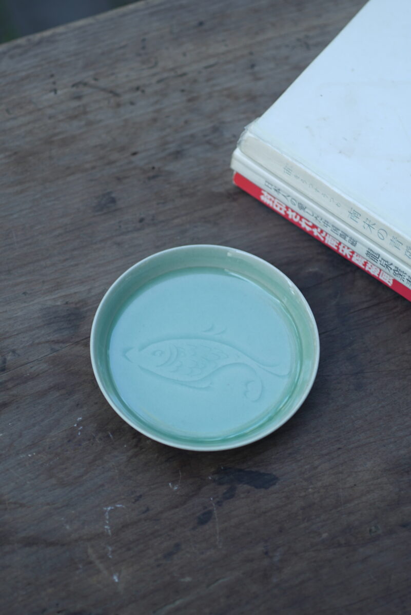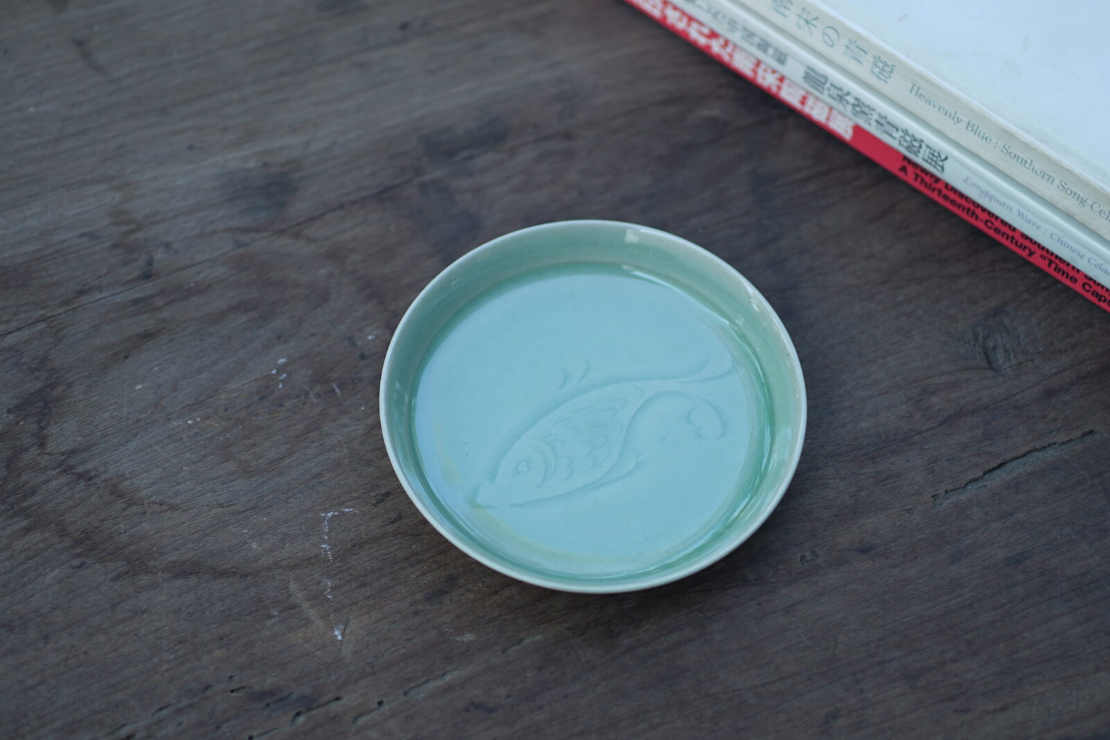 这件复刻器采用龙泉当地的朱砂泥料和天然原矿釉料,纯手工制作,纹样清晰,工艺精良,其灵感源自北宋龙泉刻花题材。