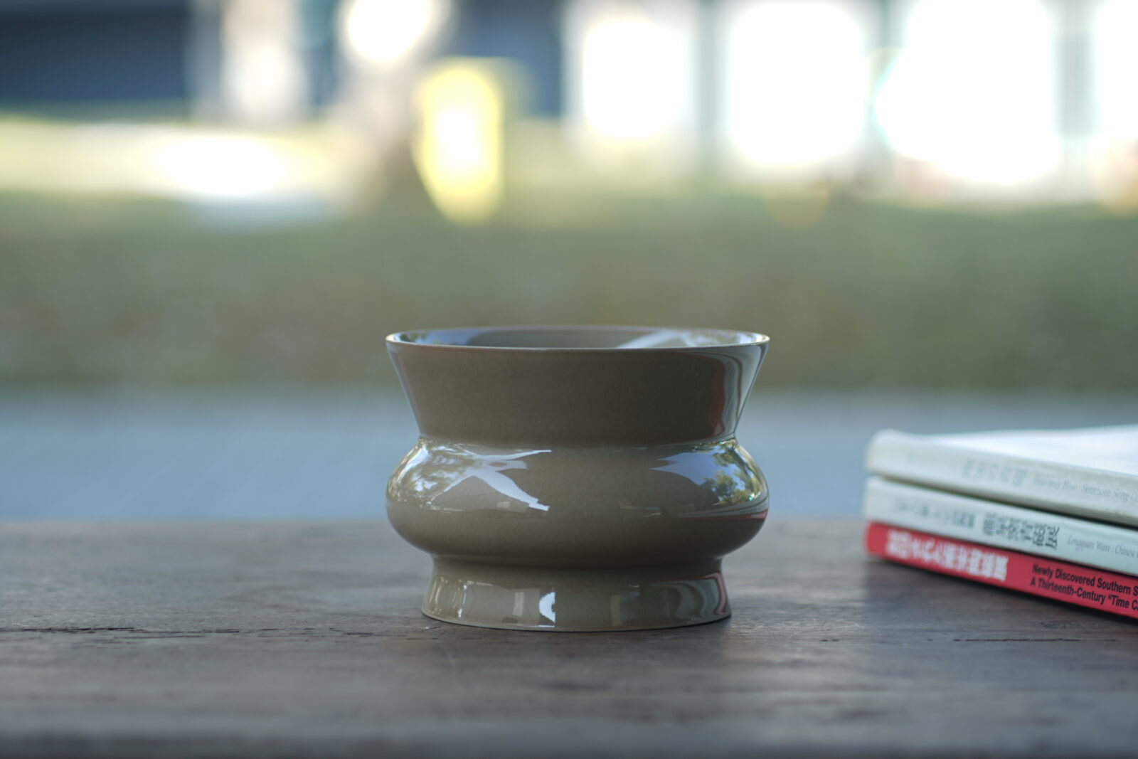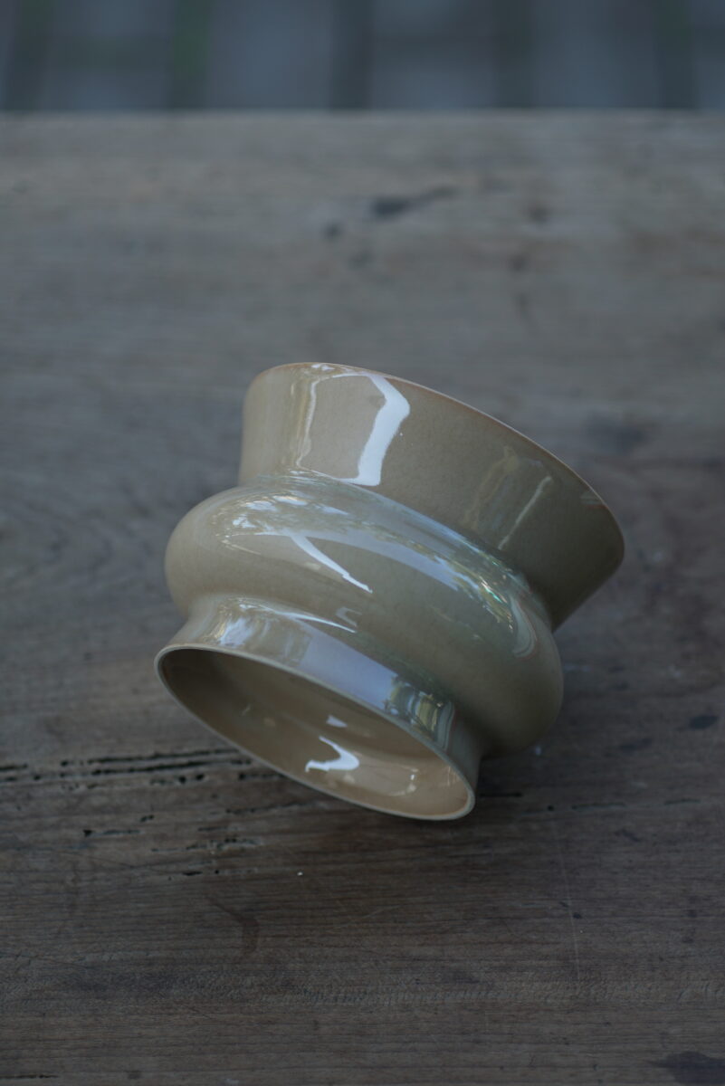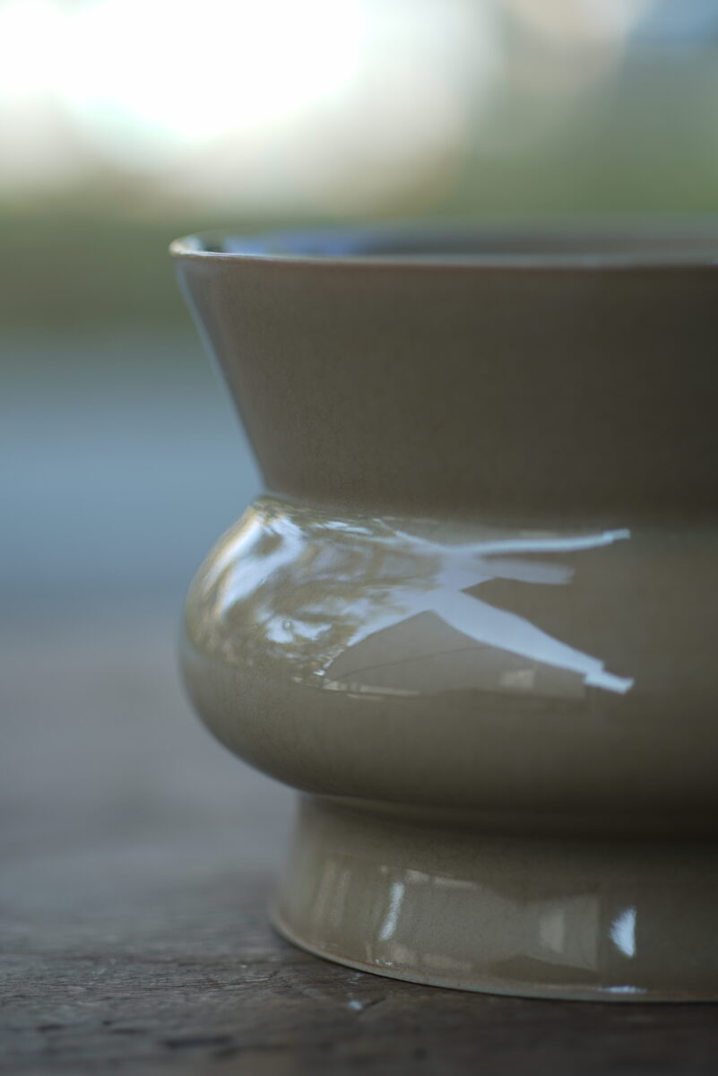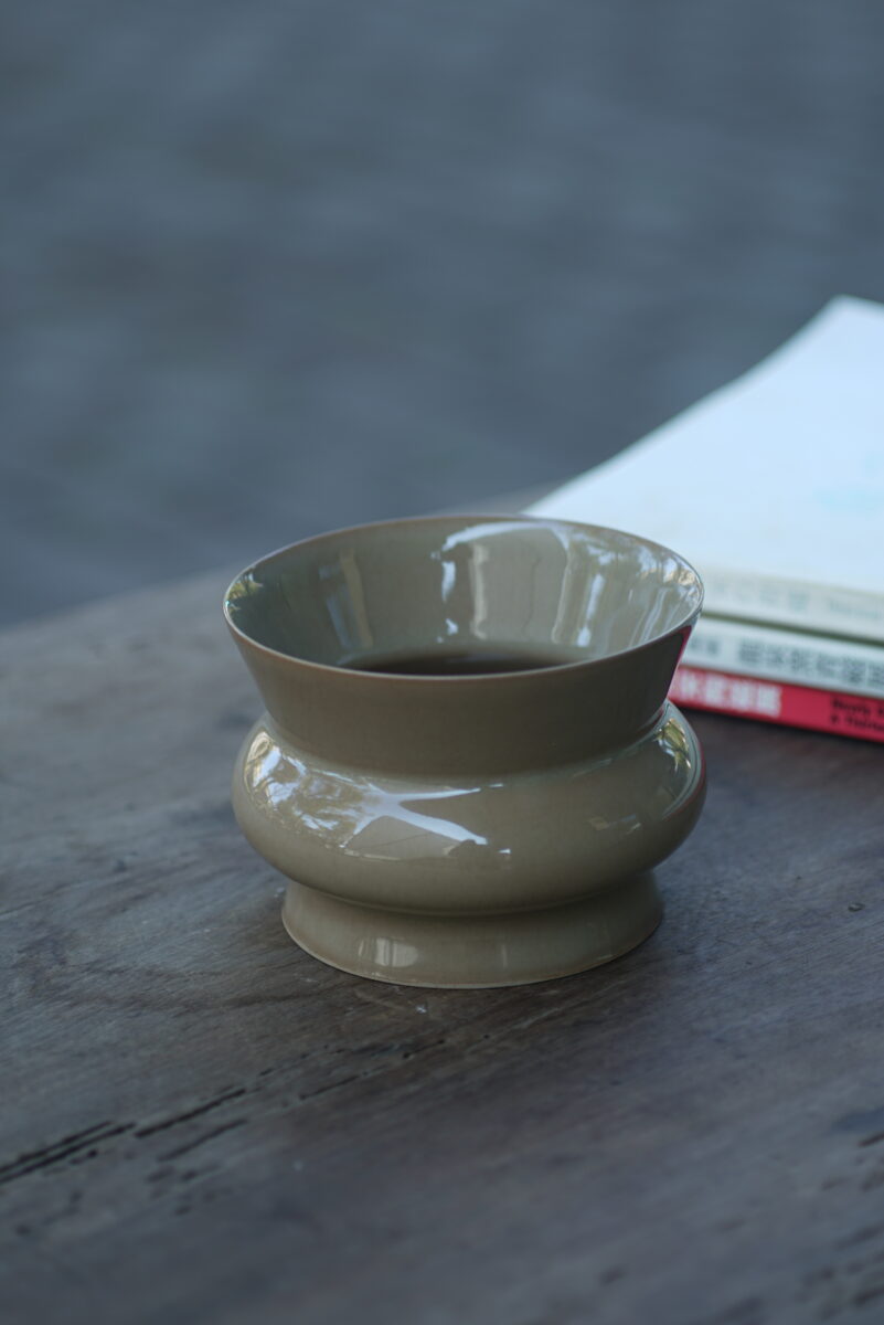 采用龙泉当地优质的朱砂泥和原矿釉料,龙窑柴烧而成 。纯手工制作, 工艺精良。其灵感来源于南宋龙泉窑高级实用器皿。