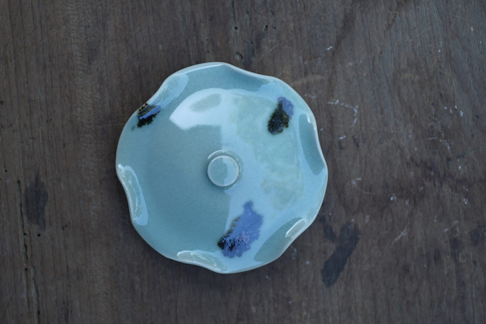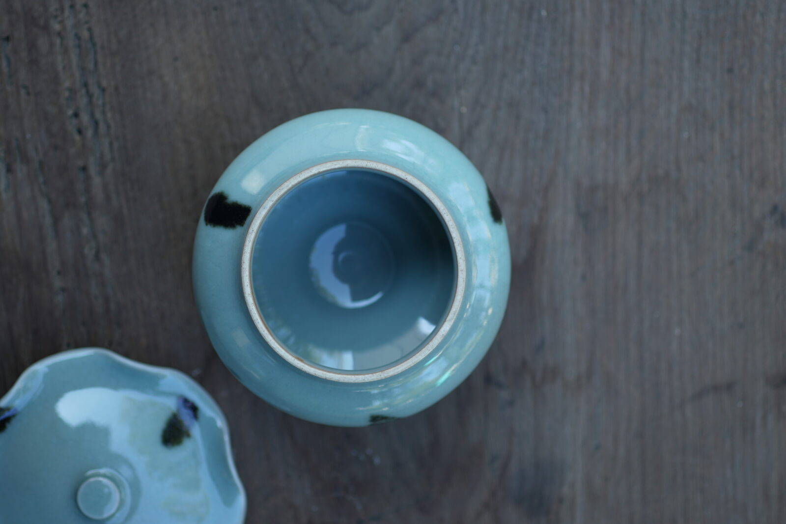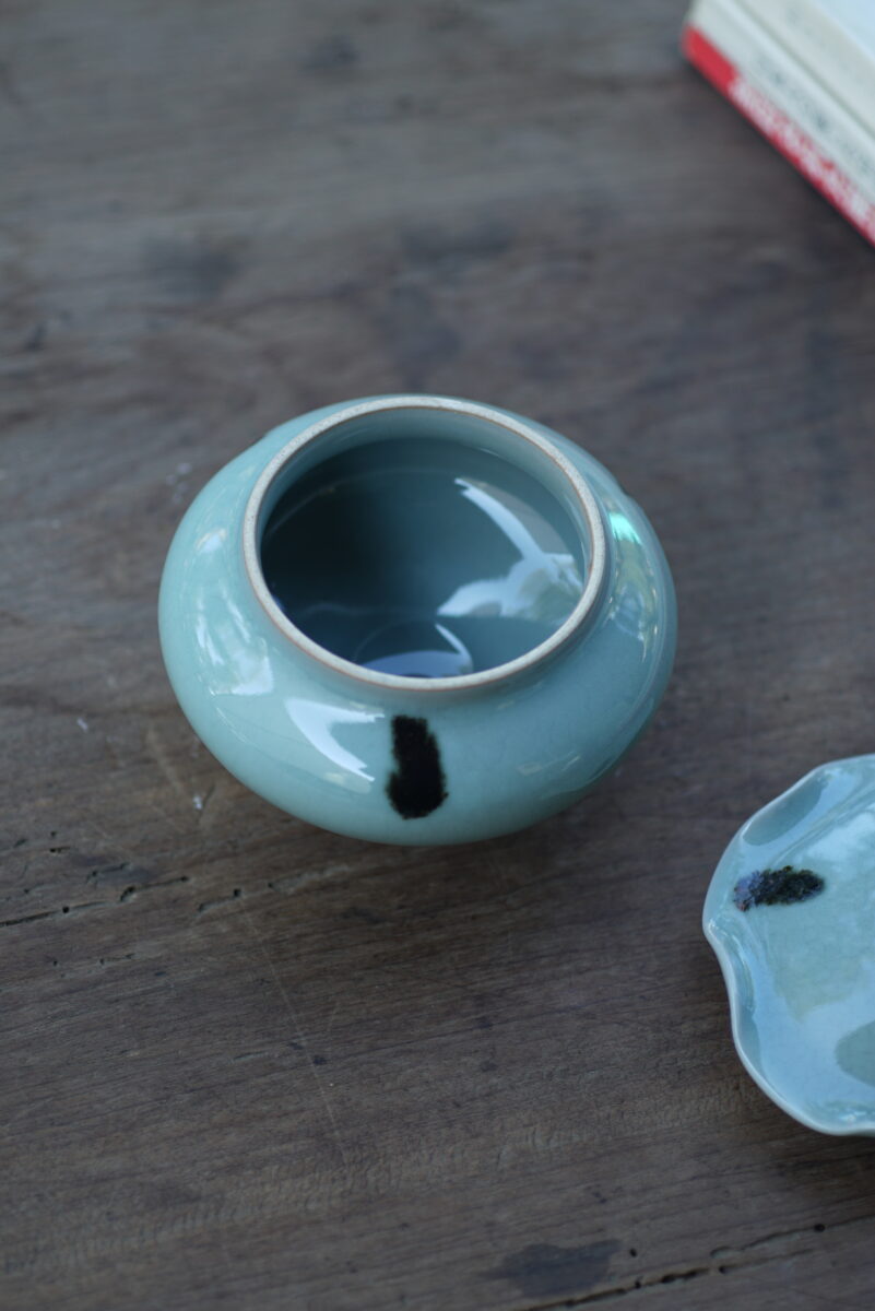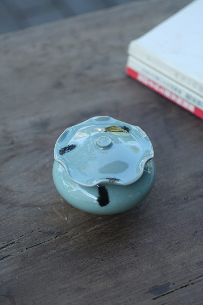 柴烧点彩荷叶盖罐