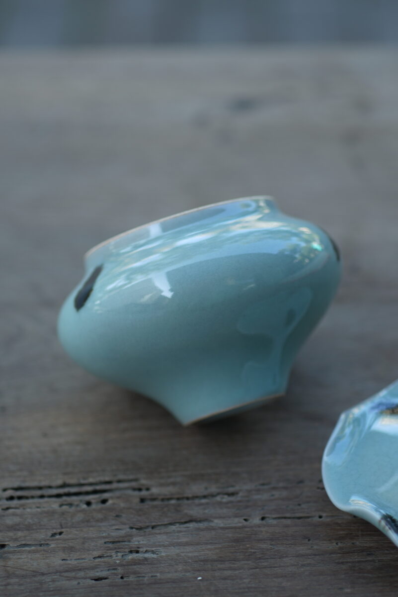 采用龙泉当地优质的朱砂泥和天然原矿釉料,纯手工制作,高温烧制而成 ,龙窑柴烧,工艺精良。其灵感来源于宋元龙泉窑高品质古器。