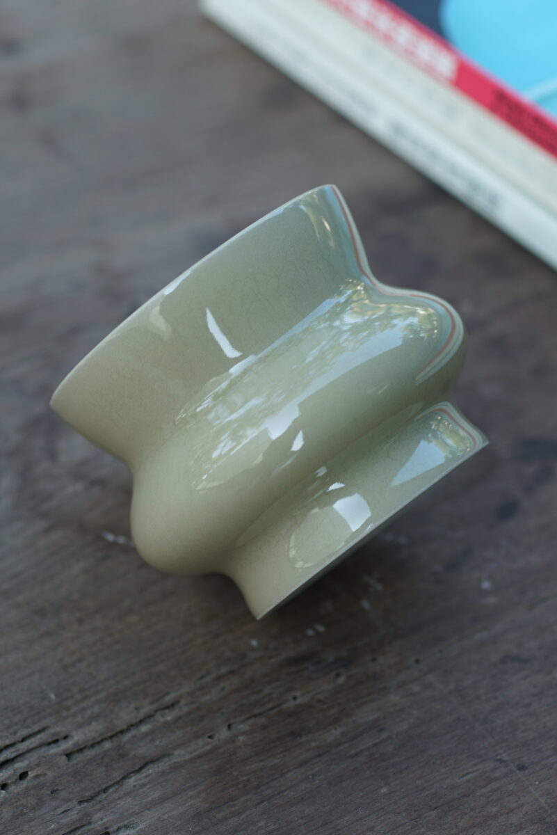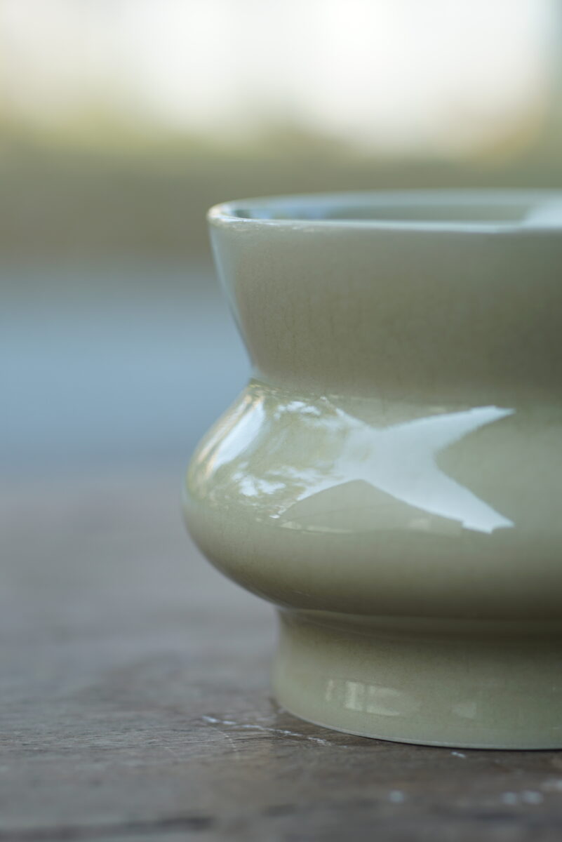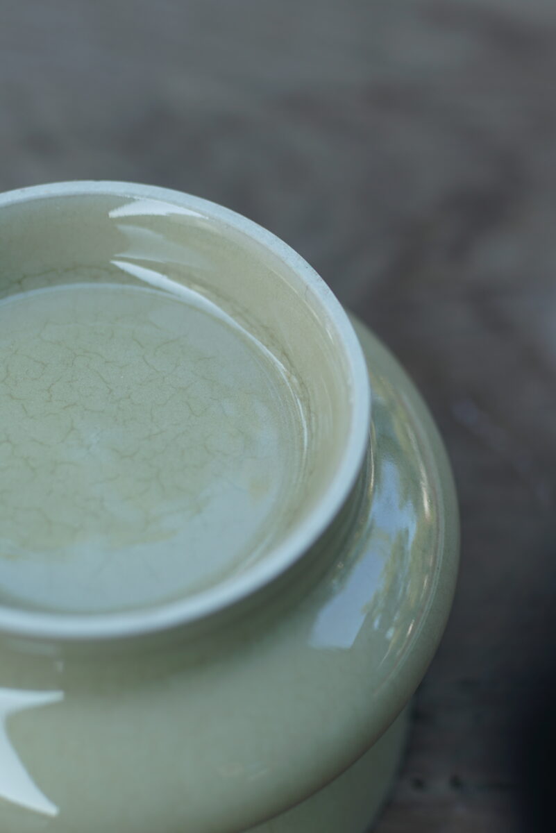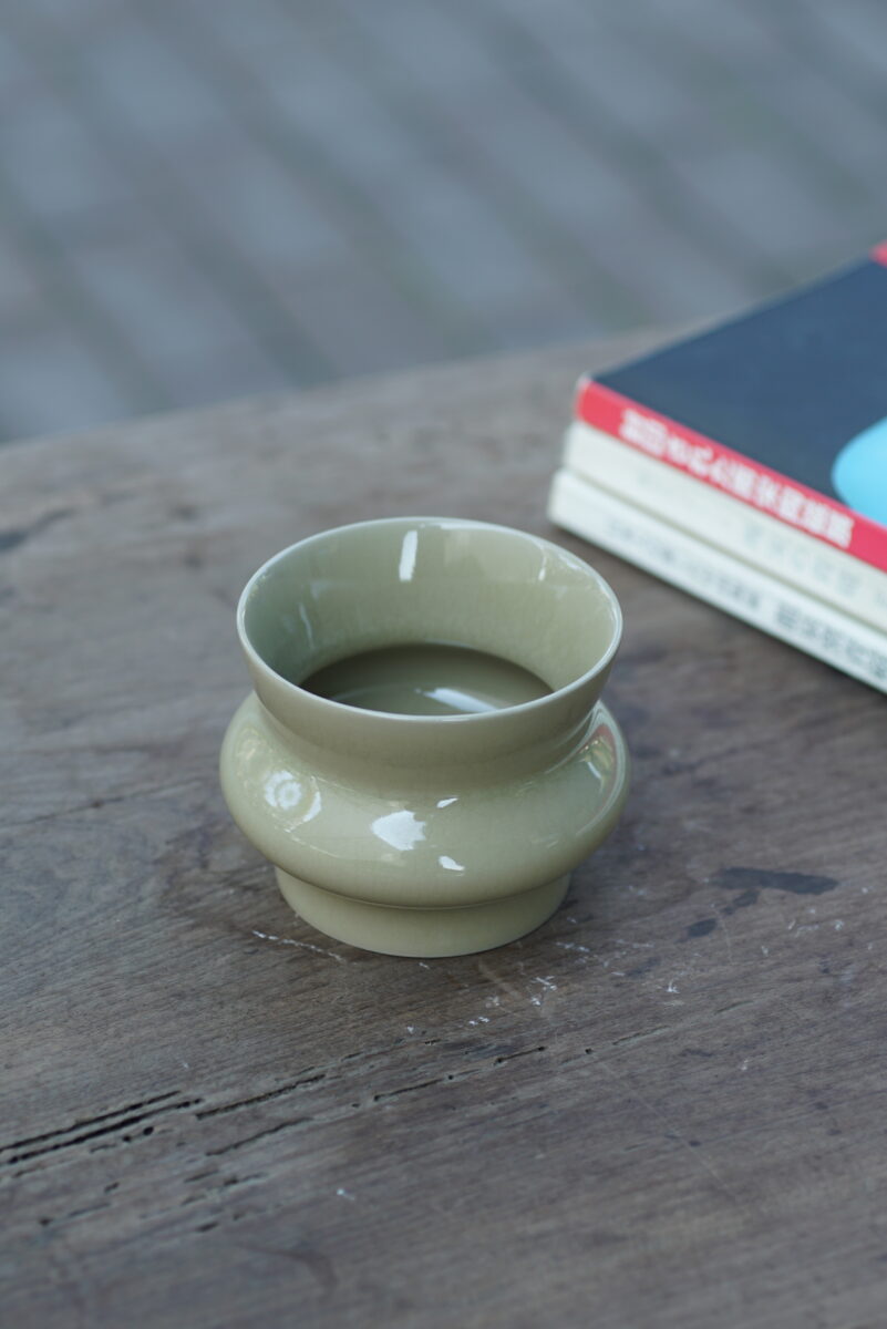 采用龙泉当地优质的朱砂泥和原矿釉料,龙窑柴烧而成 。纯手工制作, 工艺精良。其灵感来源于南宋龙泉窑高级实用器皿。