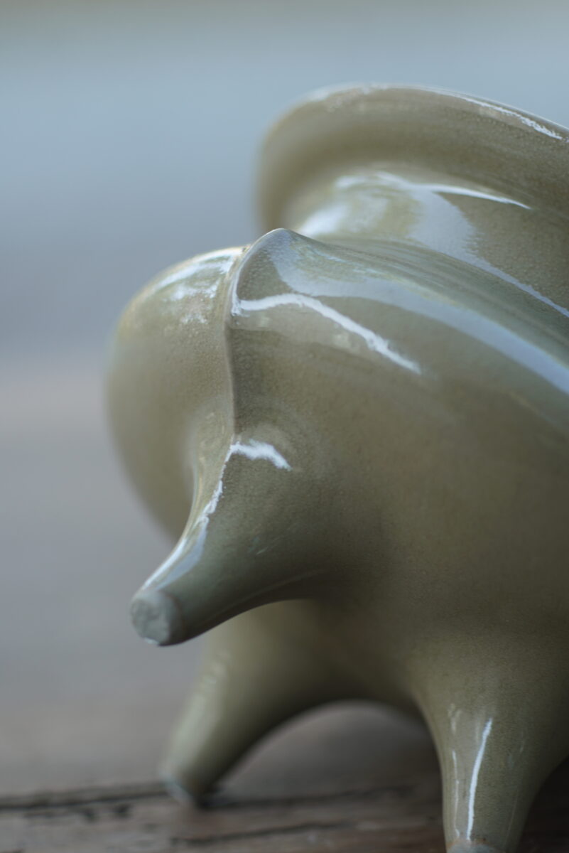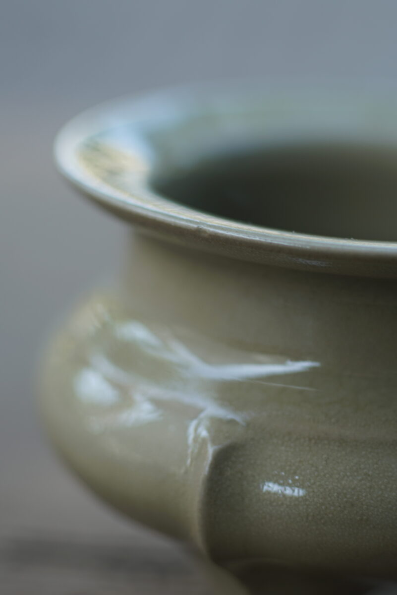 采用龙泉当地优质的朱砂泥和原矿釉料。纯手工制作,工艺精良。器型灵感来源于南宋龙泉窑,古朴自然,经典香炉。