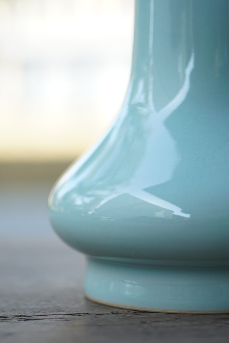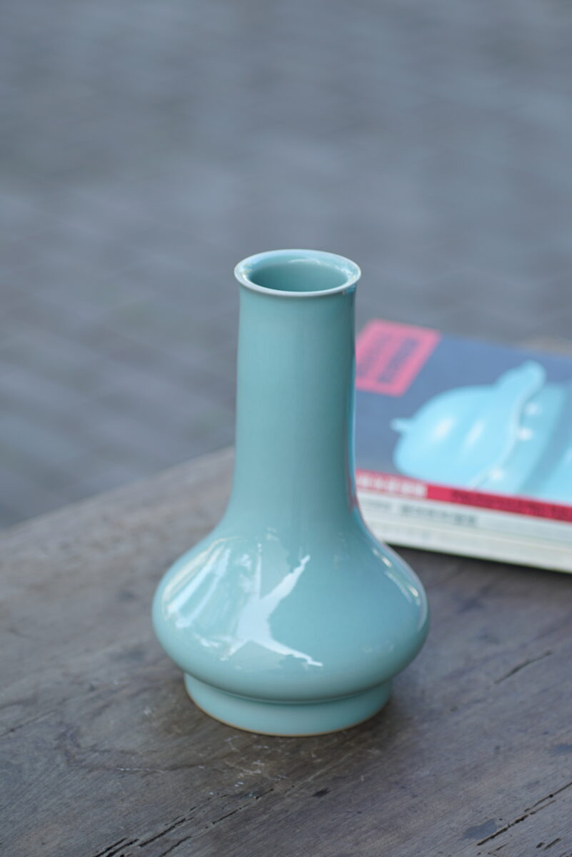 采用龙泉当地优质的朱砂泥和天然原矿釉料,纯手工制作,工艺精良,龙窑柴烧 。其灵感来源于南宋龙泉窑高级立件。