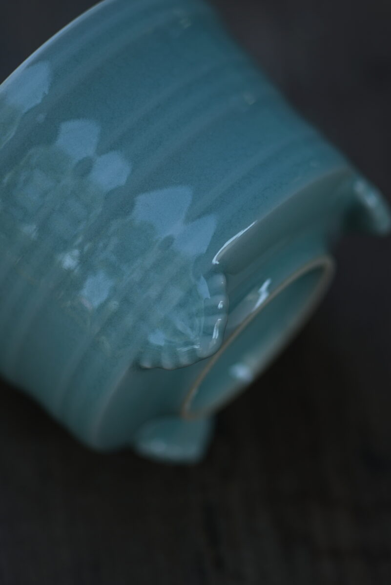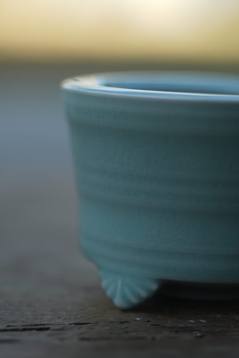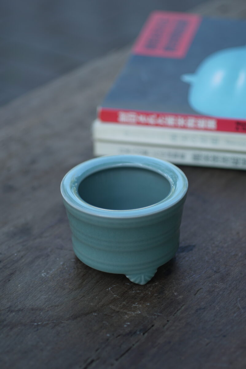 采用龙泉当地优质的朱砂泥和原矿釉料。纯手工制作,工艺精良。器型灵感来源于南宋龙泉窑香炉,古朴自然,经典香道用具。