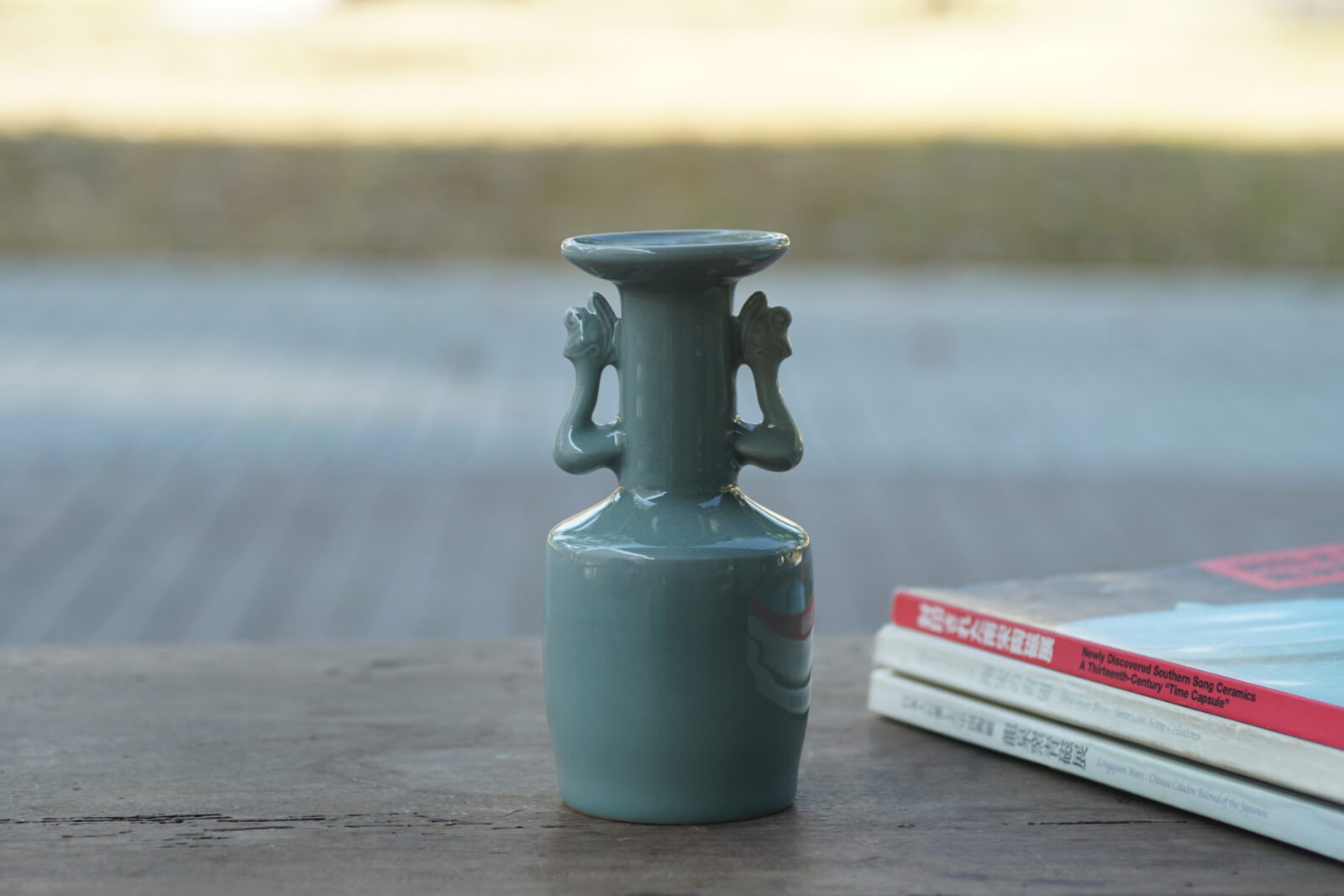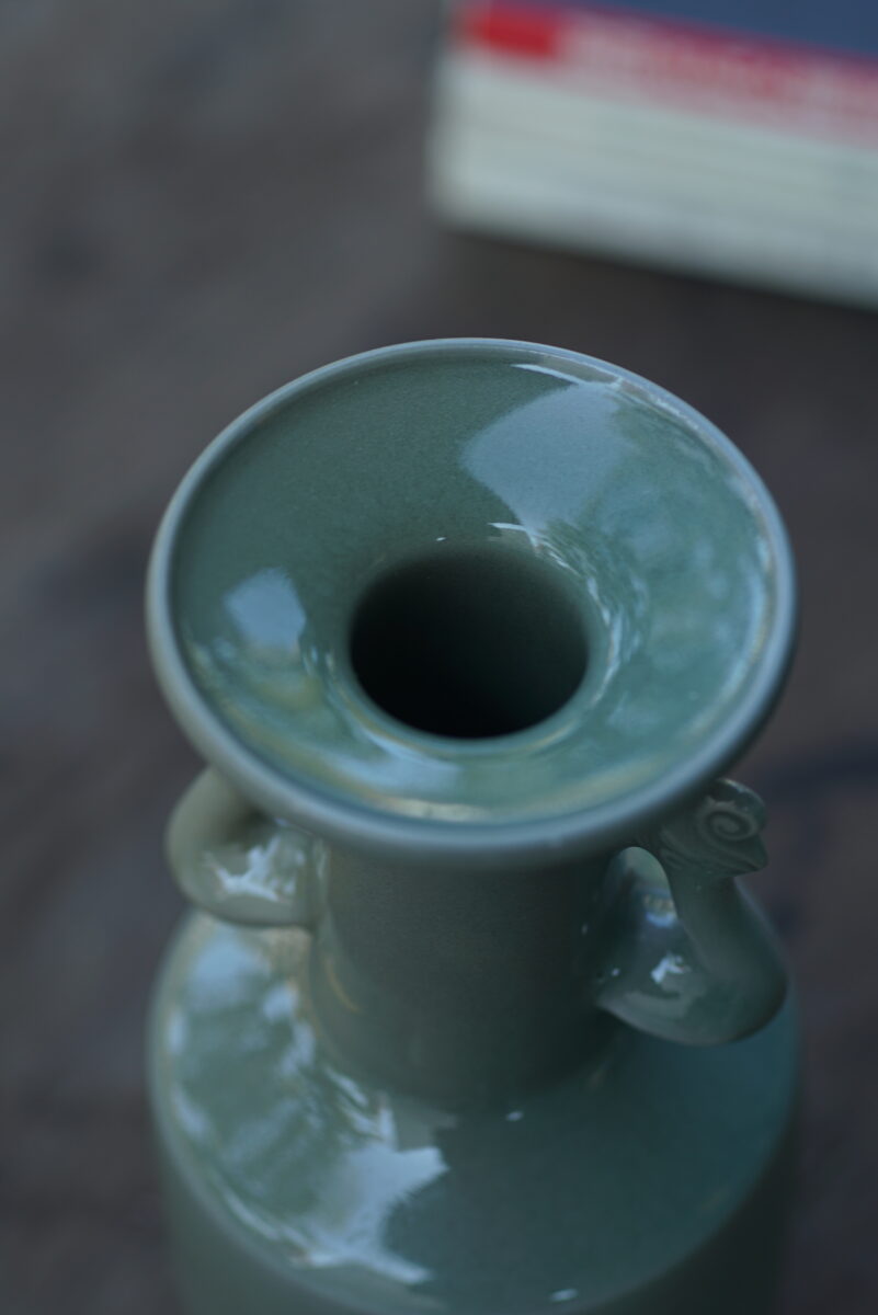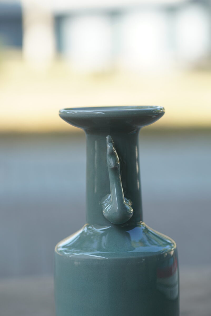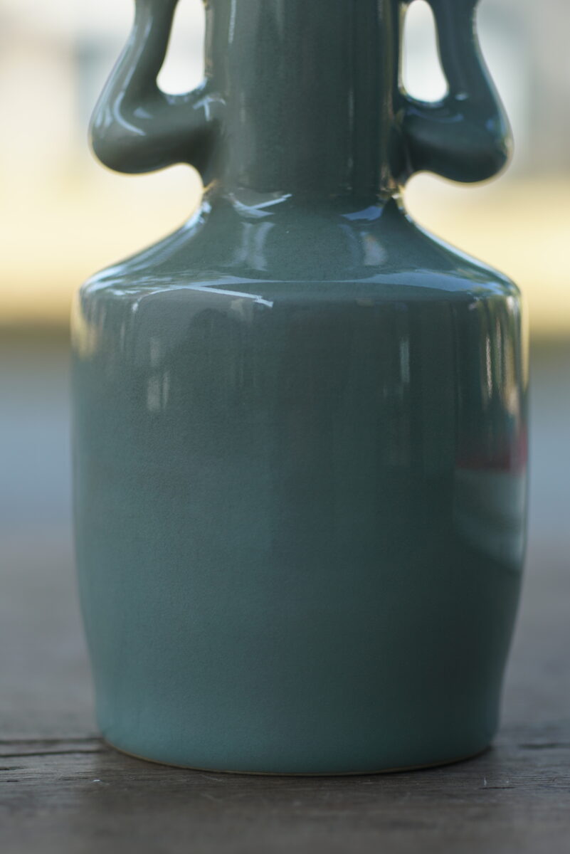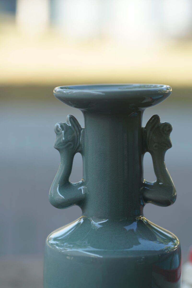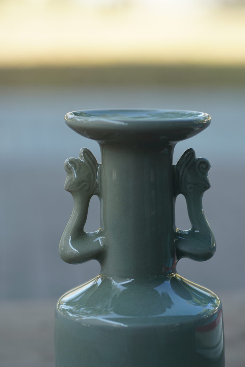 高16.5cm采用龙泉当地优质的朱砂泥和天然原矿釉料,高温烧制而成 ,龙窑柴烧。纯手工制作, 工艺精良。其灵感来源于南宋龙泉窑高级立件。