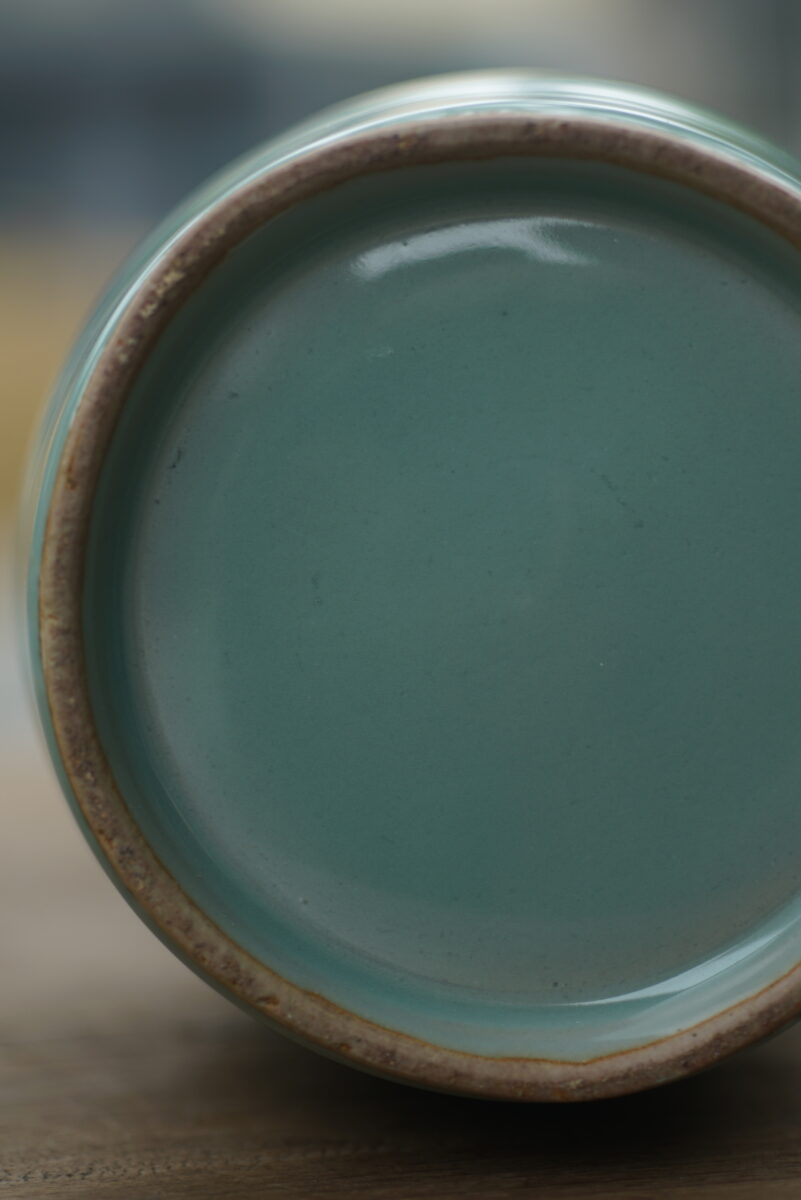 采用龙泉当地优质的朱砂泥和天然原矿釉料,高温烧制而成 。纯手工制作, 工艺精良。其灵感来源于南宋龙泉窑高级立件。