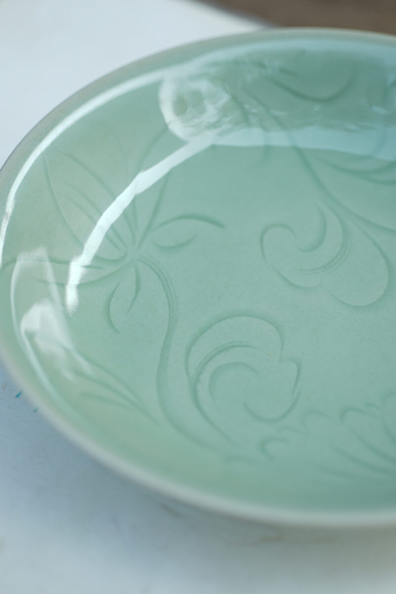 高3.8cm 口径16.8cm这件复刻器采用龙泉当地的朱砂泥料和天然原矿釉料,纯手工制作,纹样清晰,工艺精良,其灵感源自北宋龙泉刻花题材。南窑笔记品牌价钱结合品相烧制时间:2025年3月25日售价:¥400.00