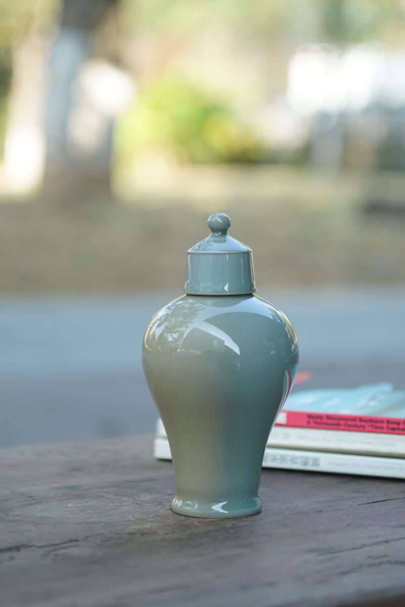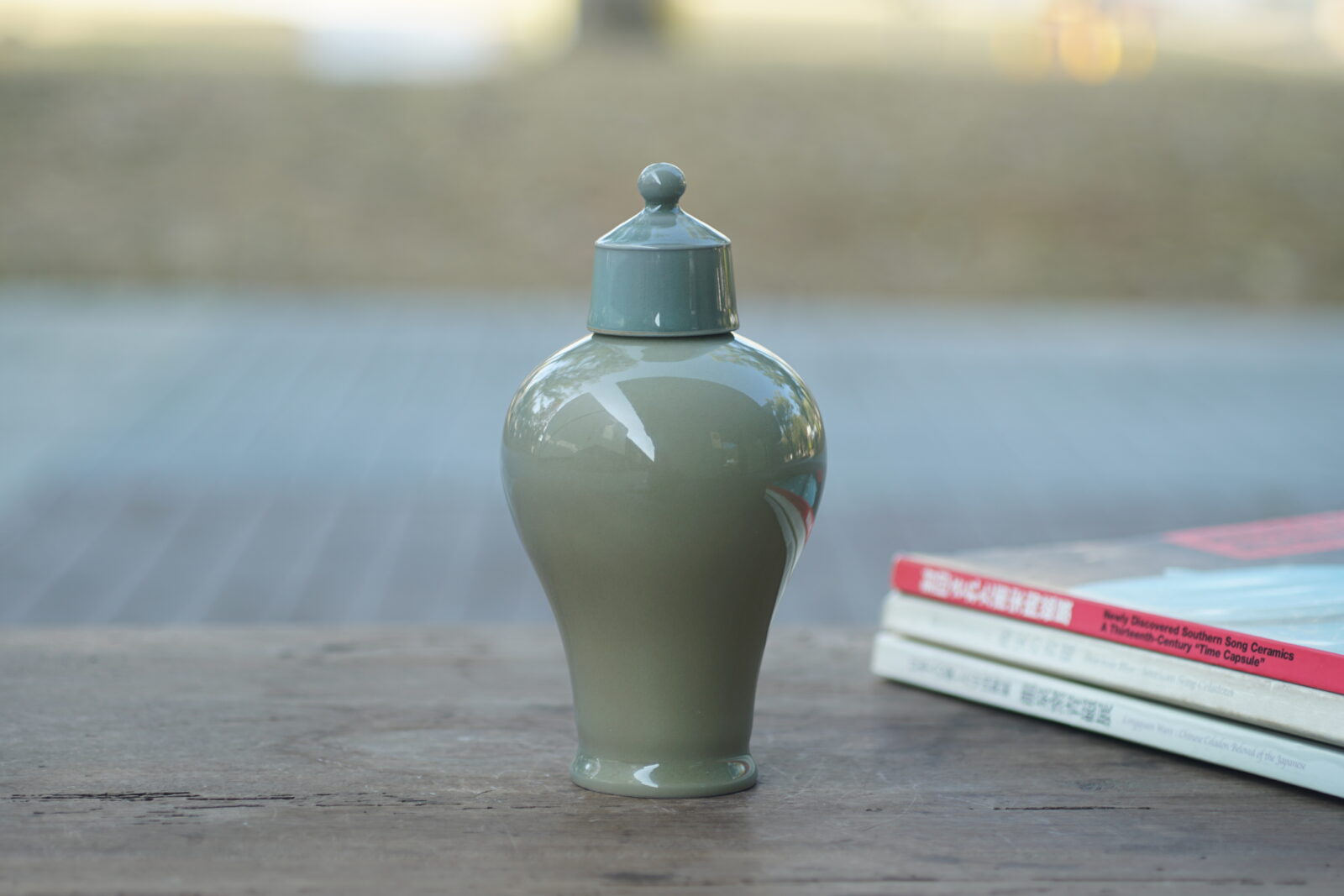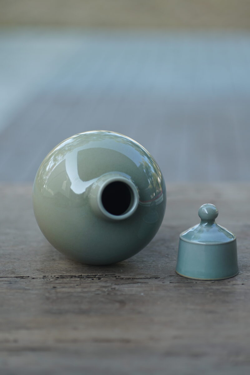 采用龙泉当地优质的朱砂泥和天然原矿釉料,高温烧制而成 ,龙窑柴烧。纯手工制作, 工艺精良。其灵感来源于南宋龙泉窑高级立件。