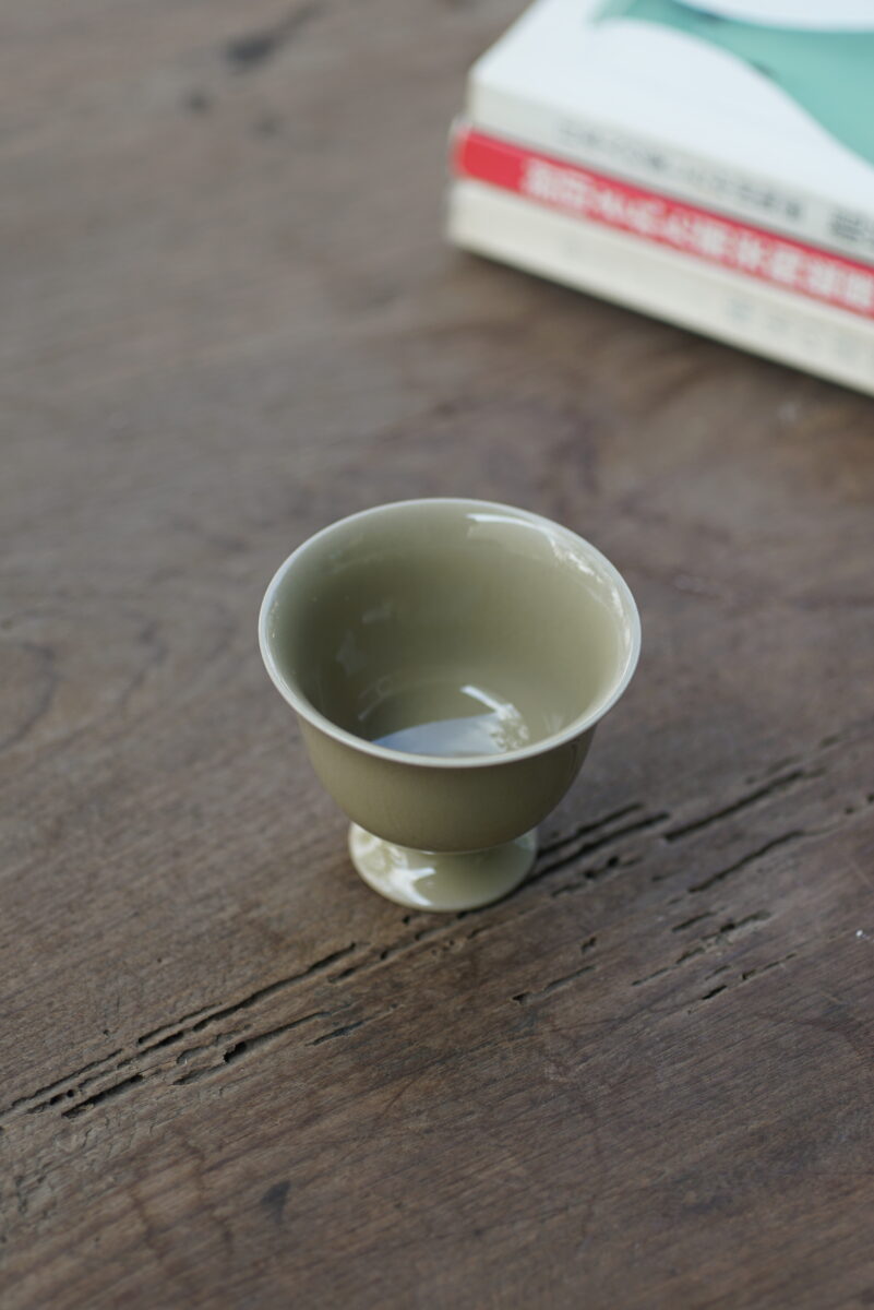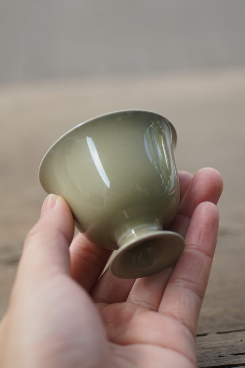 柴烧 黄釉高足杯