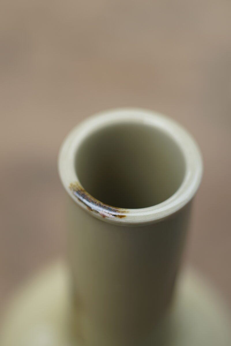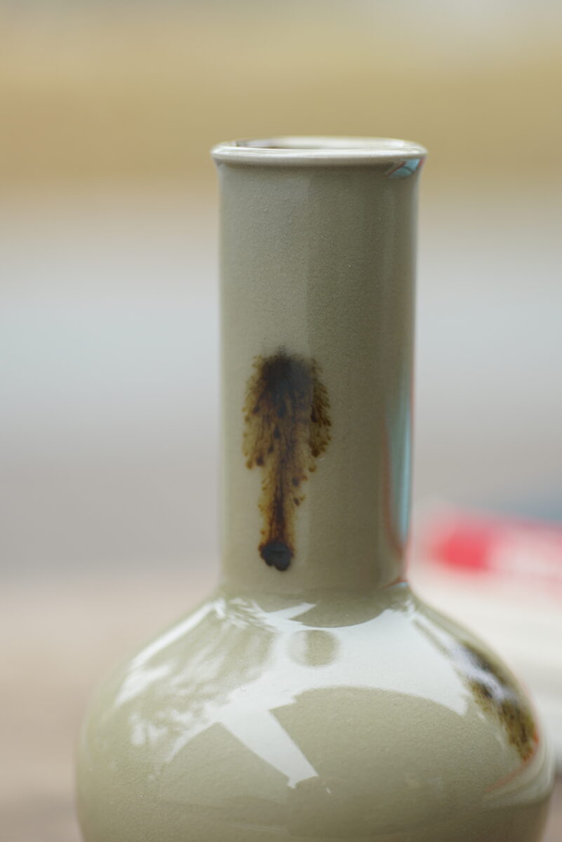 采用龙泉当地优质的朱砂泥和天然原矿釉料,纯手工制作,工艺精良,龙窑柴烧 。其灵感来源于南宋龙泉窑高级立器。