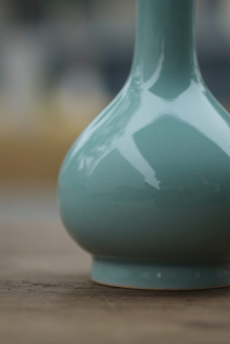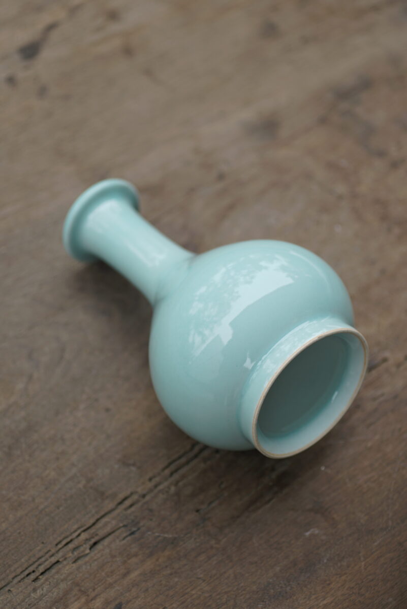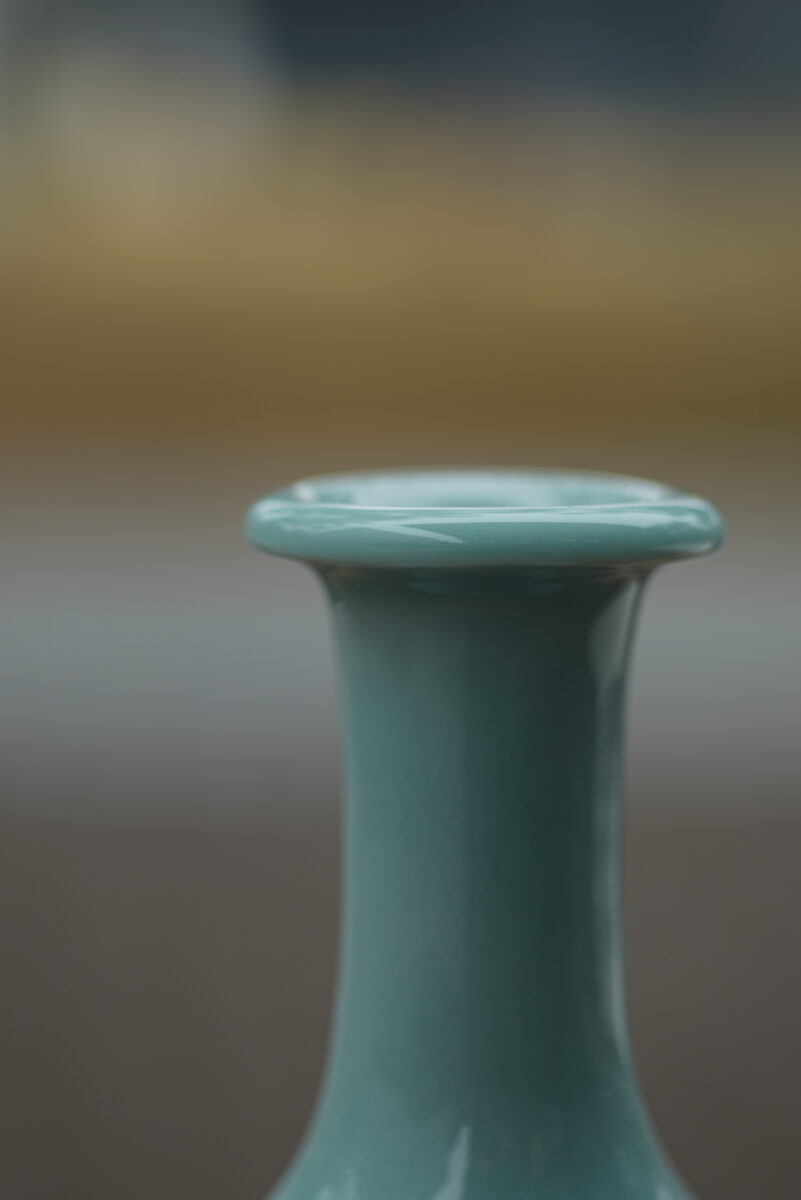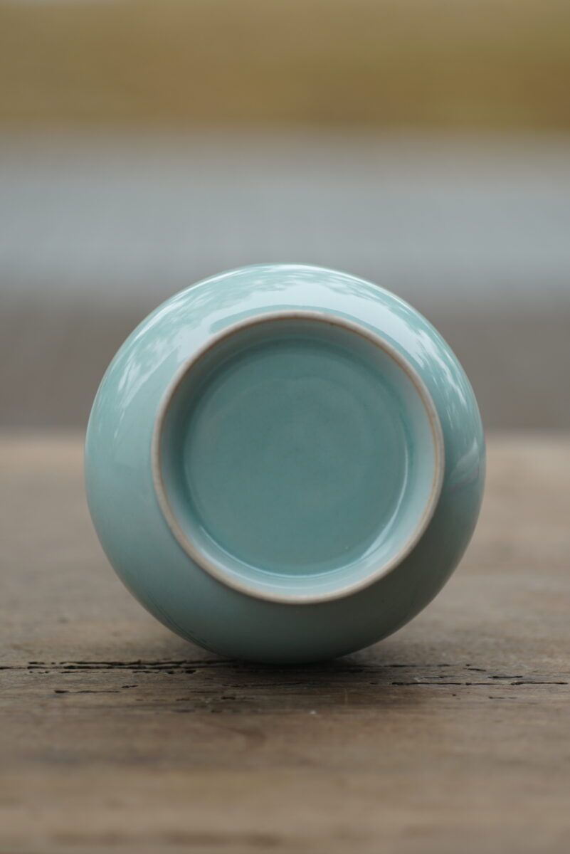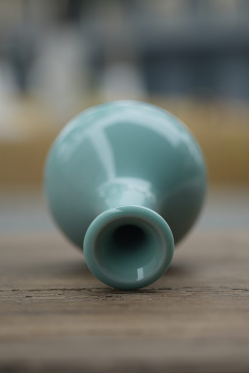 采用龙泉当地优质的朱砂泥和天然原矿釉料,纯手工制作,工艺精良,龙窑柴烧 。其灵感来源于永乐龙泉窑高级立件。