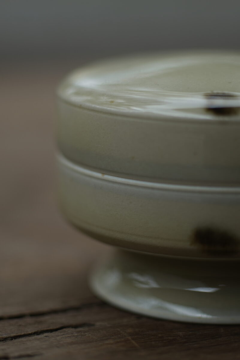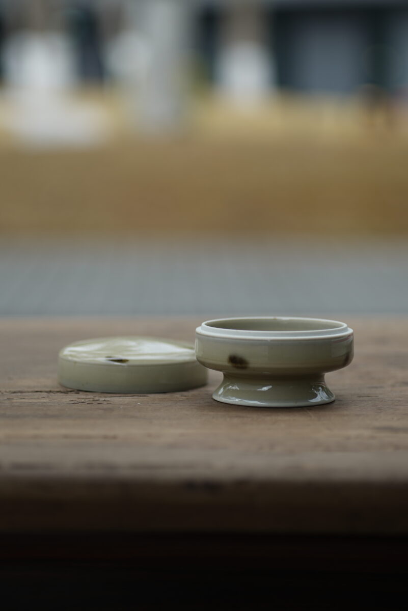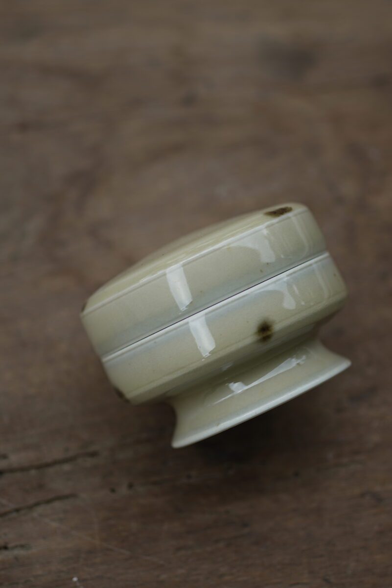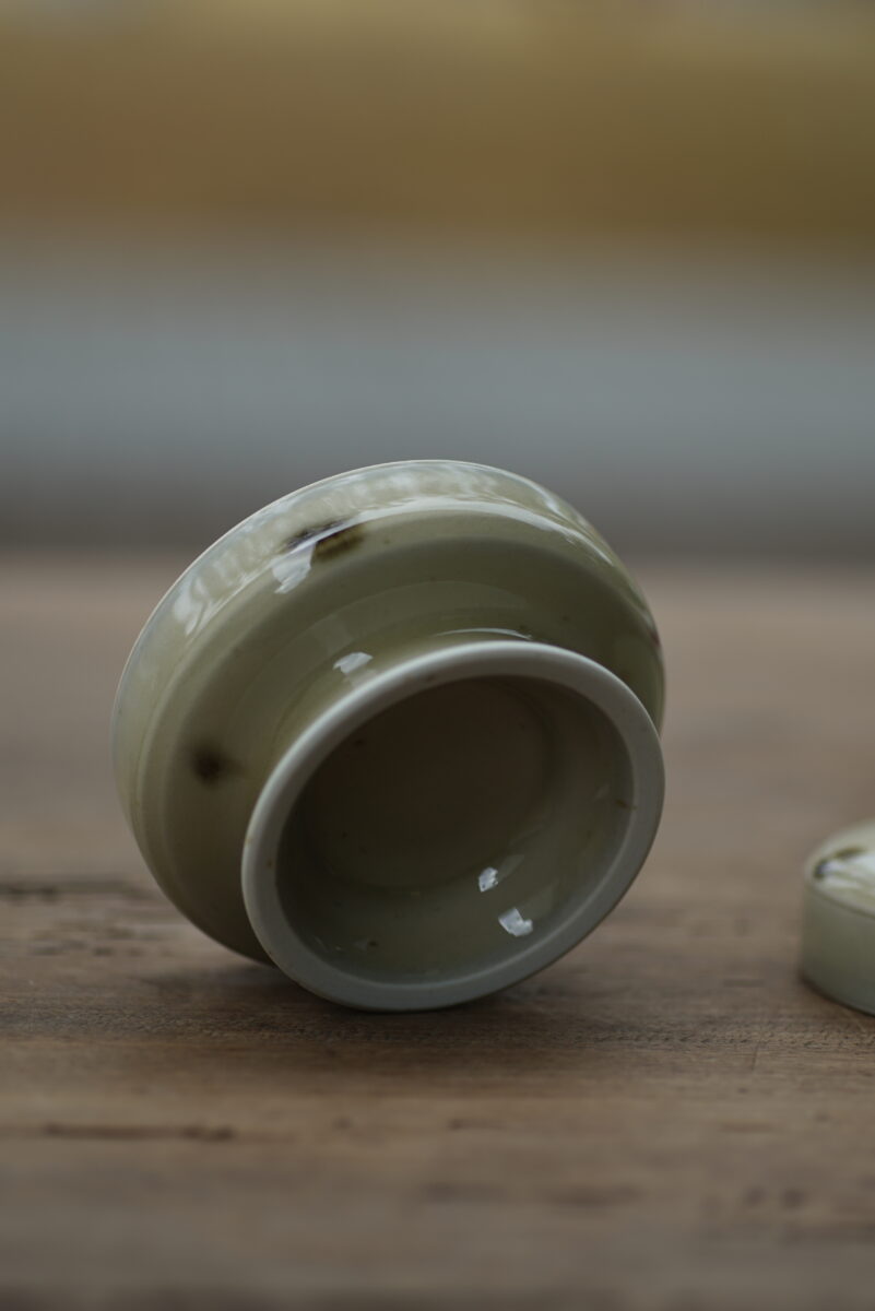 高5.5cm 口径7cm采用龙泉当地优质的朱砂泥和天然原矿釉料,高温柴烧而成 。纯手工制作, 工艺精良。其灵感来源于五代越窑经典实用器。品相:自然柴烧气孔 自然矿点龙窑柴烧 价钱结合品相烧制时间:2025年12月06日