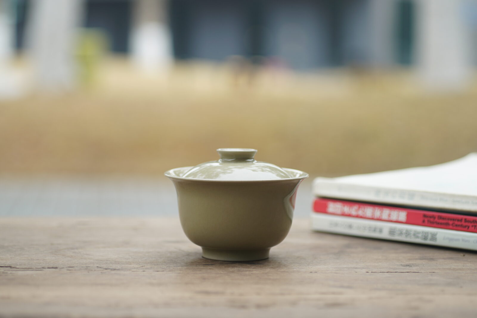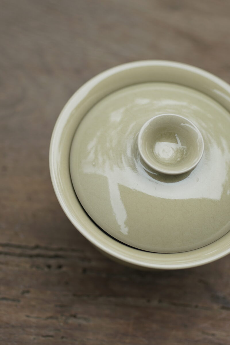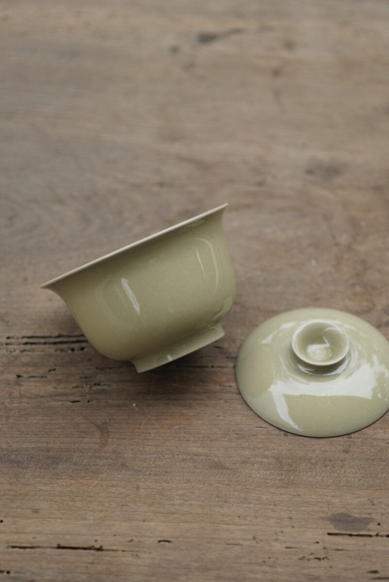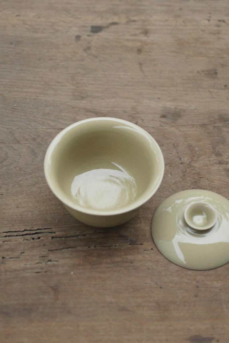 柴烧 黄釉二才盖碗