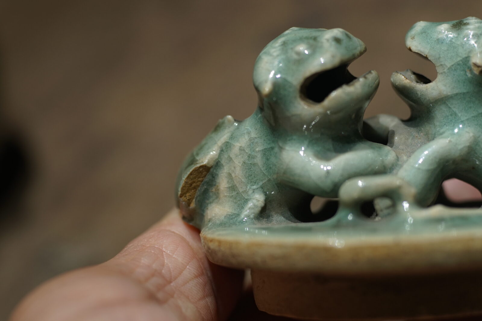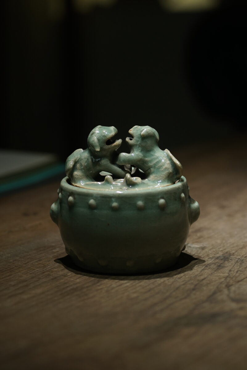 明代龙泉窑 狻猊鼓钉熏炉