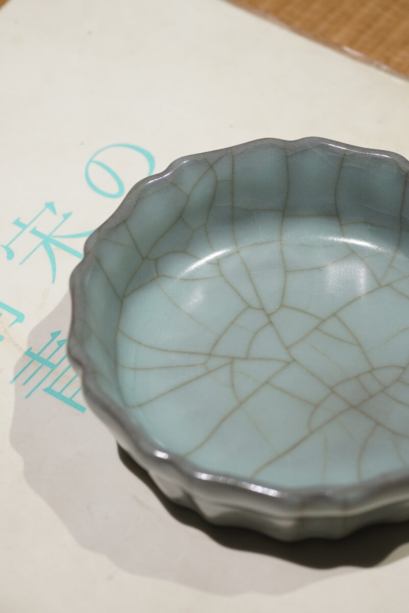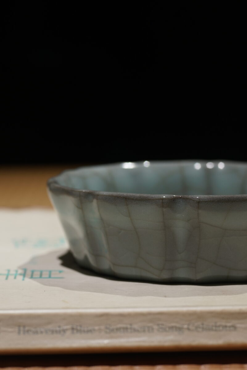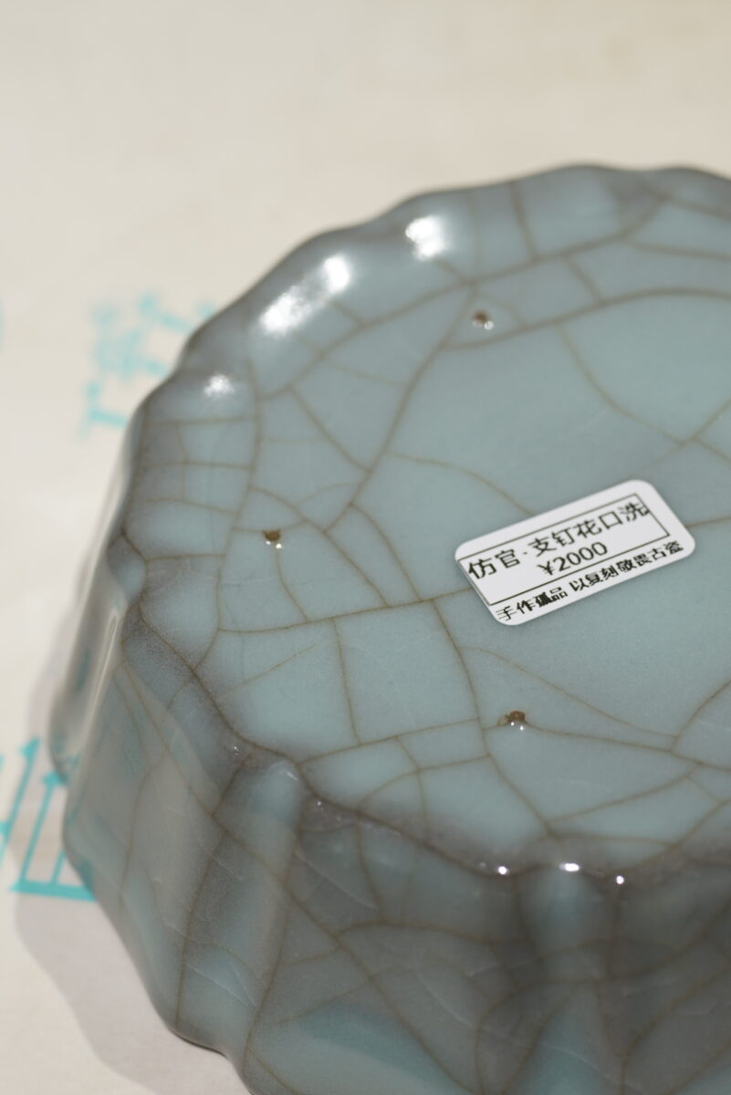 这件复刻器采用龙泉当地的哥窑泥料和天然原矿釉料,支钉烧,工艺精良,其灵感源自南宋官窑器。