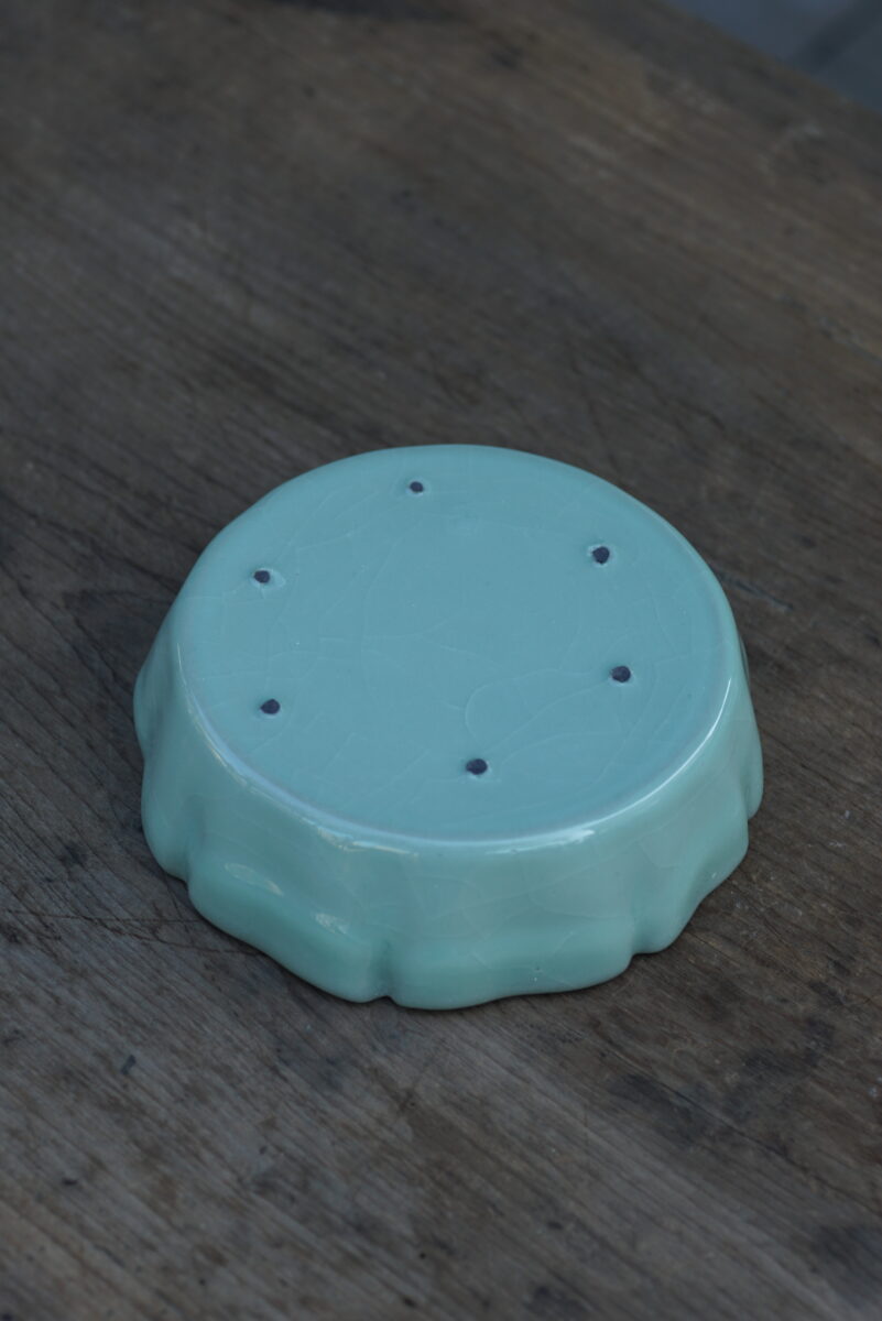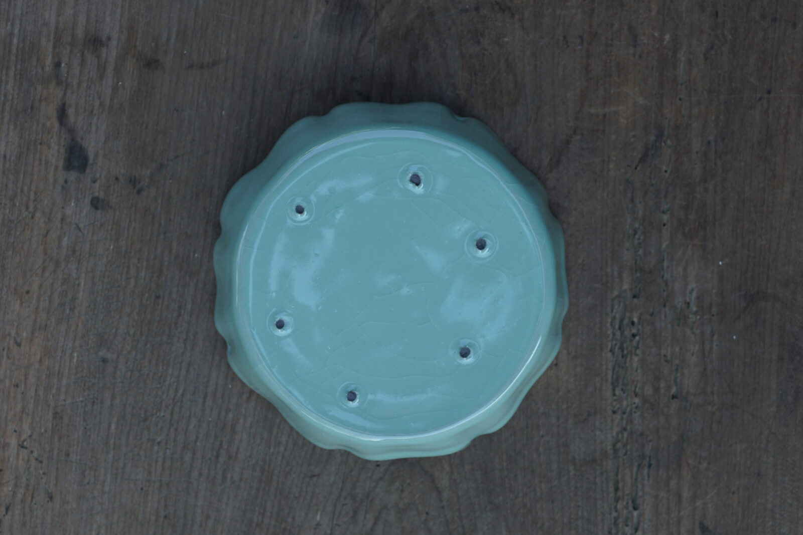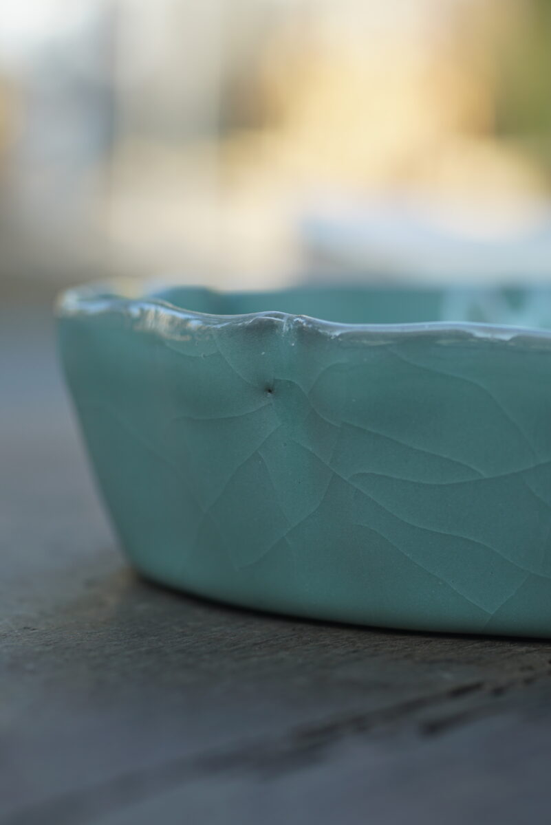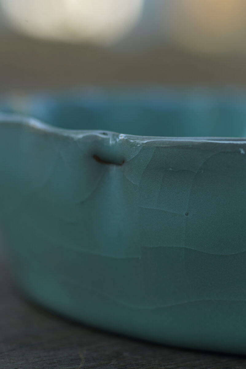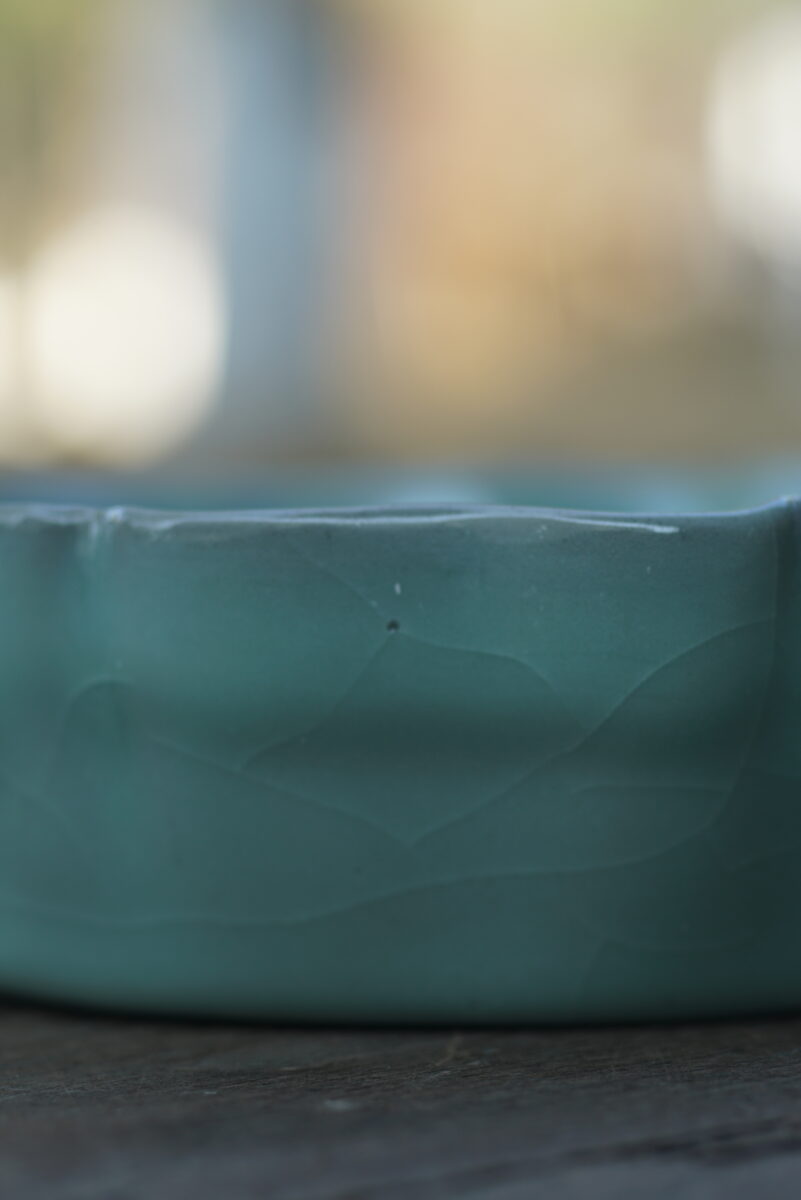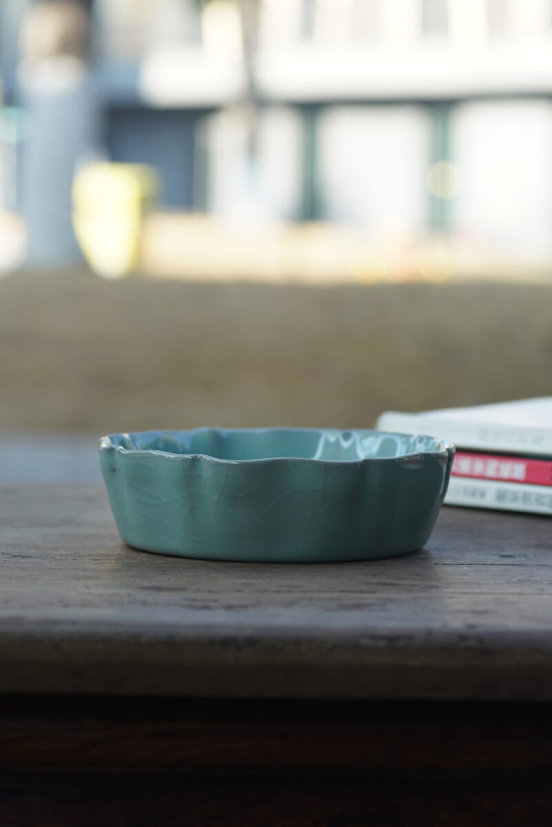 采用龙泉当地优质的铁胎泥和天然原矿釉料,高温烧制而成。支钉垫烧,纯手工制作,工艺精良。器型来源于南宋官窑宫廷用器。