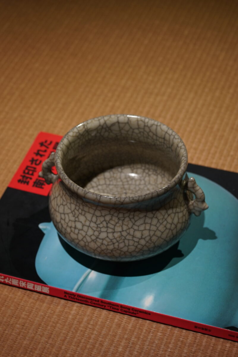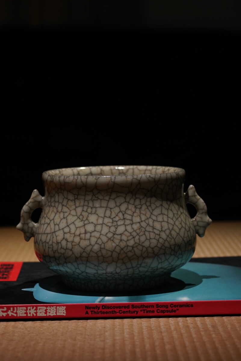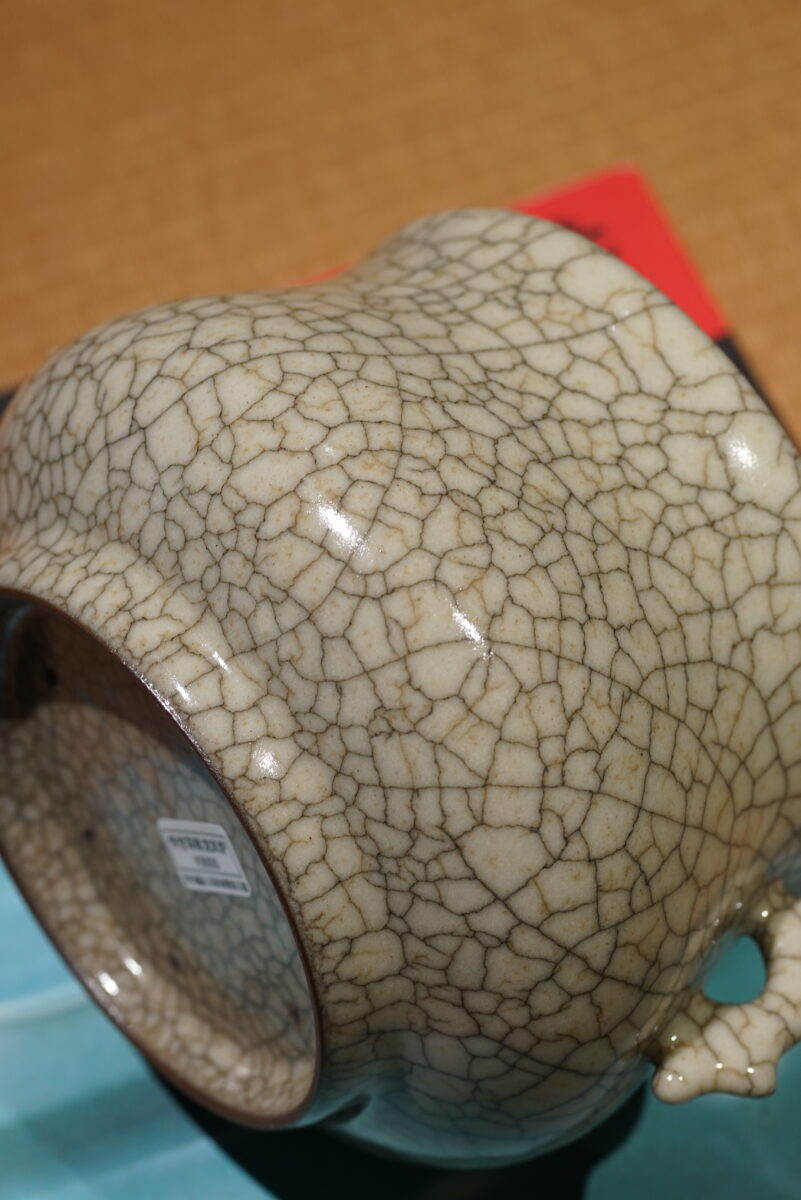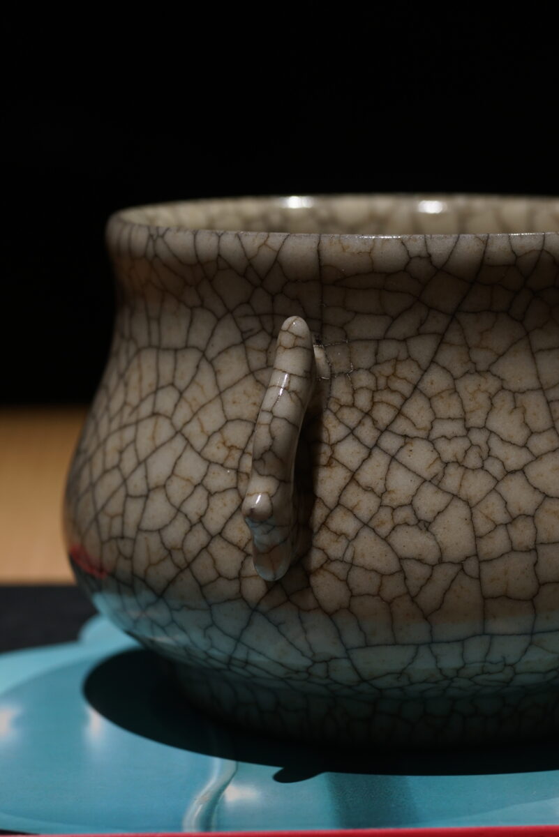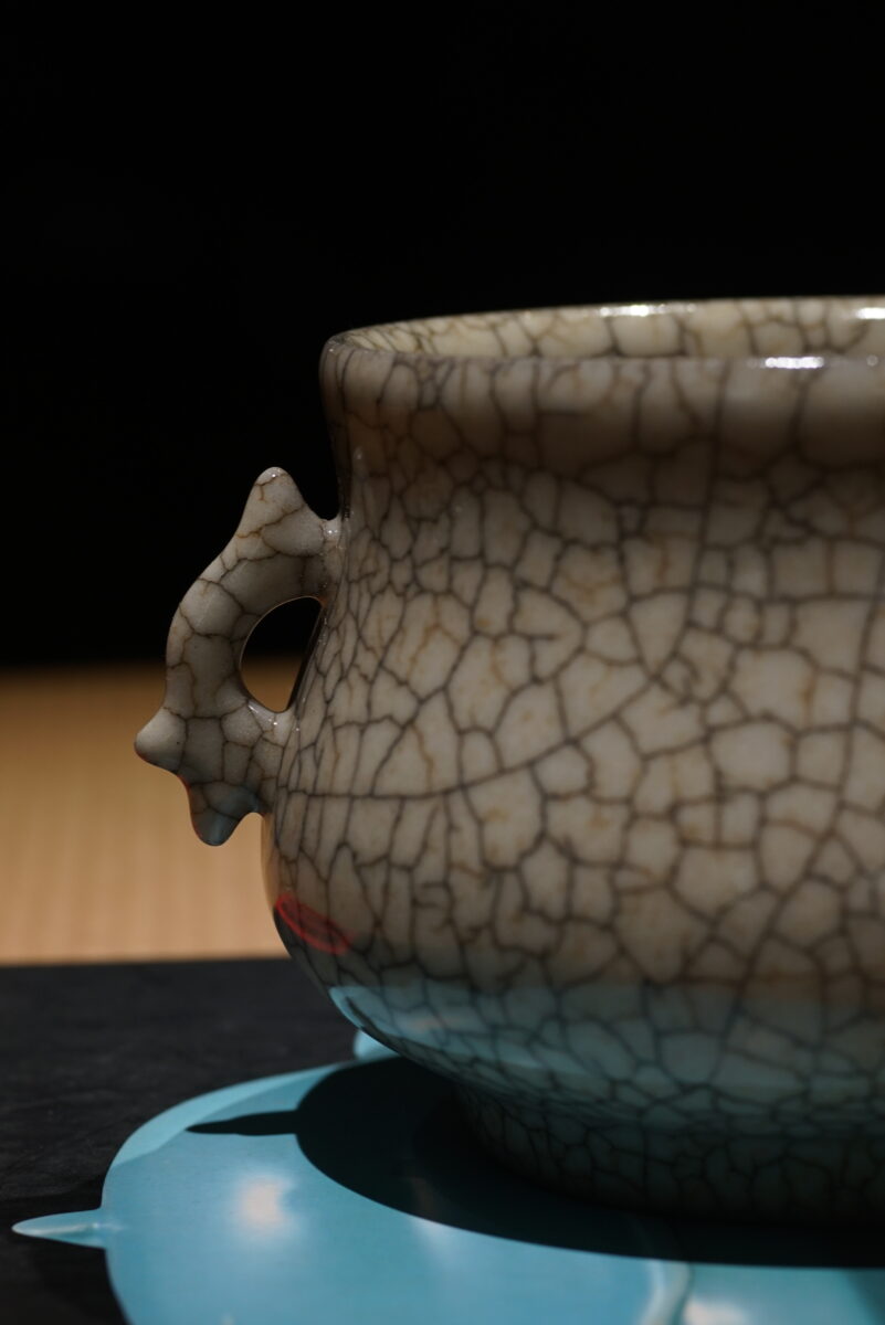 高10cm 口径12.5cm采用龙泉当地优质的哥窑和原矿釉料。纯手工制作,工艺精良。器型灵感来源于青铜器和传世哥窑官窑器,古朴自然,经典香道用具。