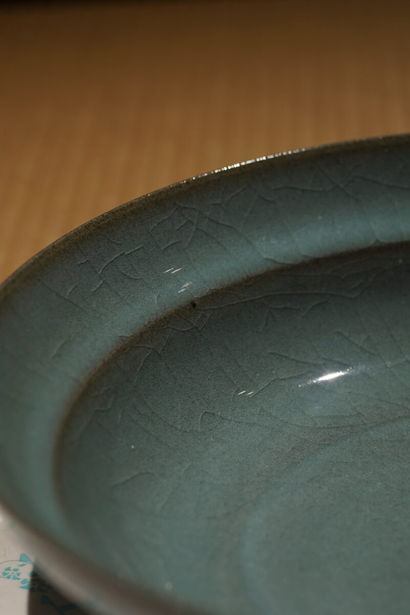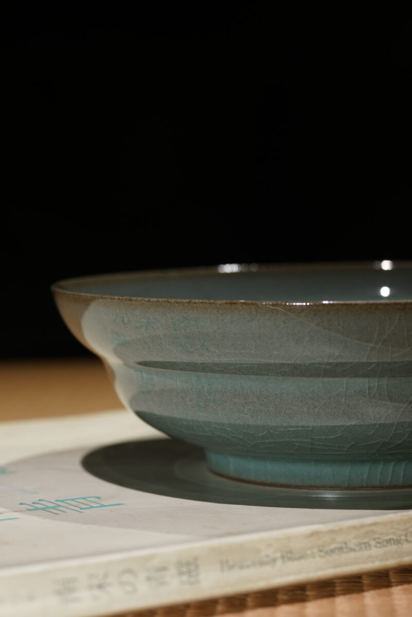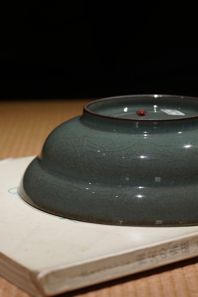 这件复刻器采用龙泉当地的铁胎泥料和天然原矿釉料,纯手工制作,工艺精良,其灵感源自南宋官窑高级实用器。内侧折边有一处自然黑色矿点 价格结合品相
