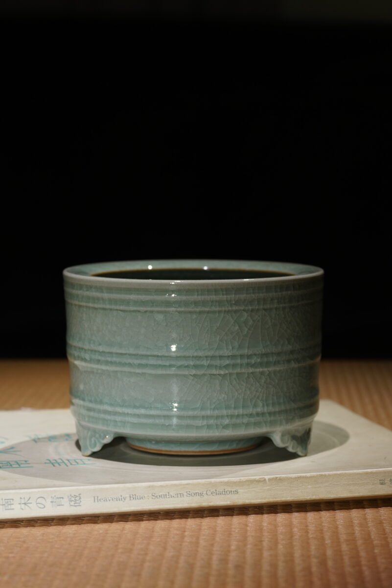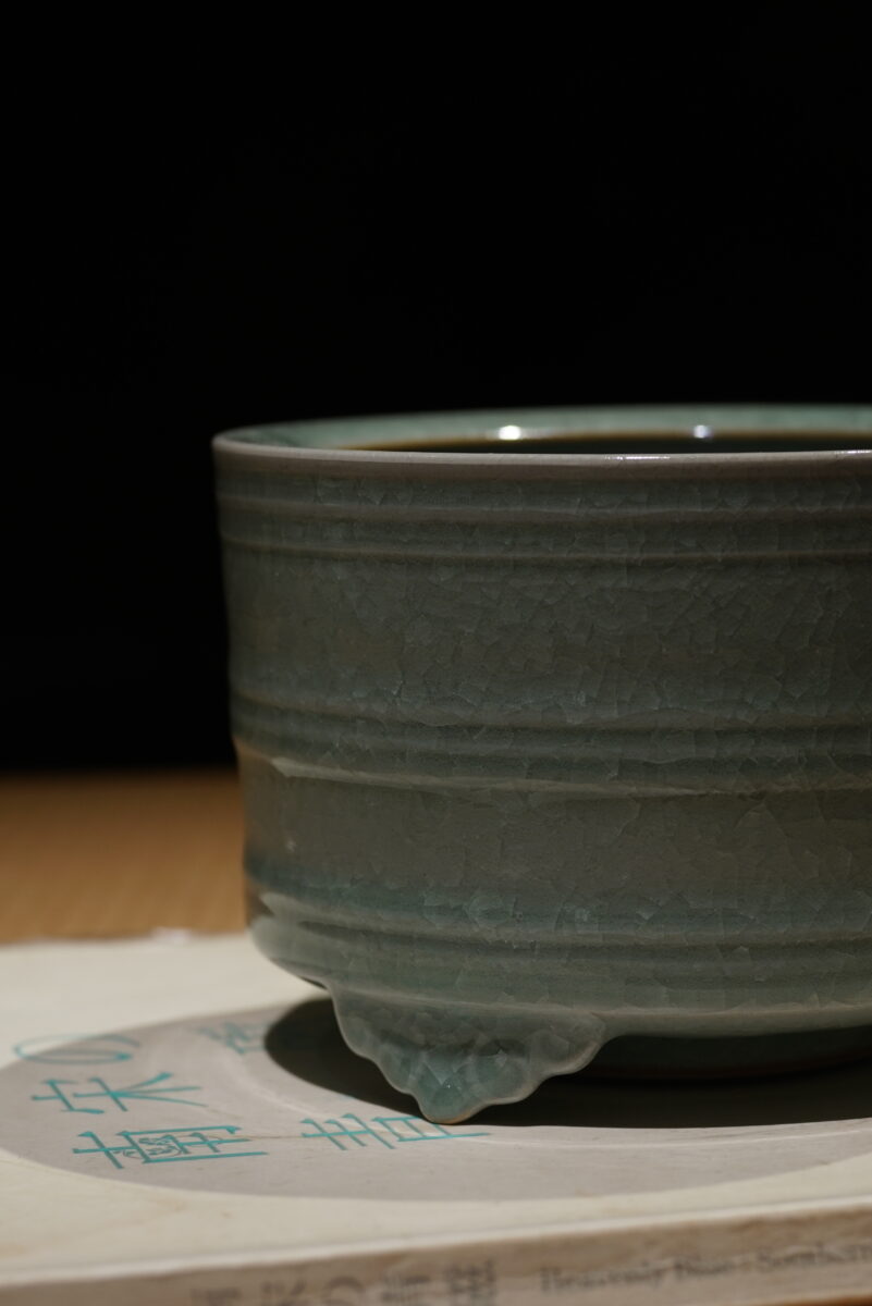 采用龙泉当地优质的朱砂泥和原矿釉料,纯手工制作,工艺精良,自然冰裂。器型灵感来源于青铜器,古朴自然,经典香道用具。