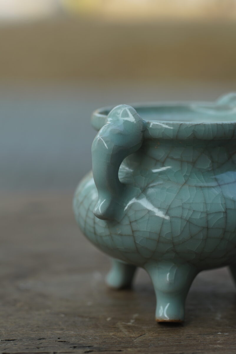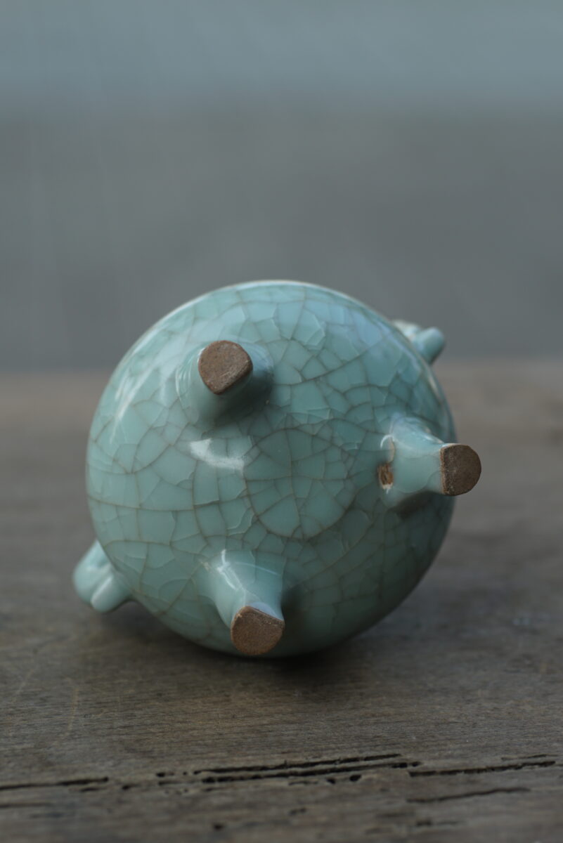 采用龙泉当地优质的朱砂泥和天然原矿釉料,高温烧制而成。纯手工制作,工艺精良,官味十足。器型来源于南宋时期龙泉窑官制器。