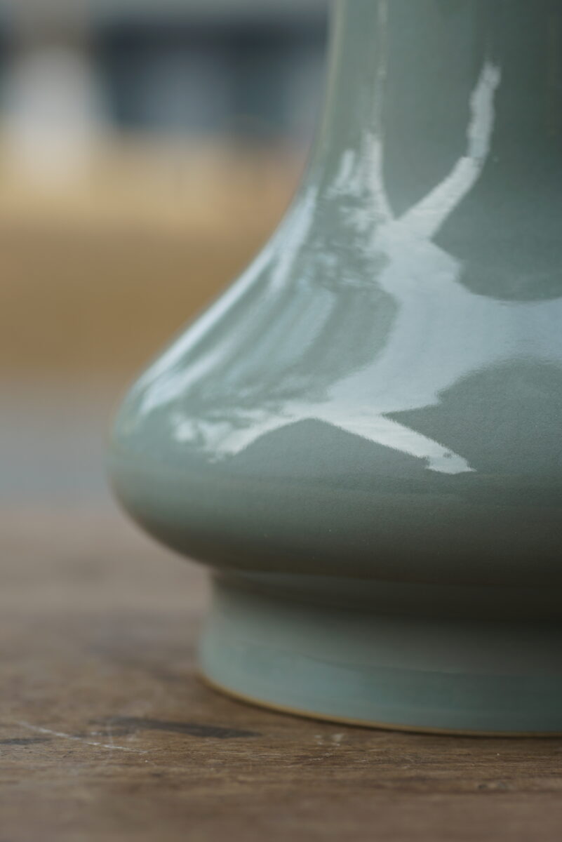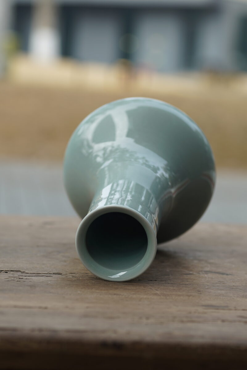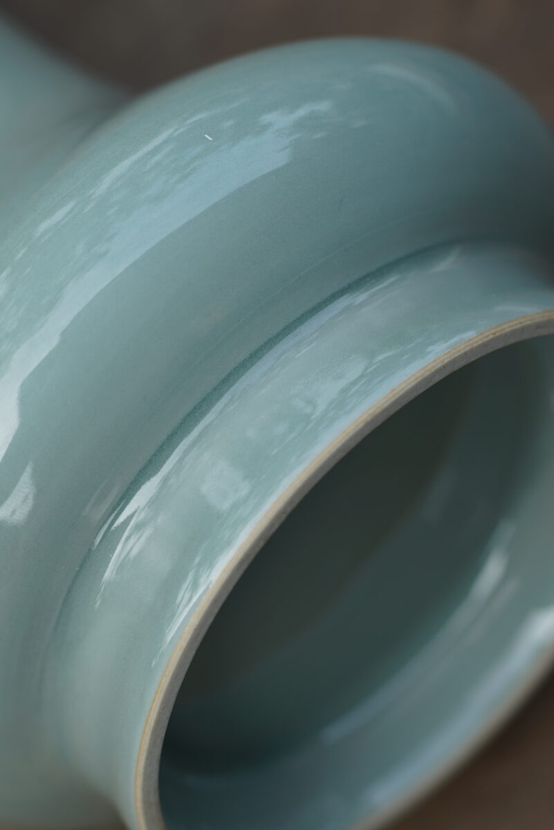 采用龙泉当地优质的朱砂泥和天然原矿釉料,纯手工制作,工艺精良,龙窑柴烧 。其灵感来源于南宋龙泉窑高级立件。