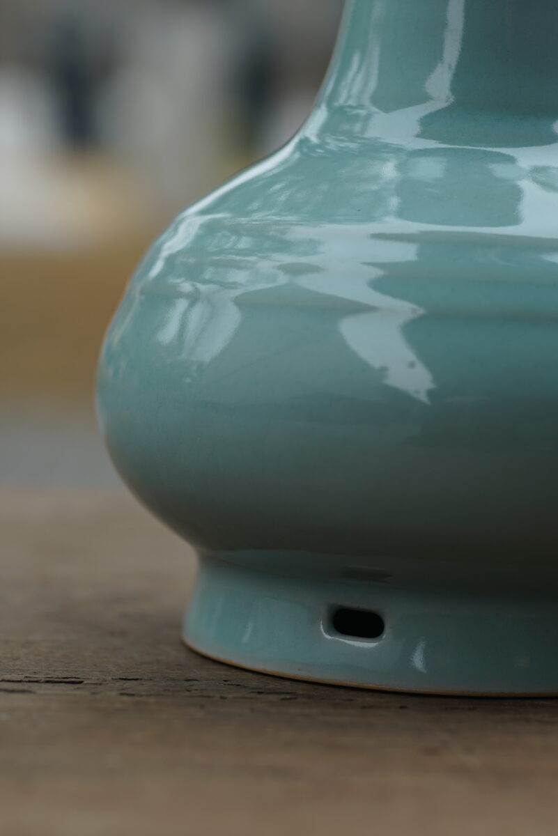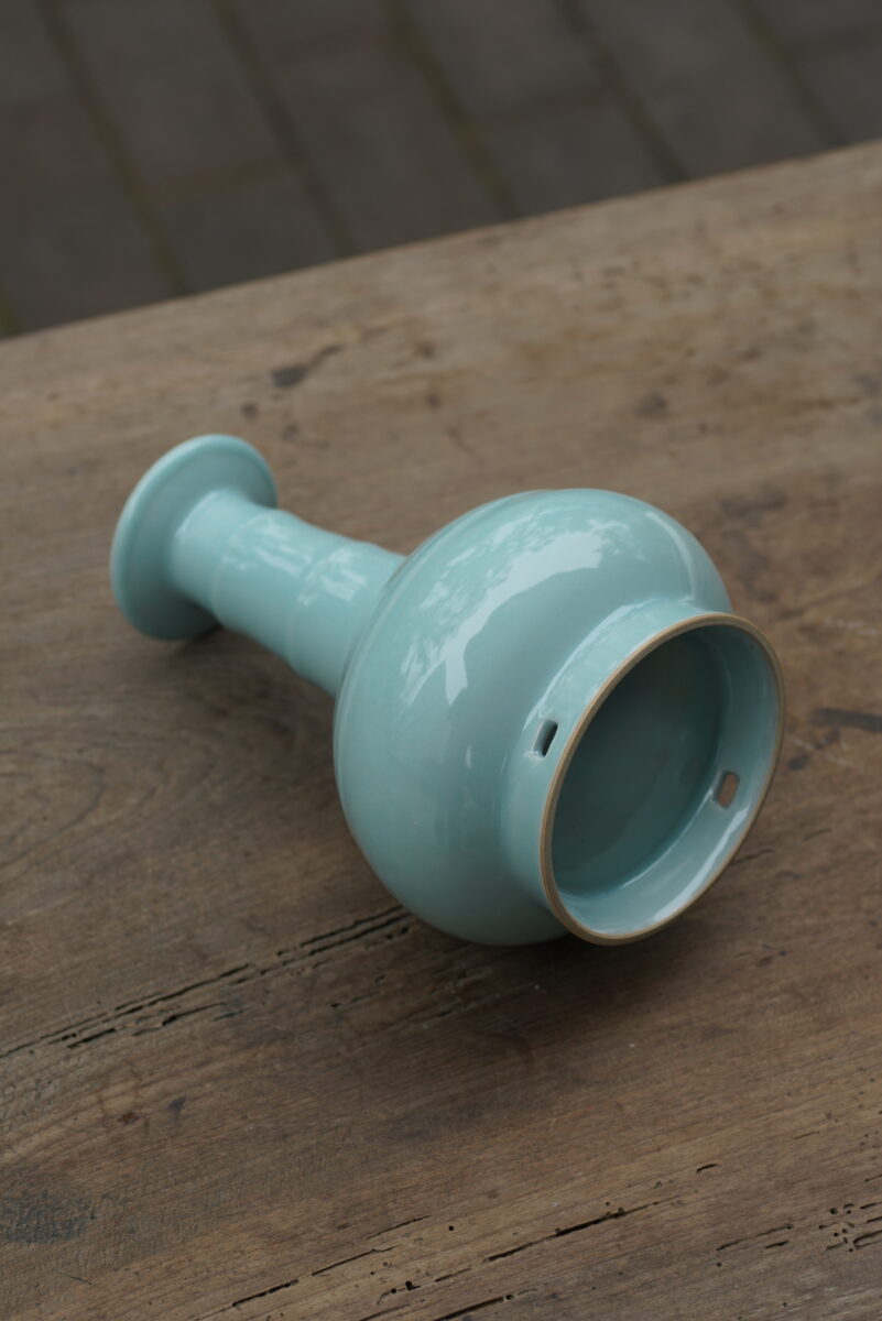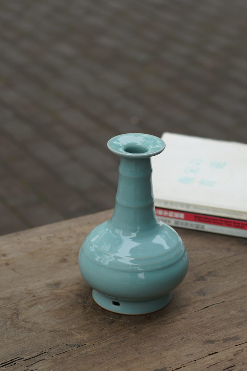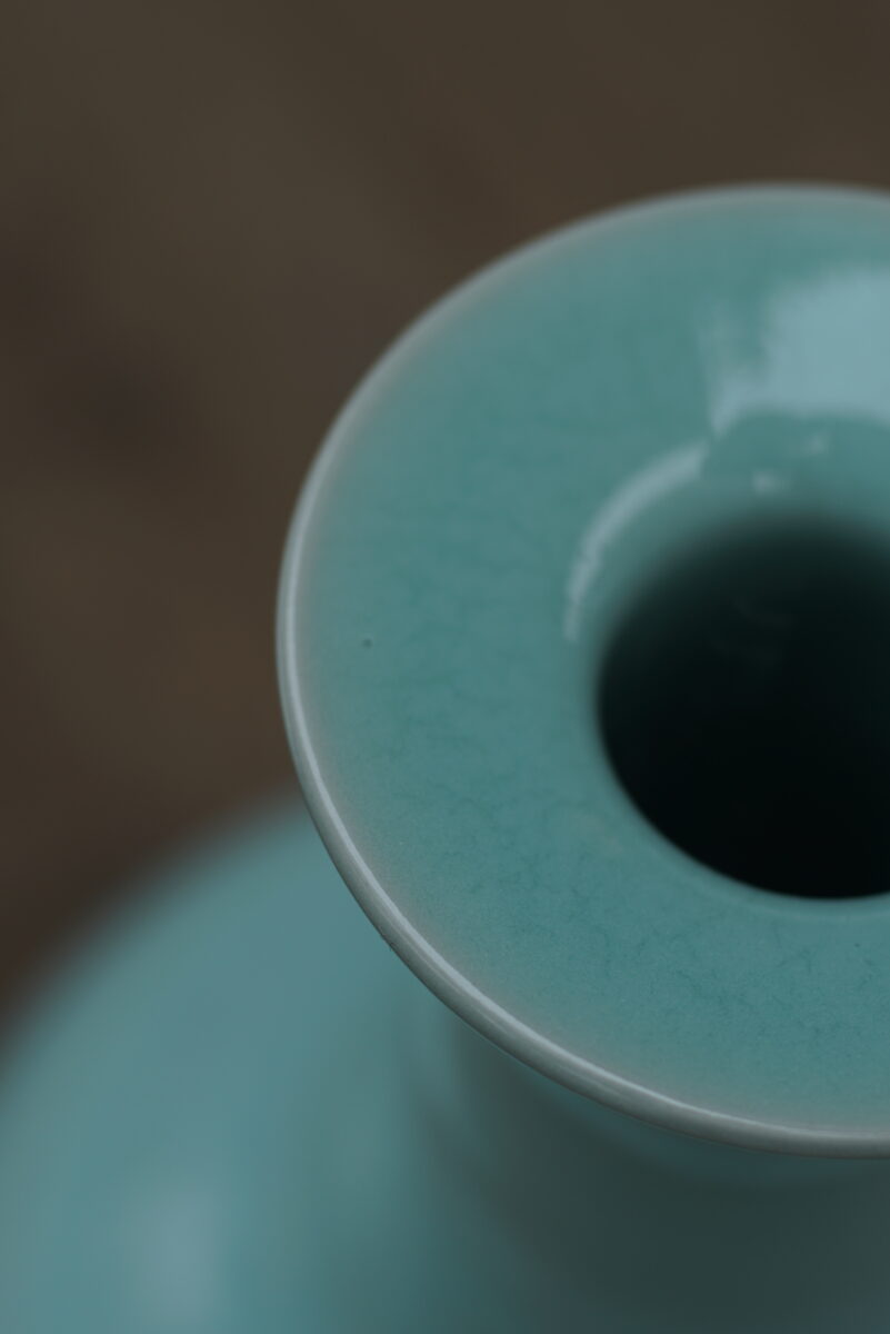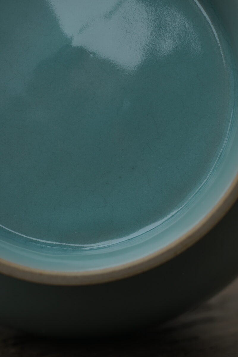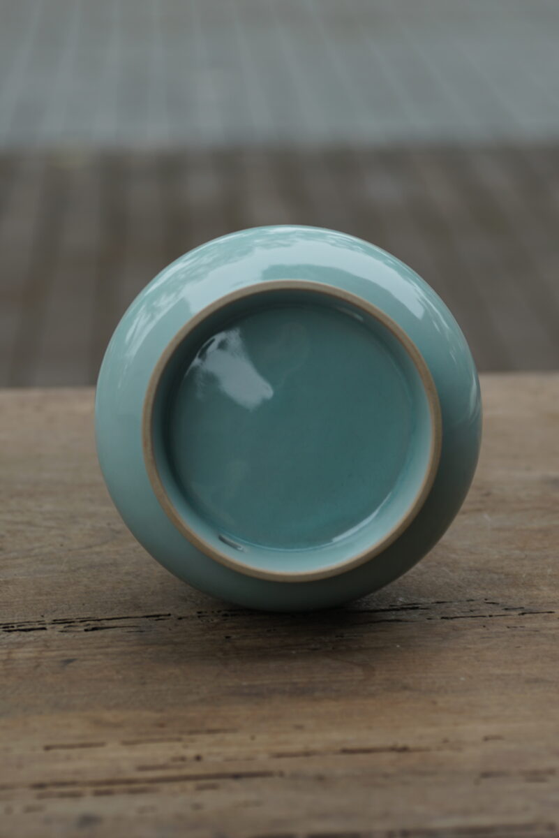 采用龙泉当地优质的朱砂泥和天然原矿釉料,纯手工制作,工艺精良,龙窑柴烧 。其灵感来源于南宋龙泉窑高级宫廷用器。