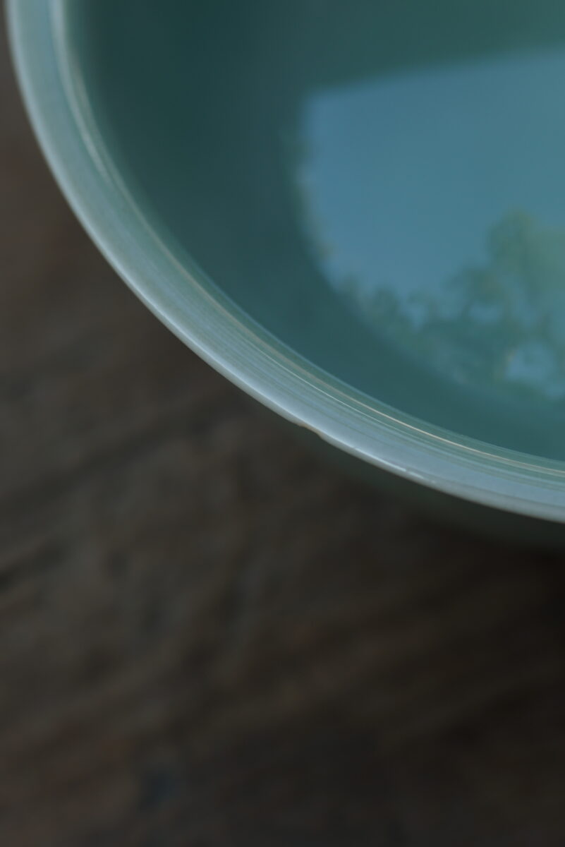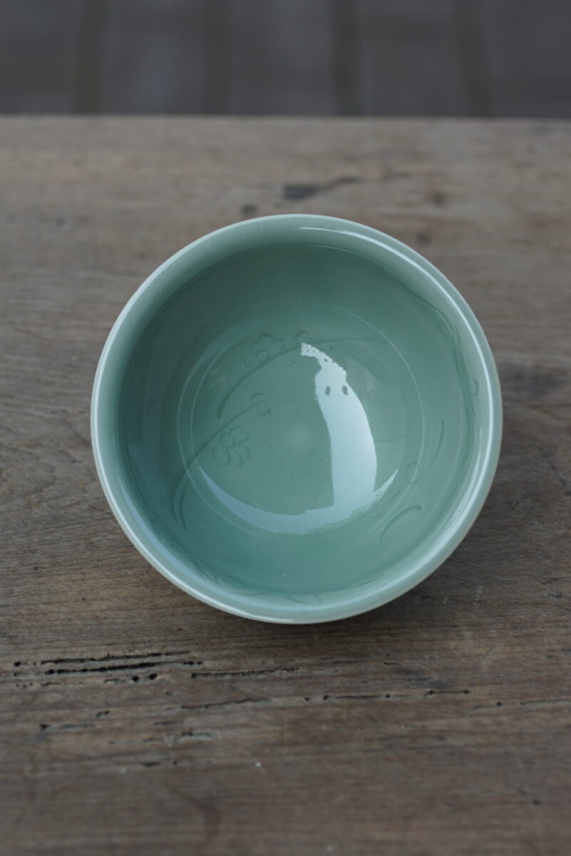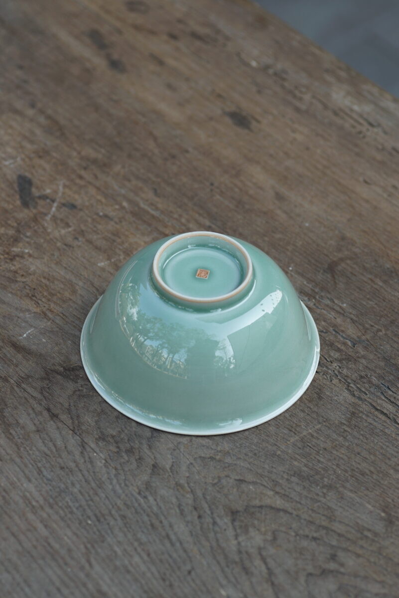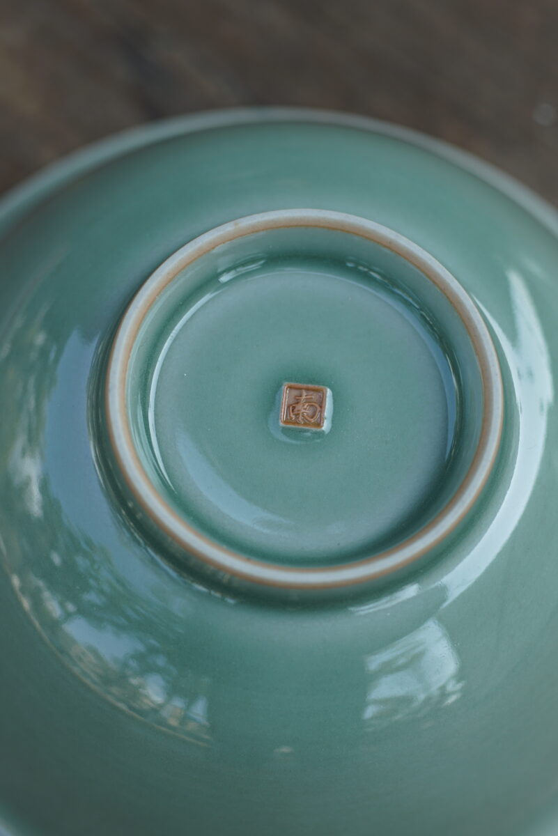 这件复刻器采用龙泉当地优质的朱砂泥和天然原矿釉料,龙窑柴烧,高温烧制而成 。纯手工制作,纹样清晰,工艺精良.器型灵感来源于北宋龙泉窑高级刻花器。