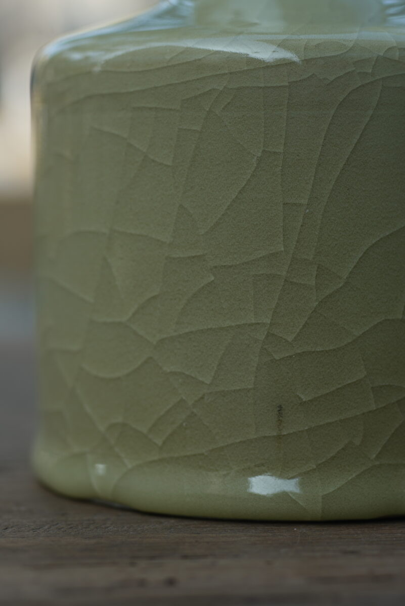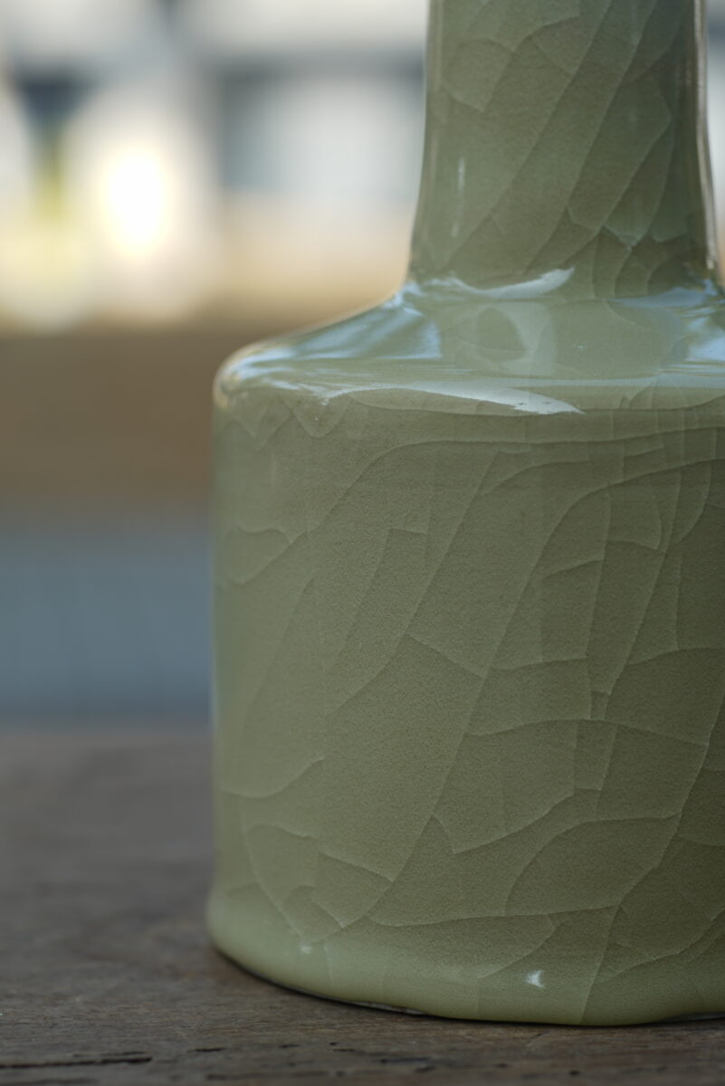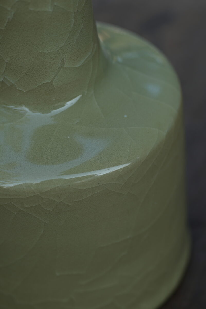 采用龙泉当地优质的朱砂泥和天然原矿釉料,纯手工制作,工艺精良 。其灵感来源于南宋龙泉窑高级立件。