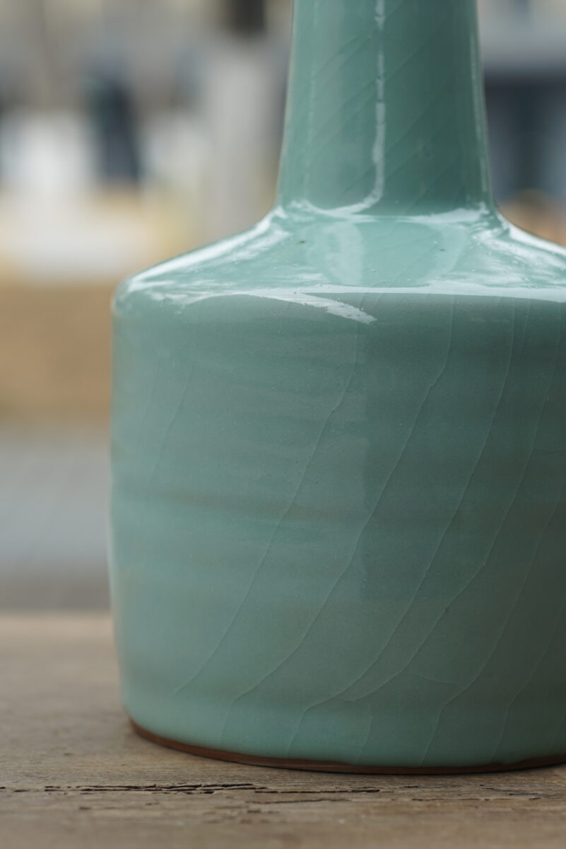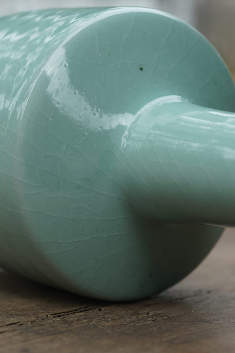 采用龙泉当地优质的铁胎泥和天然原矿釉料,纯手工制作,工艺精良,龙窑柴烧 。其灵感来源于南宋官窑高级宫廷用器。