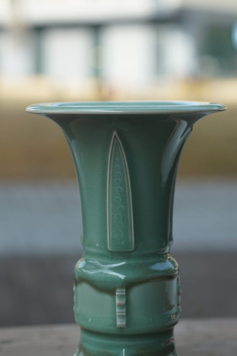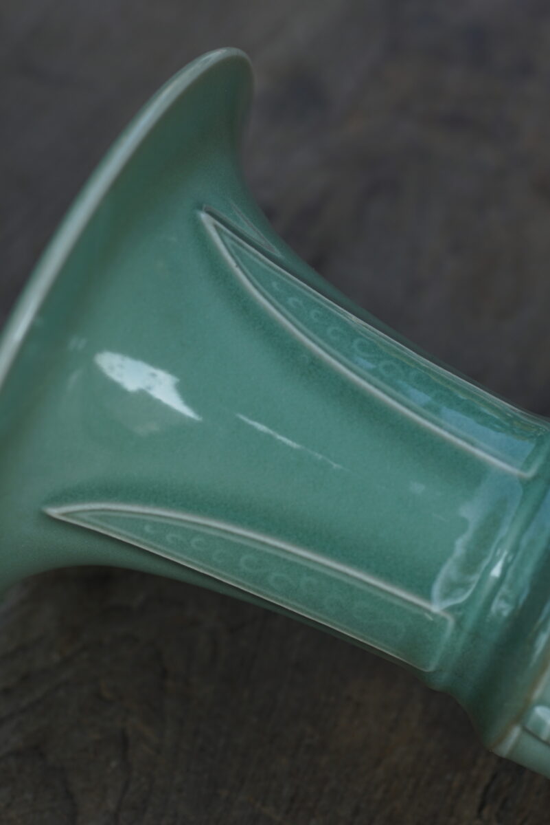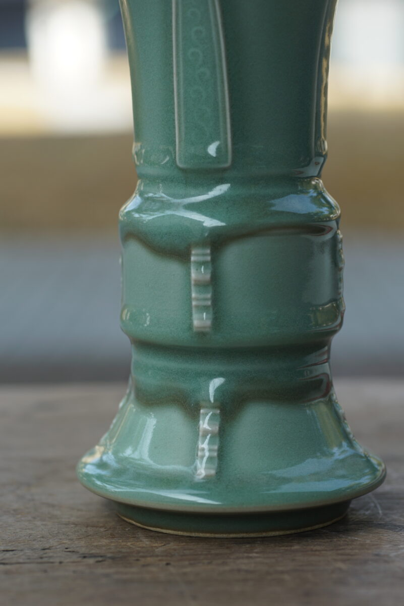 采用龙泉当地优质的朱砂泥和天然原矿釉料,纯手工制作,工艺精良 。其灵感来源于商周时期青铜礼器。