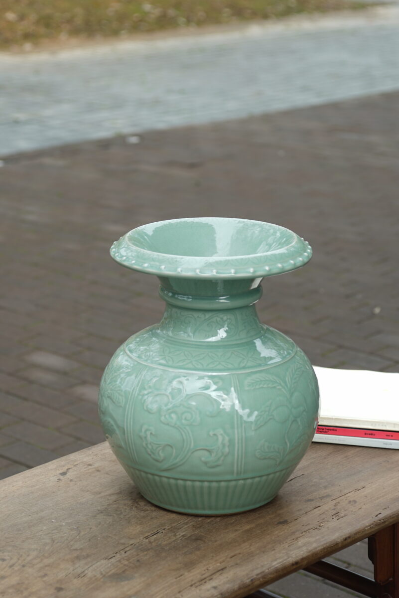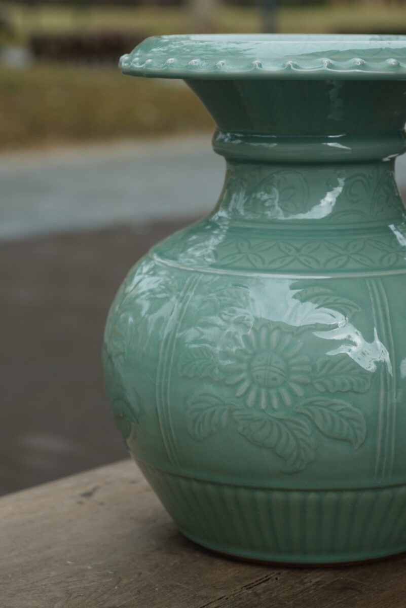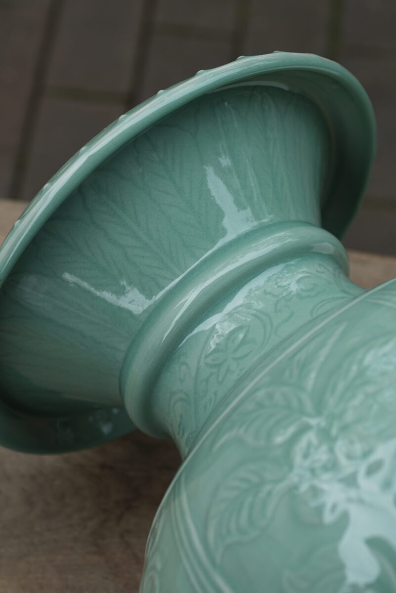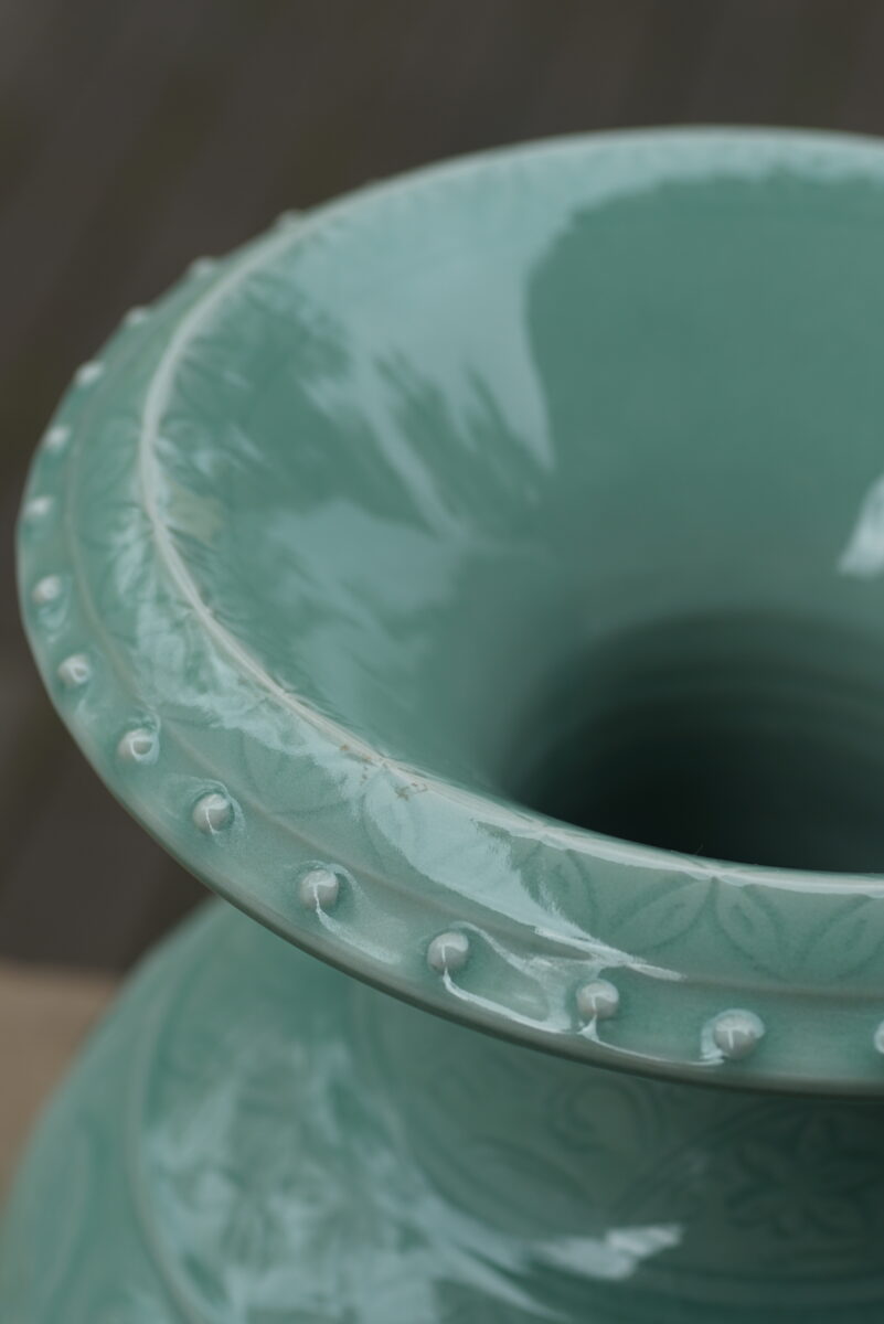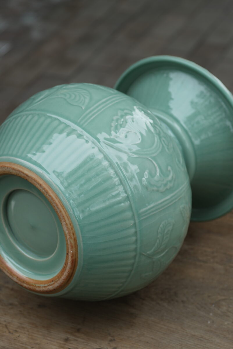 采用龙泉当地优质的朱砂泥和天然原矿釉料,纯手工制作,工艺精良 。灵感来源于洪武时期龙泉处州官窑器。