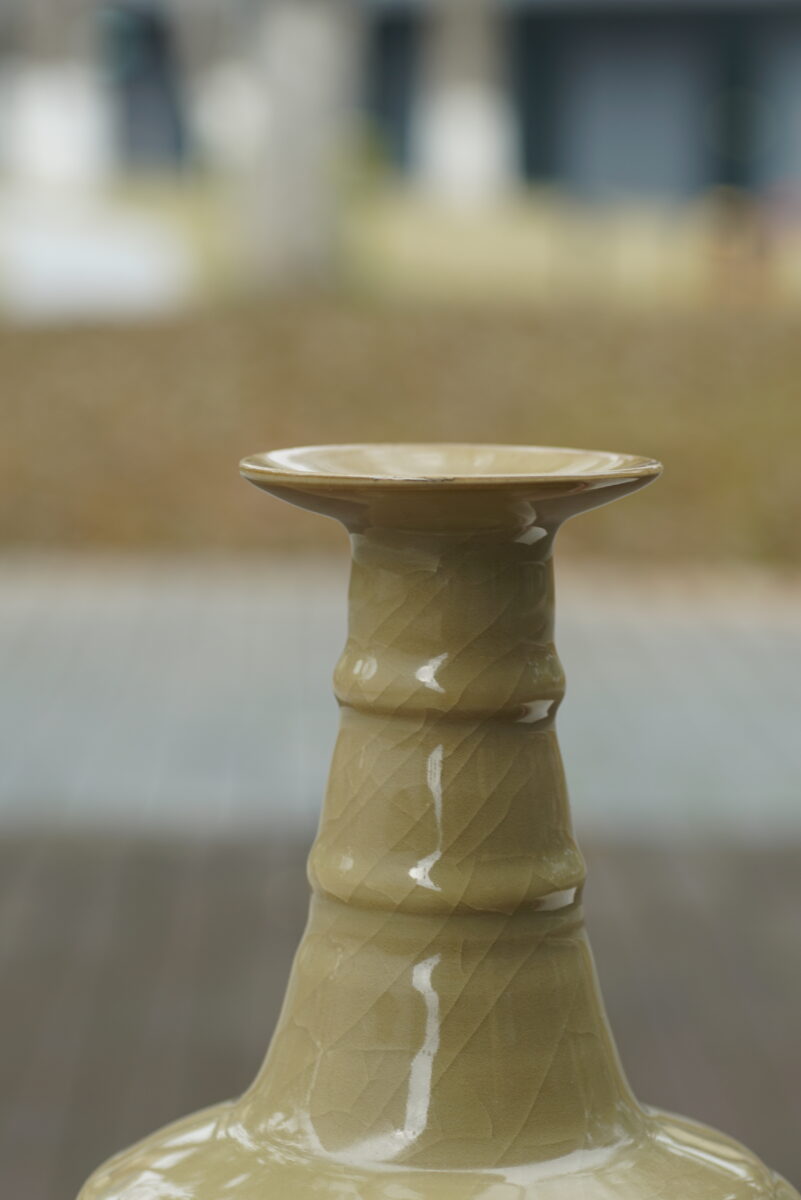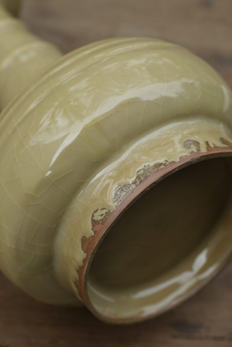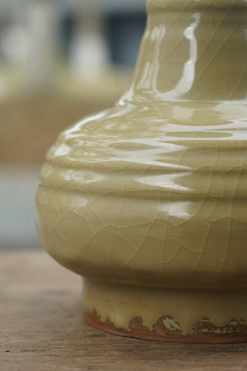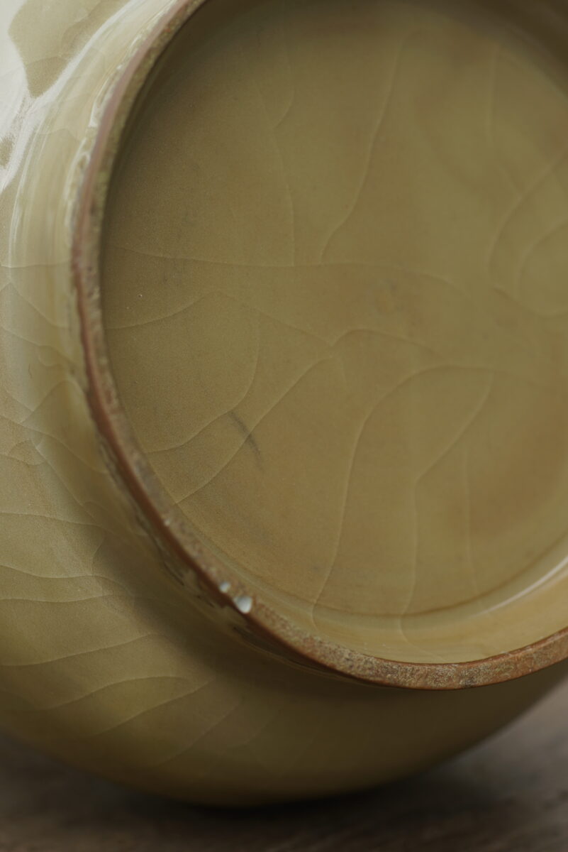 采用龙泉当地优质的铁胎泥和天然原矿釉料,纯手工制作,工艺精良,稳重大气。灵感来源于南宋官窑宫廷用器。