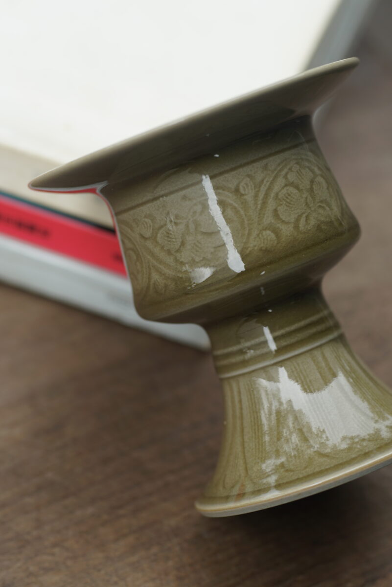 高6.2cm 口径7.8cm采用龙泉当地优质的朱砂泥和原矿釉料,纯手工制作,工艺精良,龙窑柴烧。纹样清晰,灵感来源于耀州窑高级香具,古朴自然,经典香道用具。龙窑柴烧 价钱结合品相烧制时间:2026年02月22日