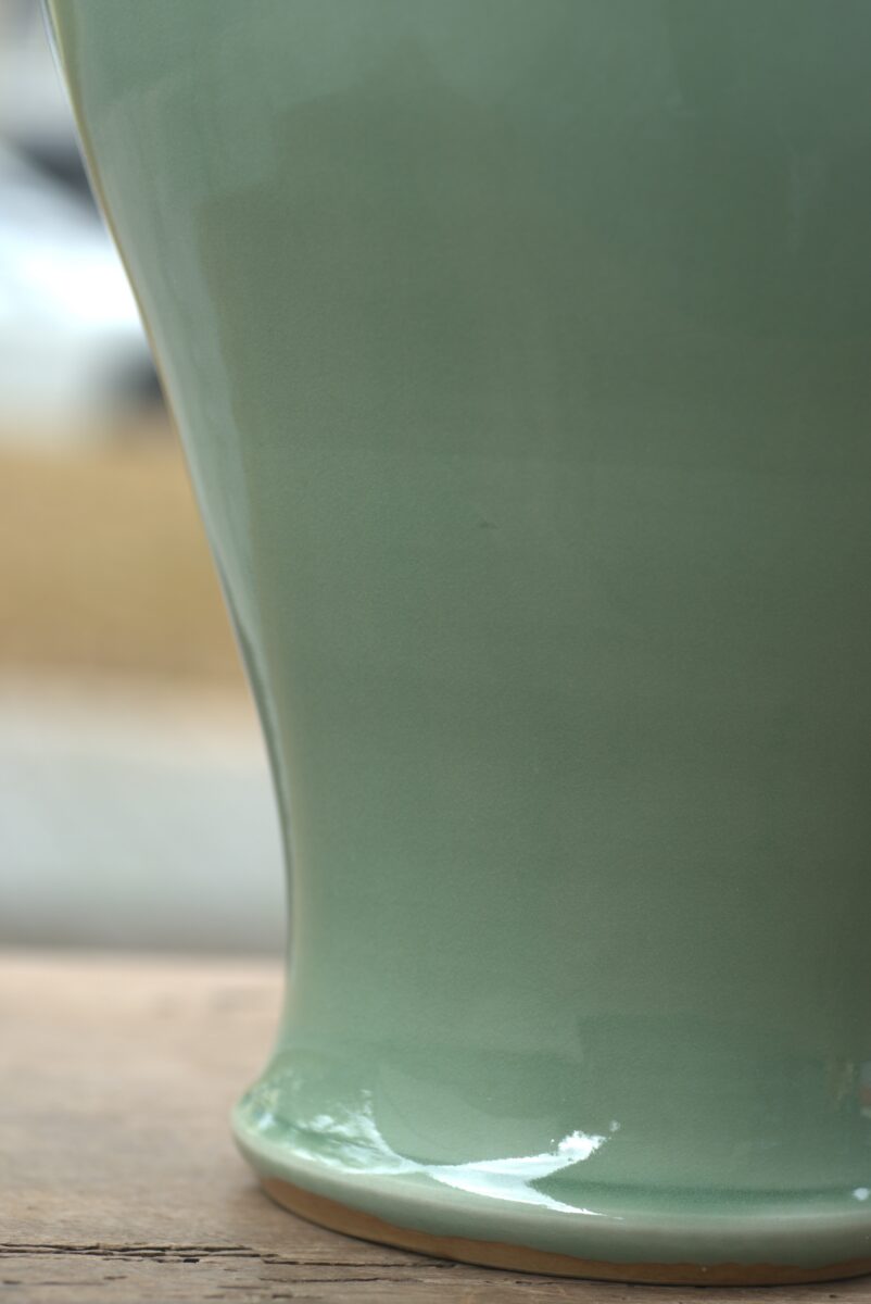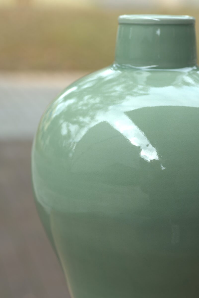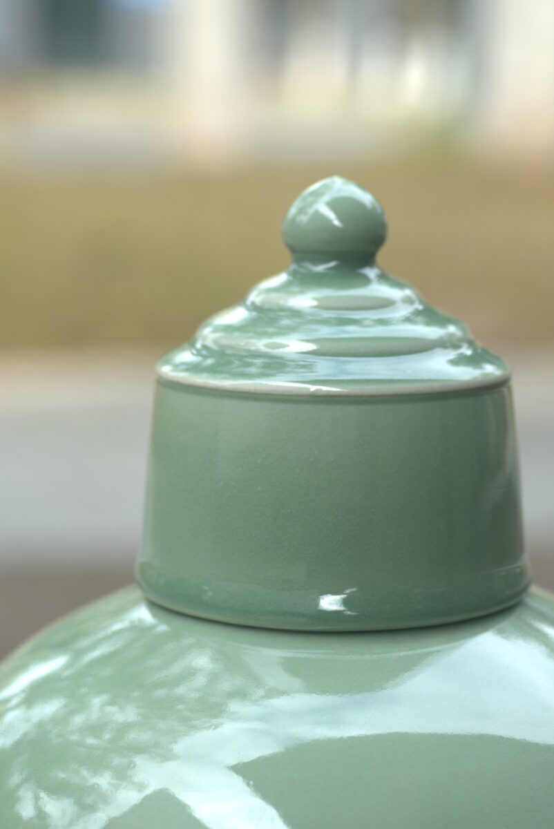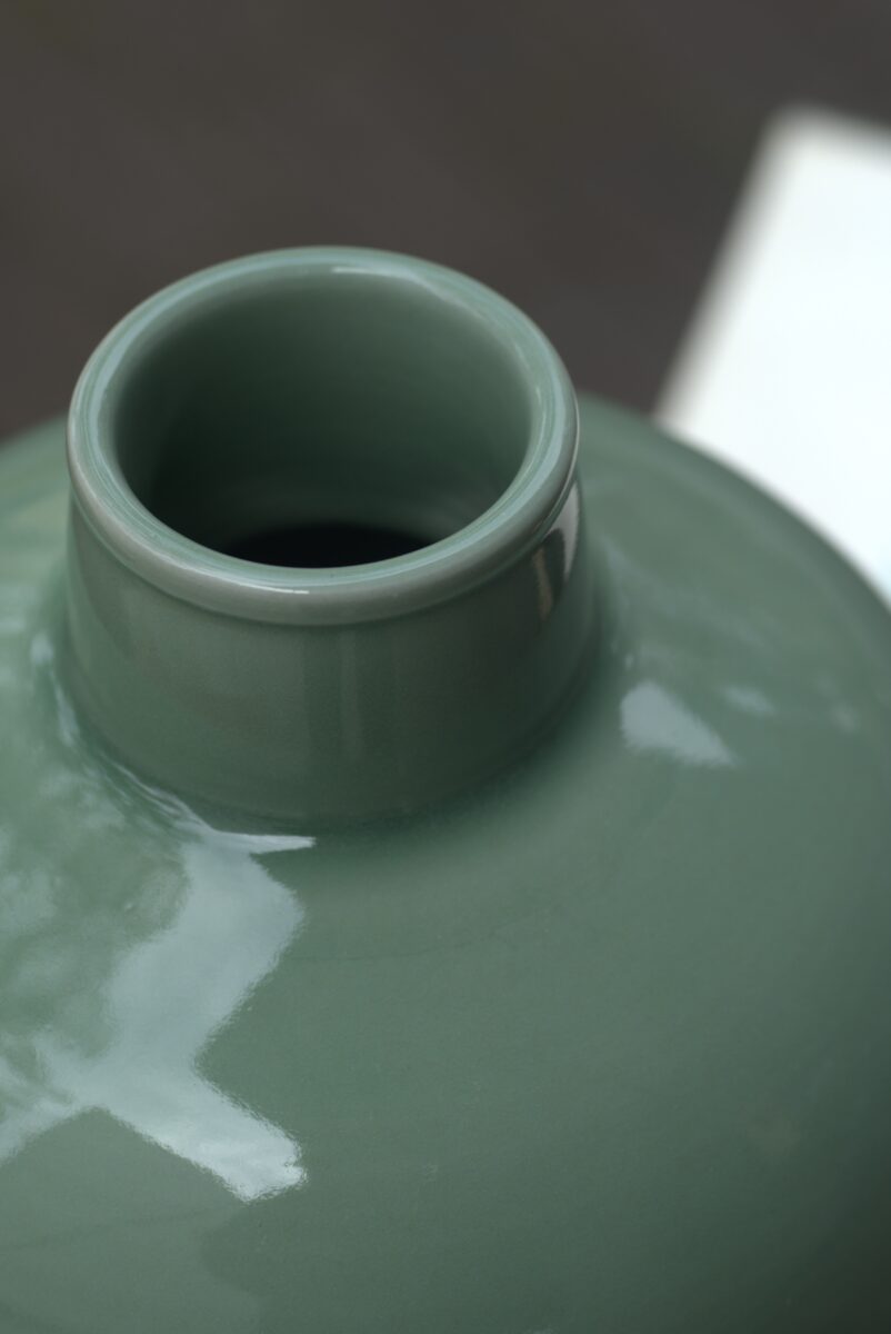 采用龙泉当地优质的朱砂泥和天然原矿釉料,高温烧制而成 。纯手工制作, 工艺精良。其灵感来源于明龙泉窑高级立件。