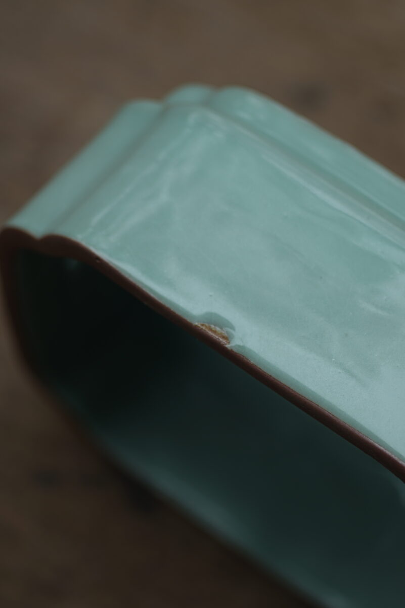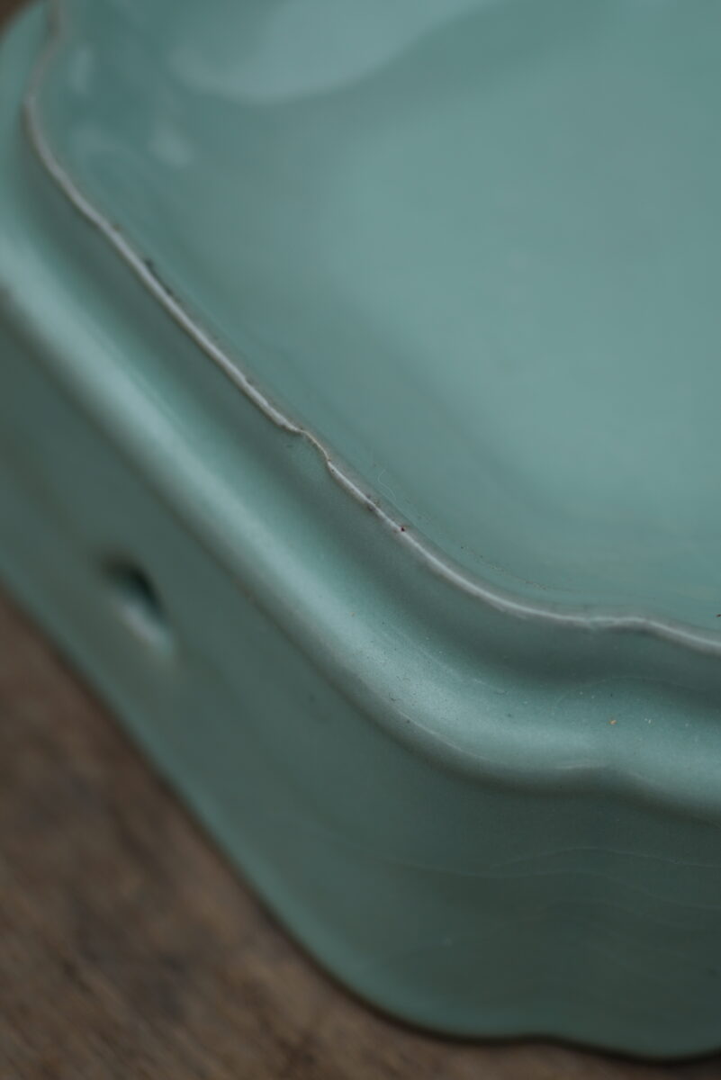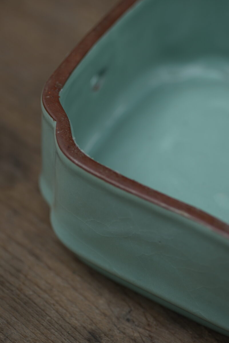 这件复刻器采用龙泉当地的铁胎泥料和天然原矿釉料,工艺精良,其灵感源自南宋官窑。