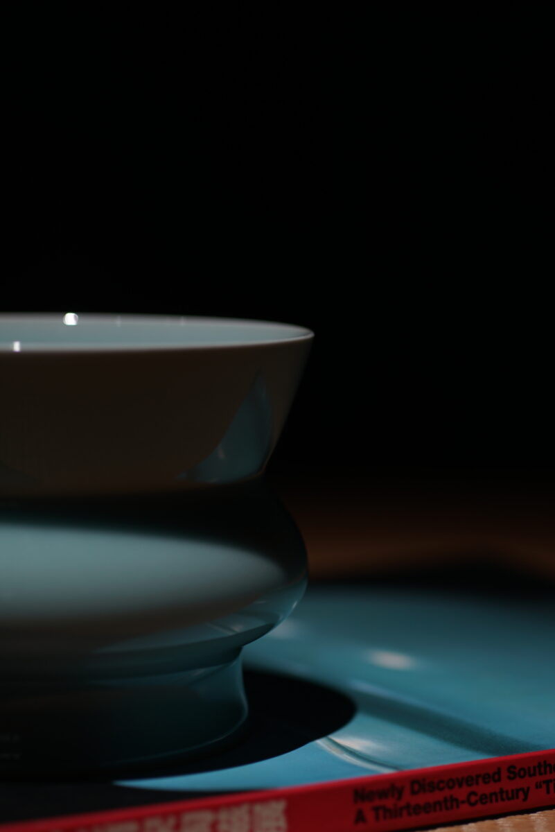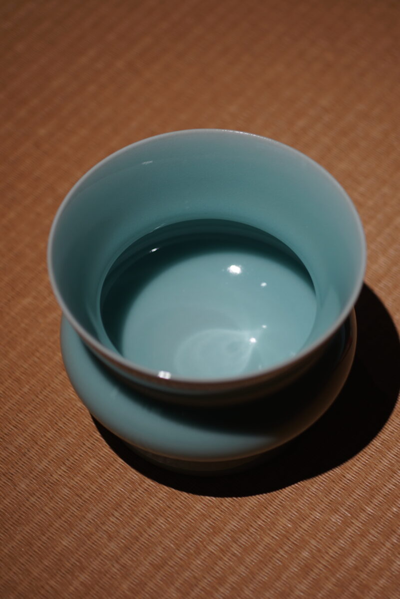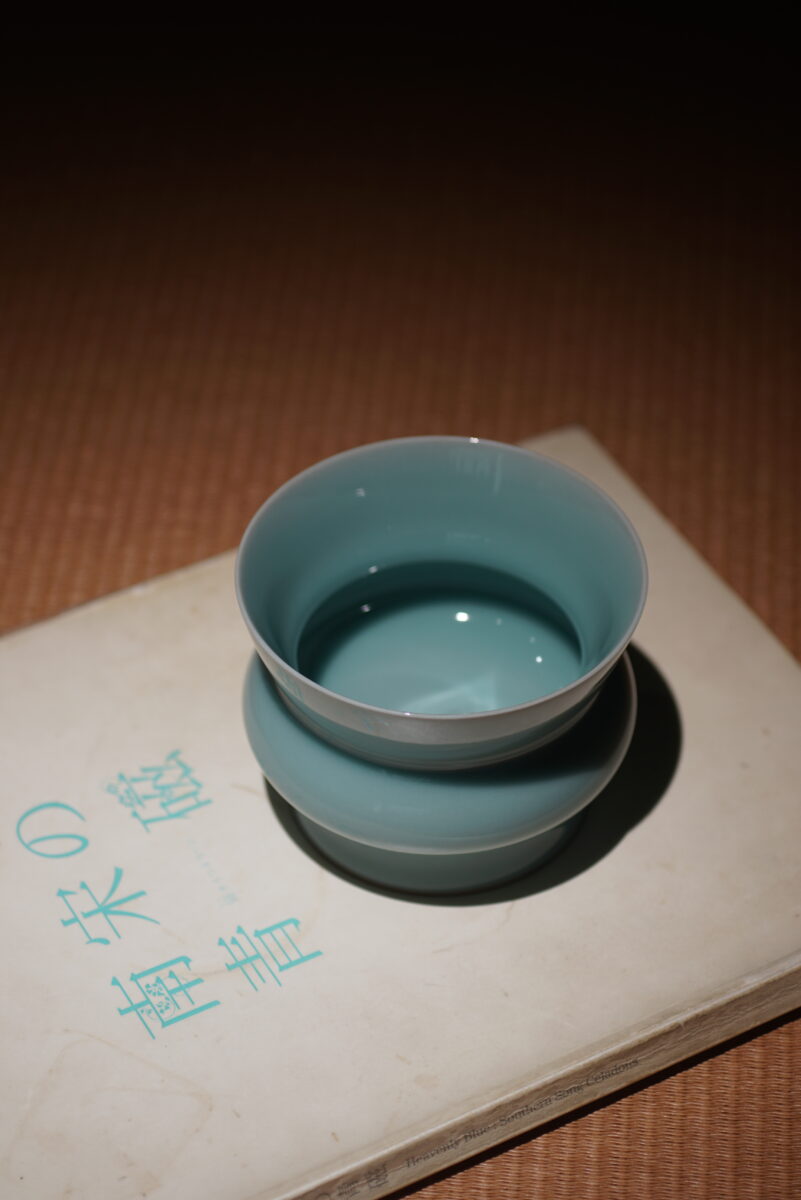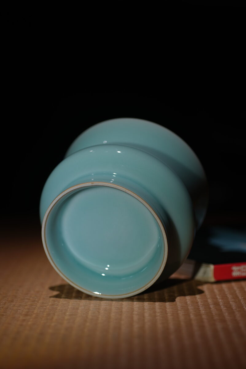 采用龙泉当地优质的朱砂泥和原矿釉料, 纯手工制作, 工艺精良。其灵感来源于南宋龙泉窑高级实用器皿。