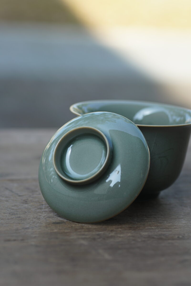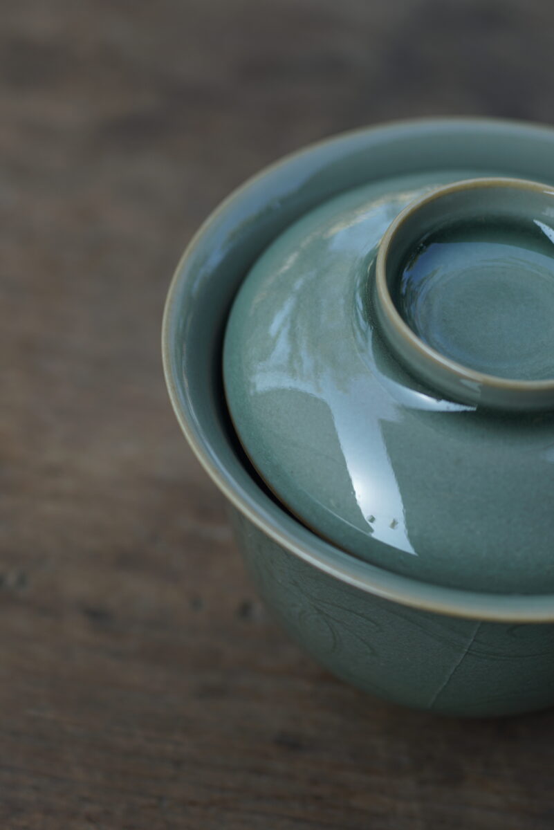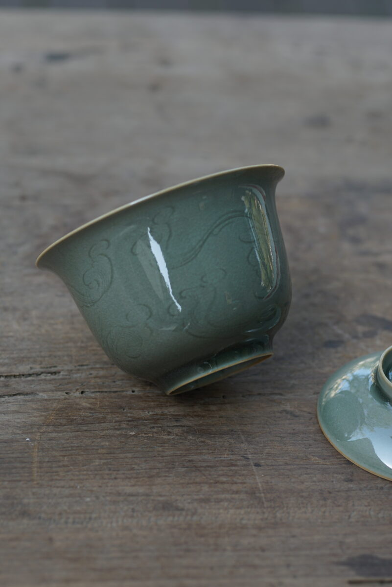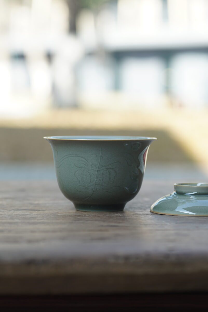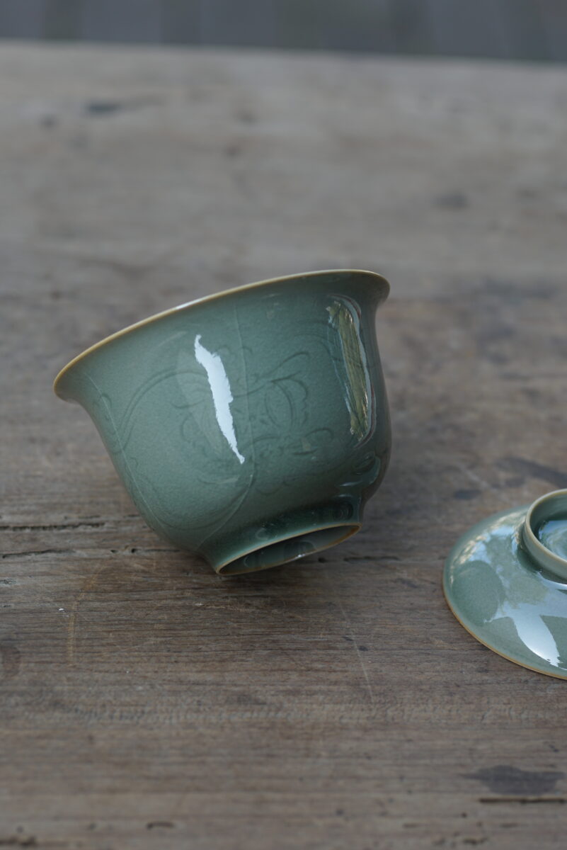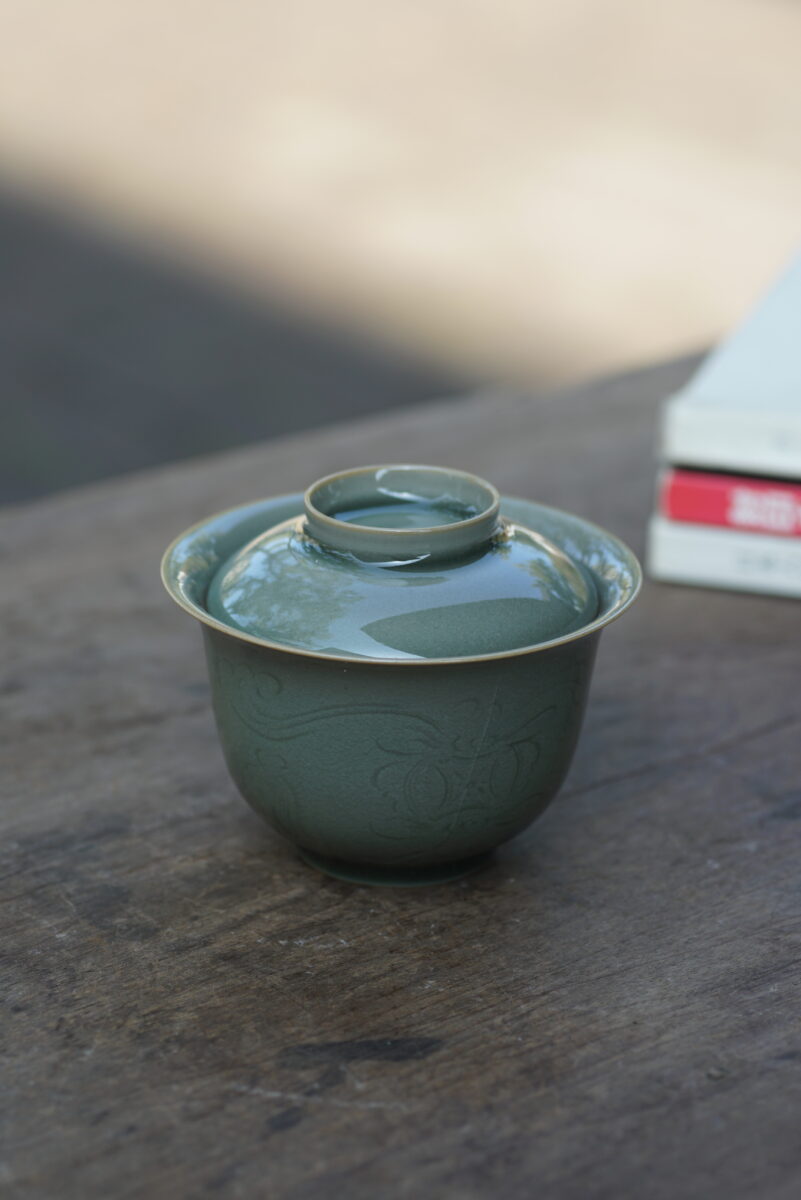 柴烧 刻花盖碗