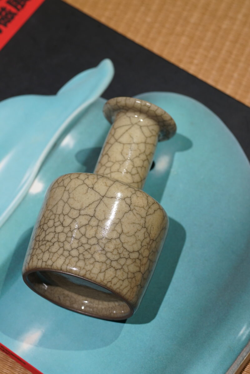 采用龙泉当地优质的哥窑泥和天然原矿釉料,高温烧制而成 。纯手工制作, 工艺精良。其灵感来源于传世哥窑高级立件。