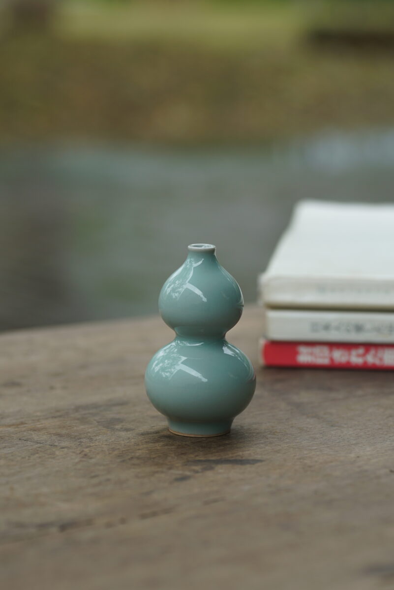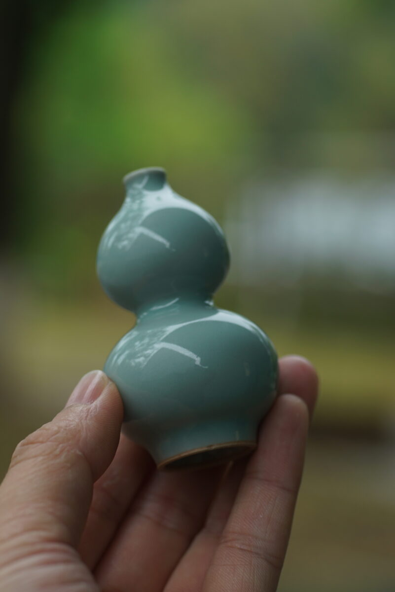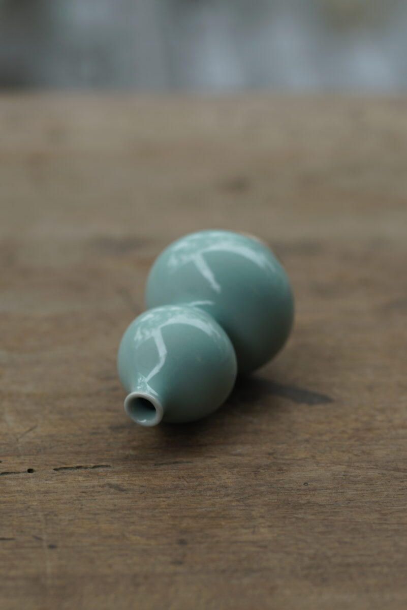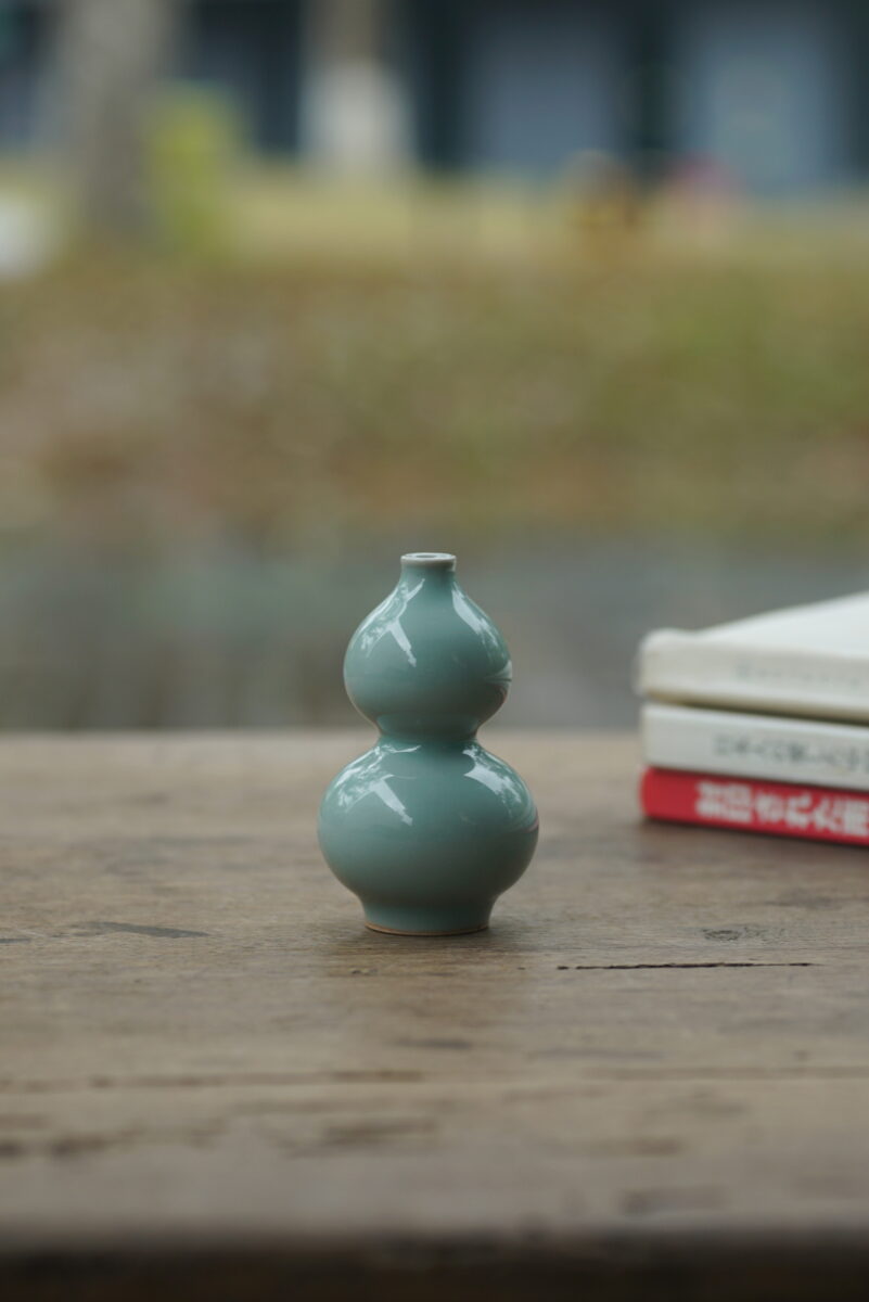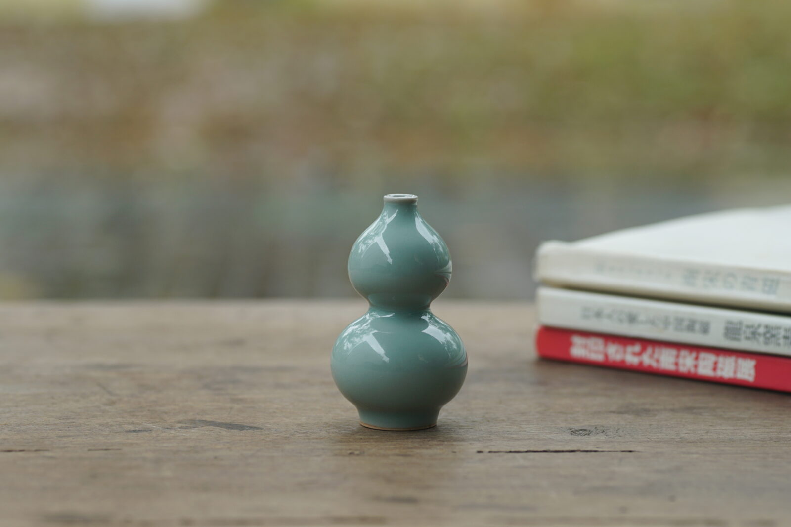 采用龙泉当地优质的朱砂泥和原矿釉料,龙窑柴烧而成。纯手工制作,工艺精良。器型灵感来源于宋元时期龙泉窑经典器,古朴自然,经典小花器。