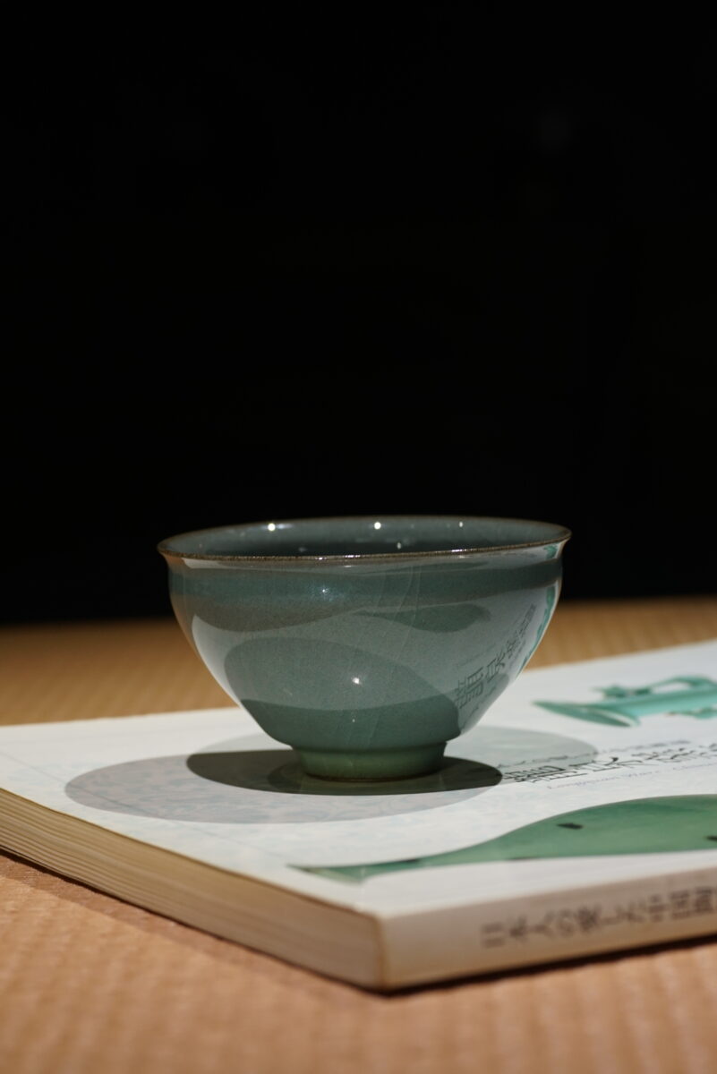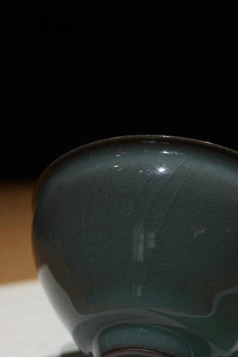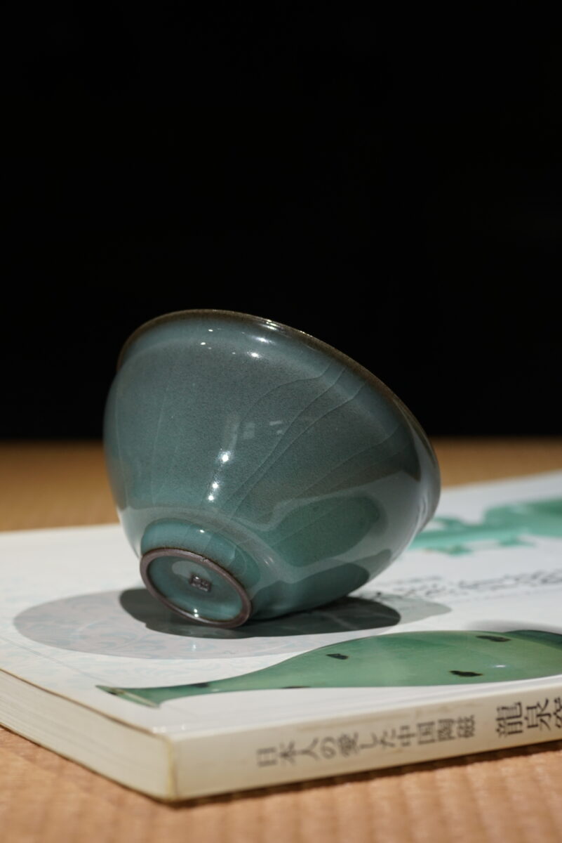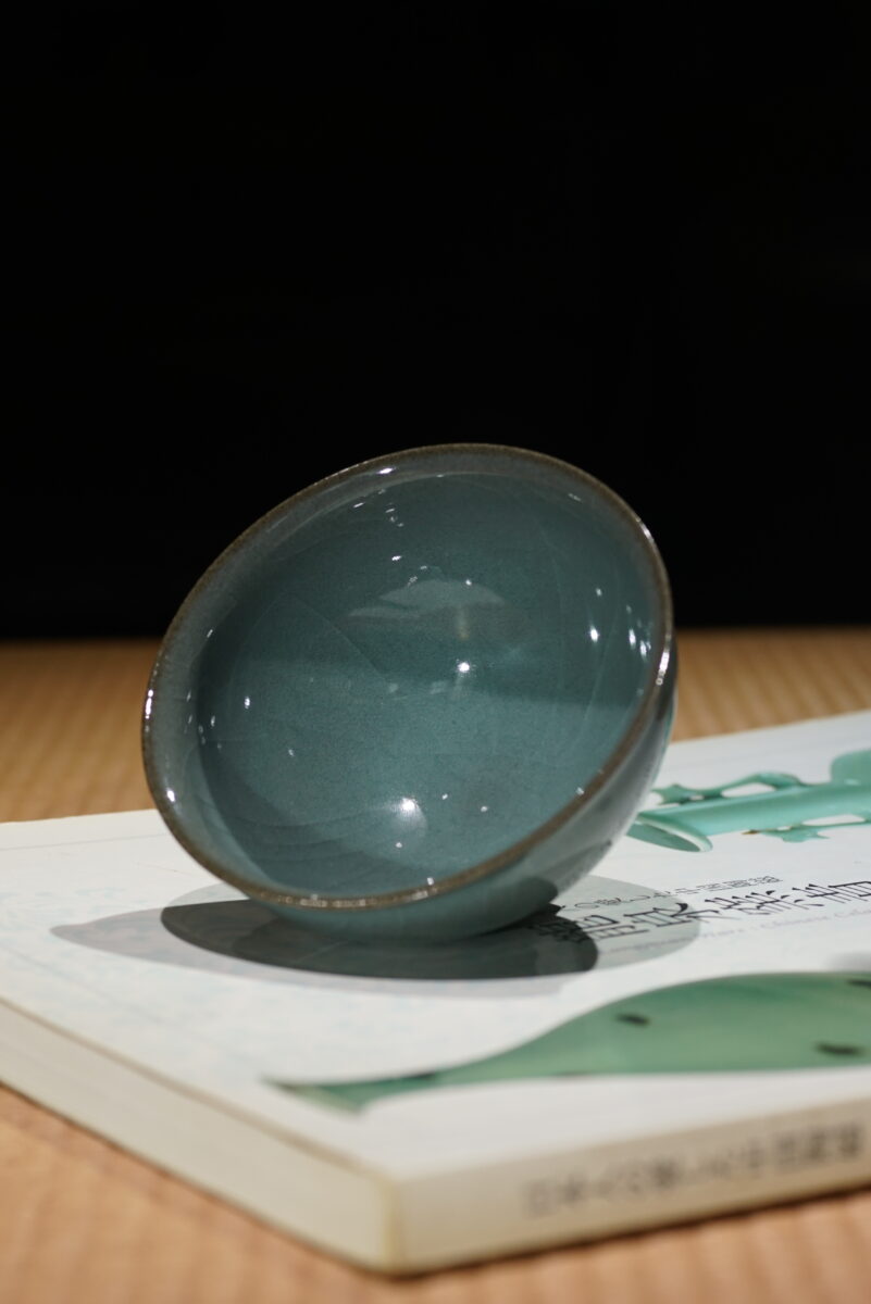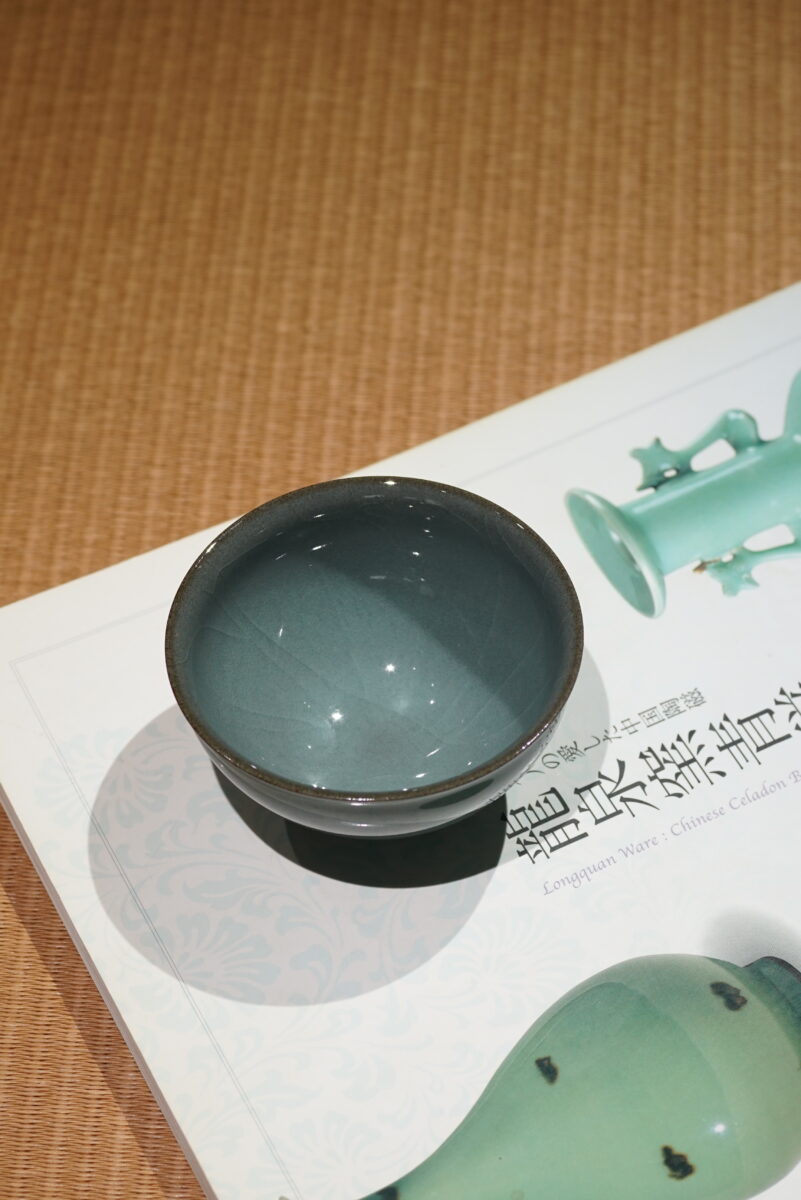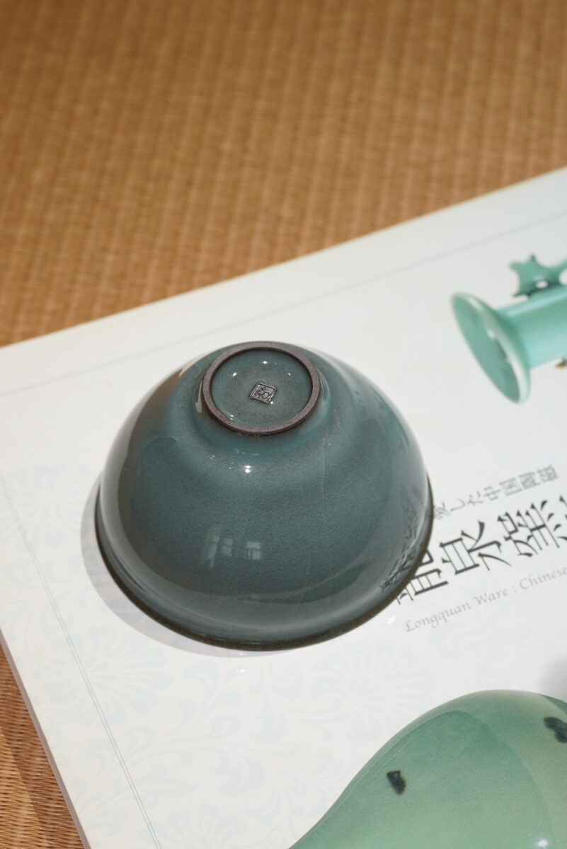 高5.3cm 口径8.8cm这件复刻器采用龙泉当地优质的铁胎泥和天然原矿釉料,高温烧制而成 。纯手工制作, 工艺精良,经典茶器。器型灵感来源于南宋时期龙泉窑经典实用器。