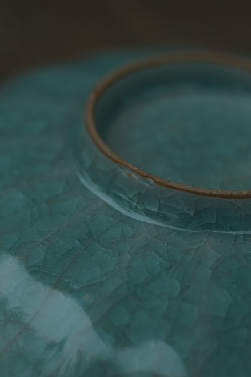这件复刻器采用龙泉当地的朱砂泥料和天然原矿釉料,工艺精良,其灵感源自南宋高级实用器。