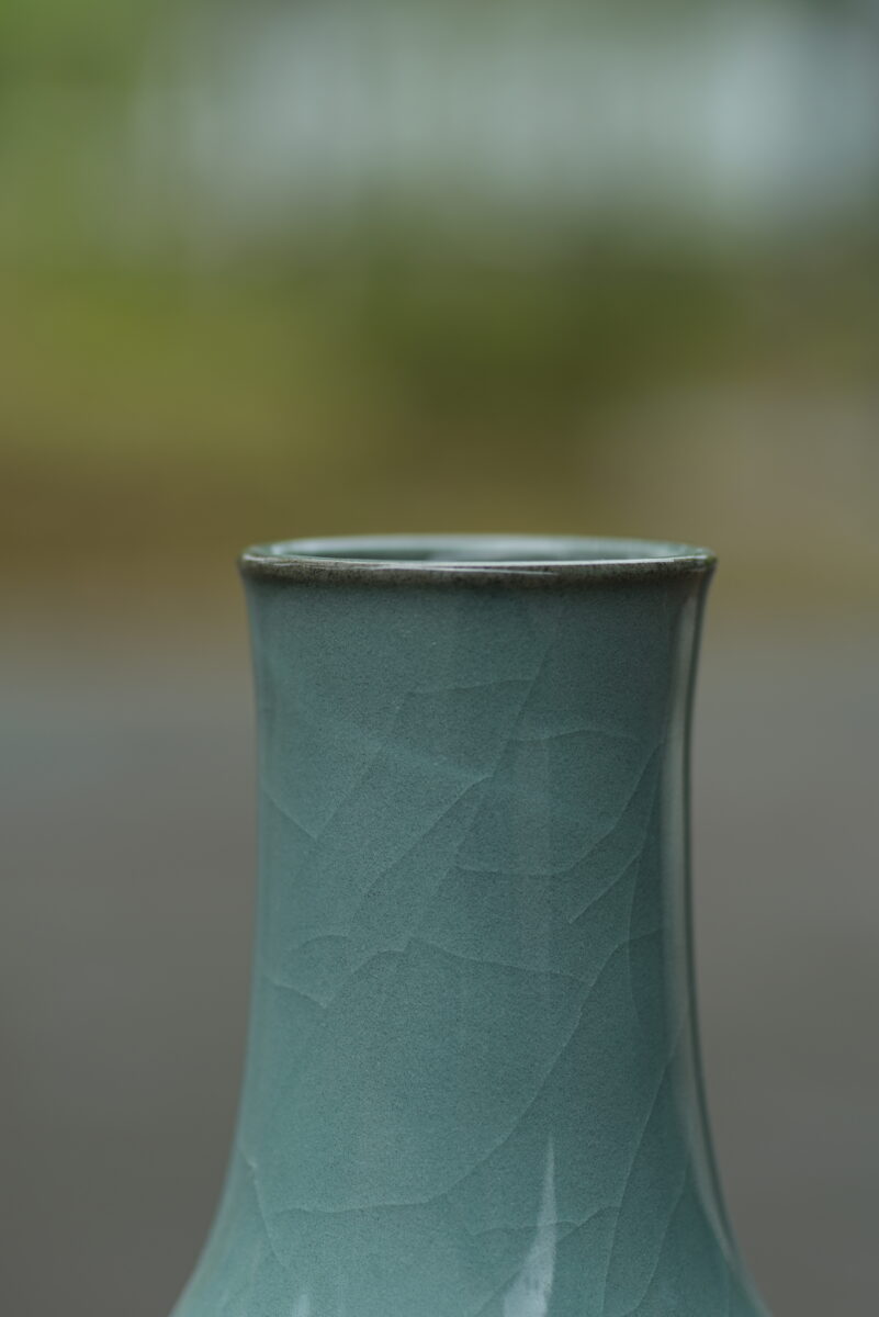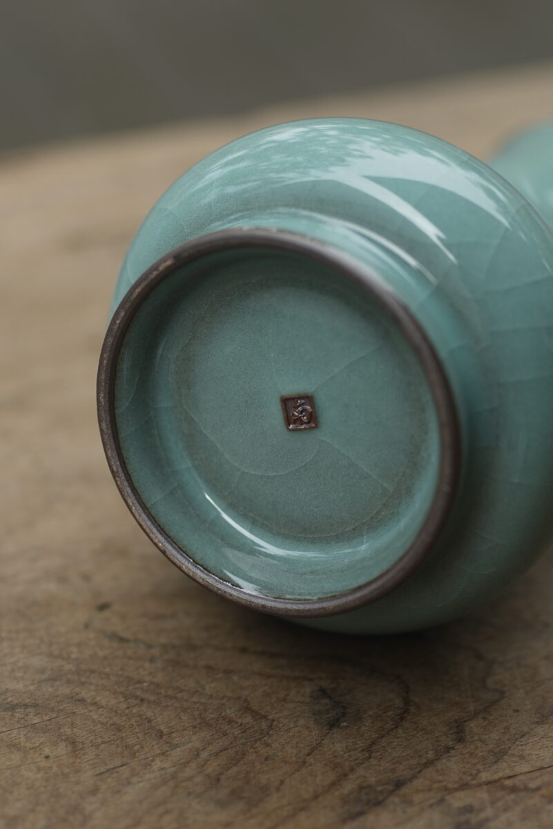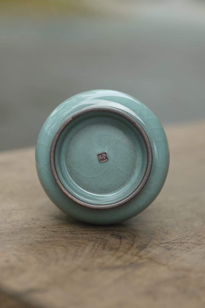 采用龙泉当地优质的铁胎泥和天然原矿釉料,纯手工制作,工艺精良。其灵感来源于南宋龙泉窑高级立件。