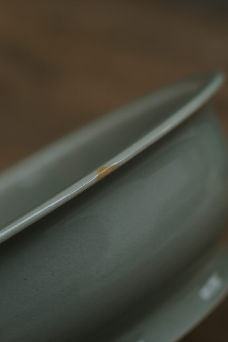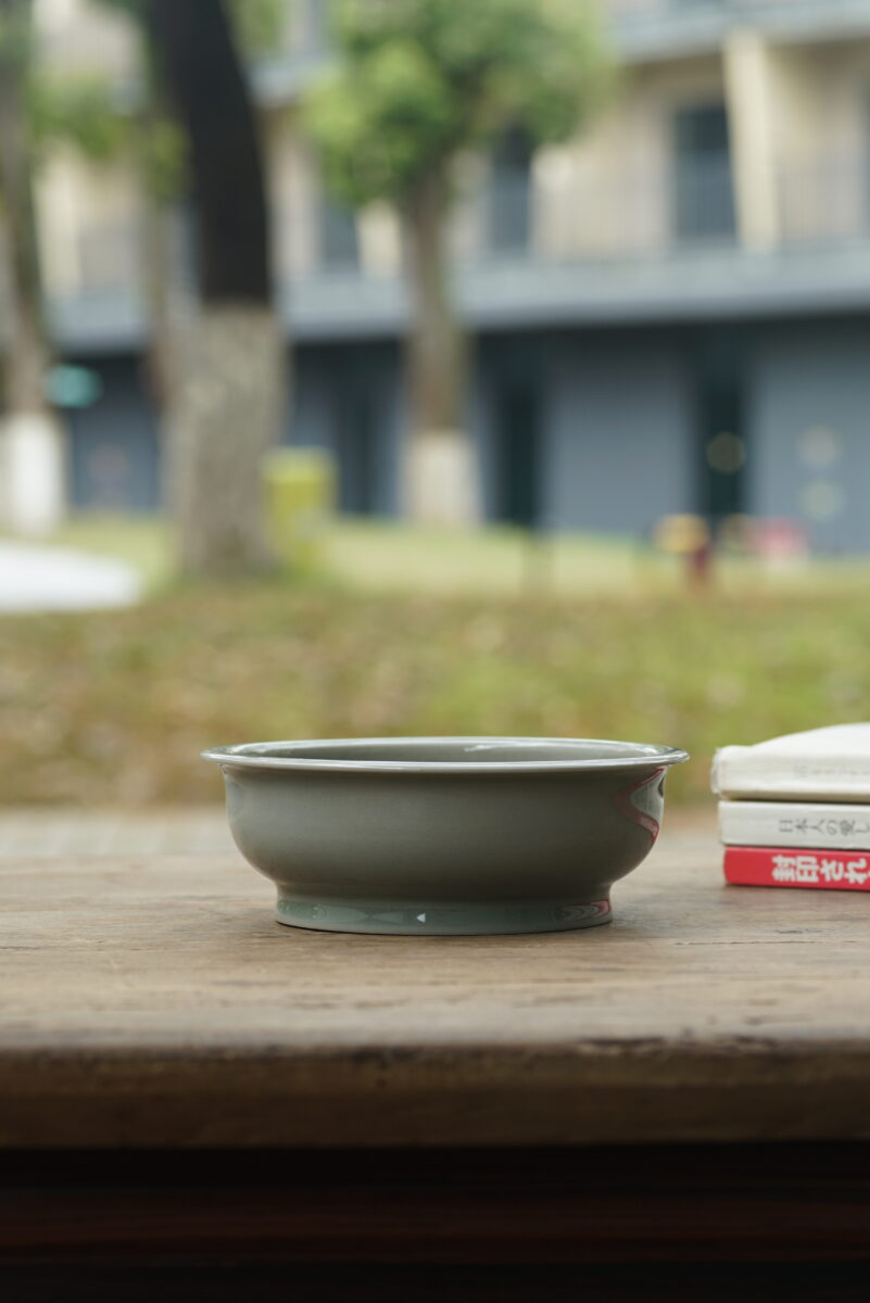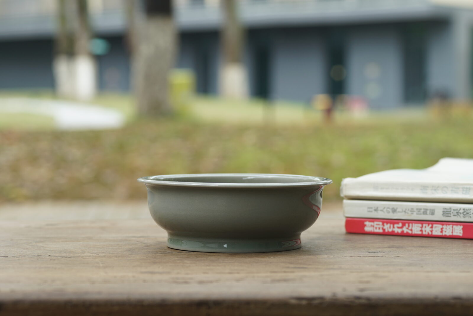 这件复刻器采用龙泉当地的铁胎泥料和天然原矿釉料,龙窑柴烧,纯手工制作,支钉烧,工艺精良,其灵感源自汝窑高级古器。