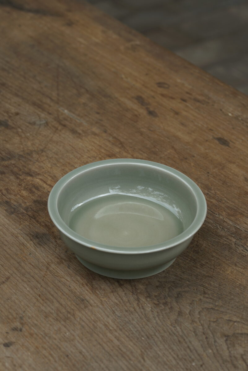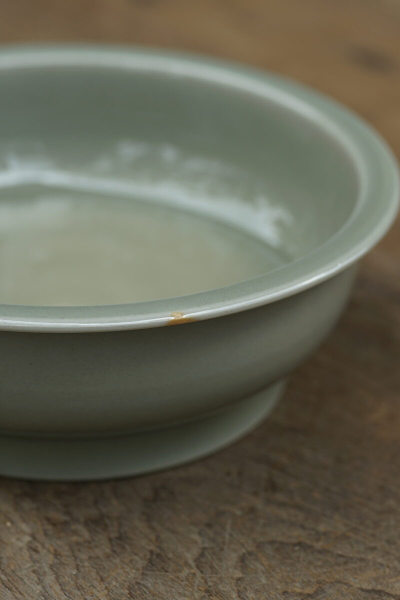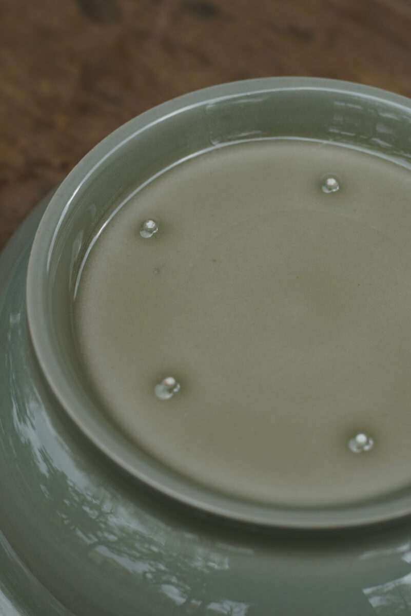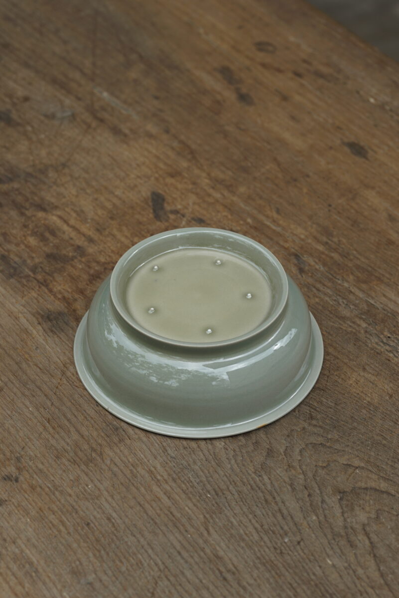 这件复刻器采用龙泉当地的铁胎泥料和天然原矿釉料,龙窑柴烧,纯手工制作,支钉烧,工艺精良,其灵感源自汝窑高级古器。