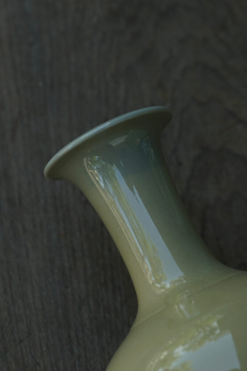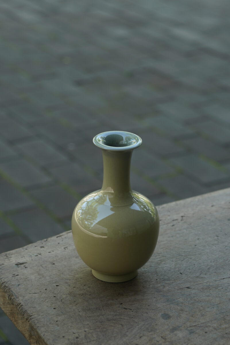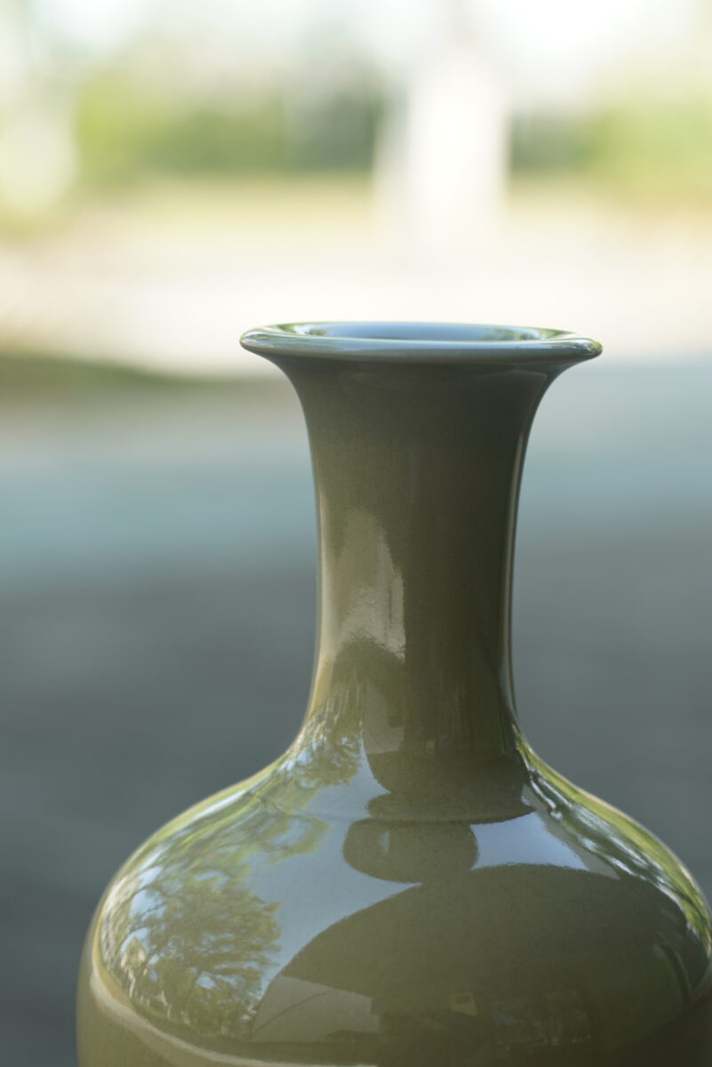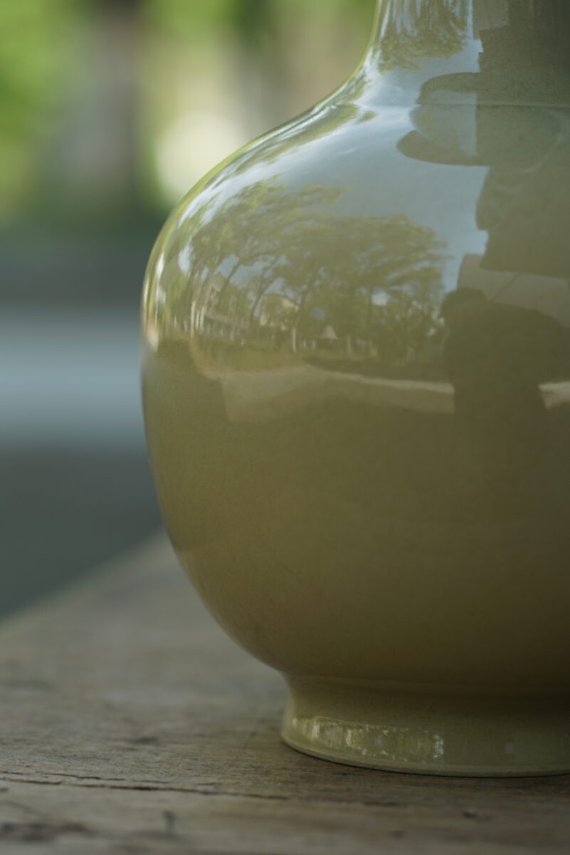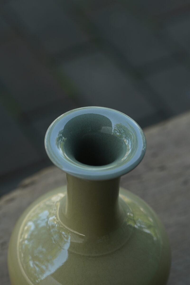 采用龙泉当地优质的朱砂泥和天然原矿釉料,龙窑柴烧。纯手工制作, 工艺精良。其灵感来源于隋唐高级花器。