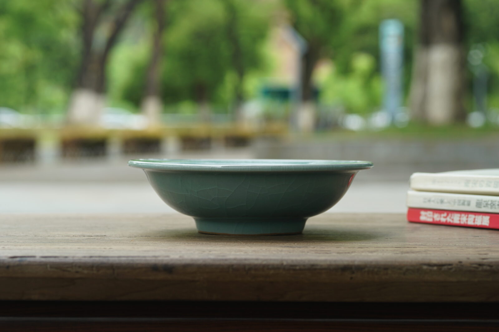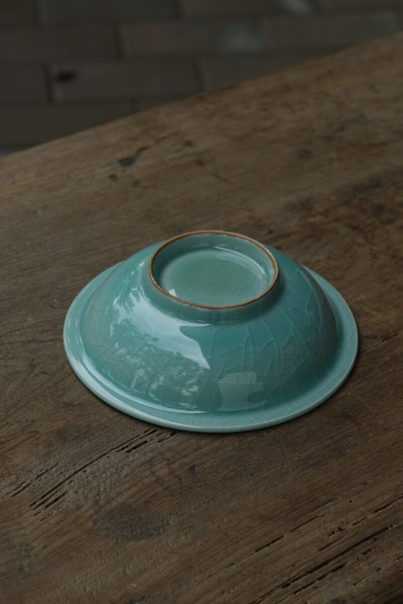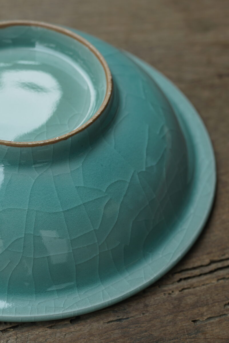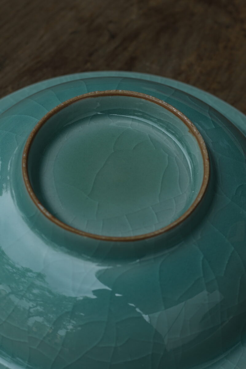 采用龙泉当地优质的朱砂泥和天然原矿釉料,龙窑柴烧。纯手工制作,工艺精良。器型来源于宋元时期龙泉窑经典器。